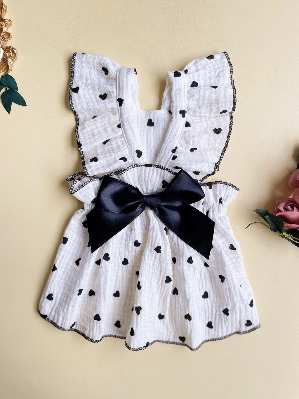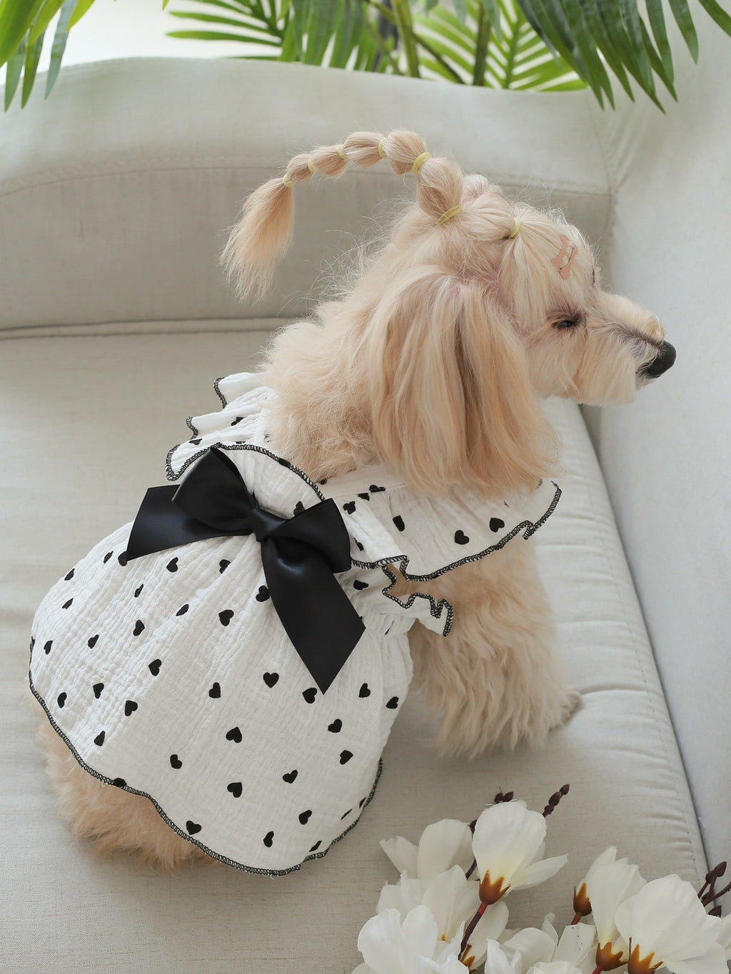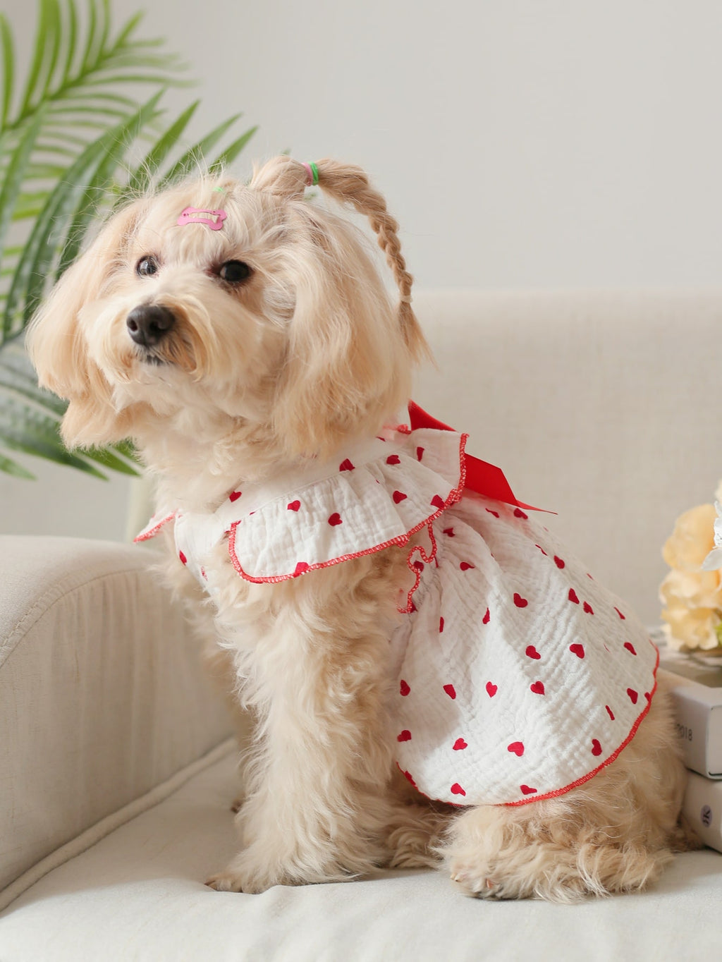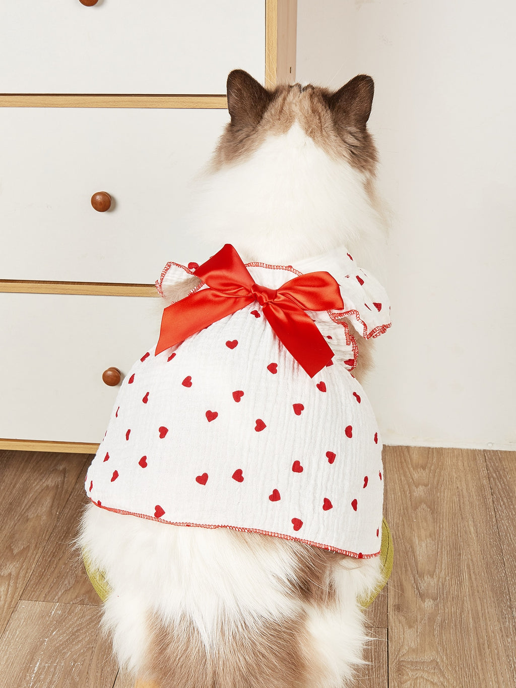 BELLAVOG Valentine's Day 1pc Heart Print Bow Decor Pet Dress For Dog For Summer