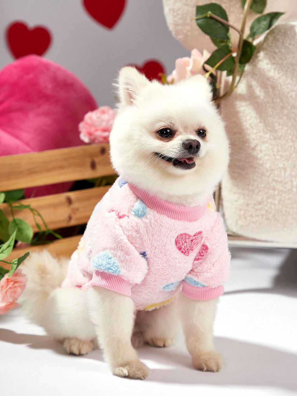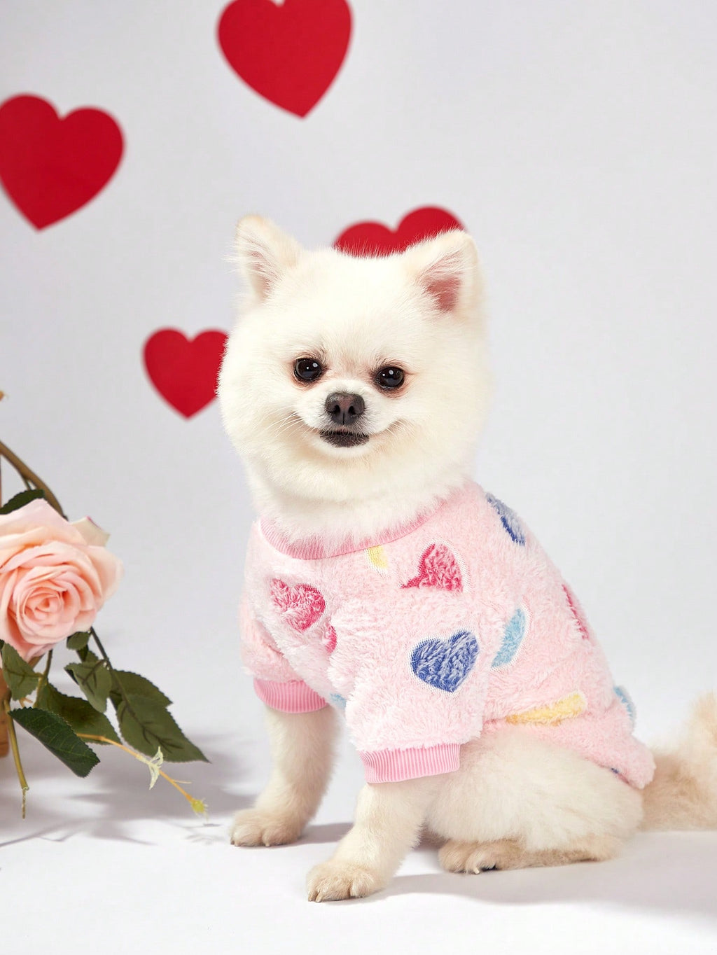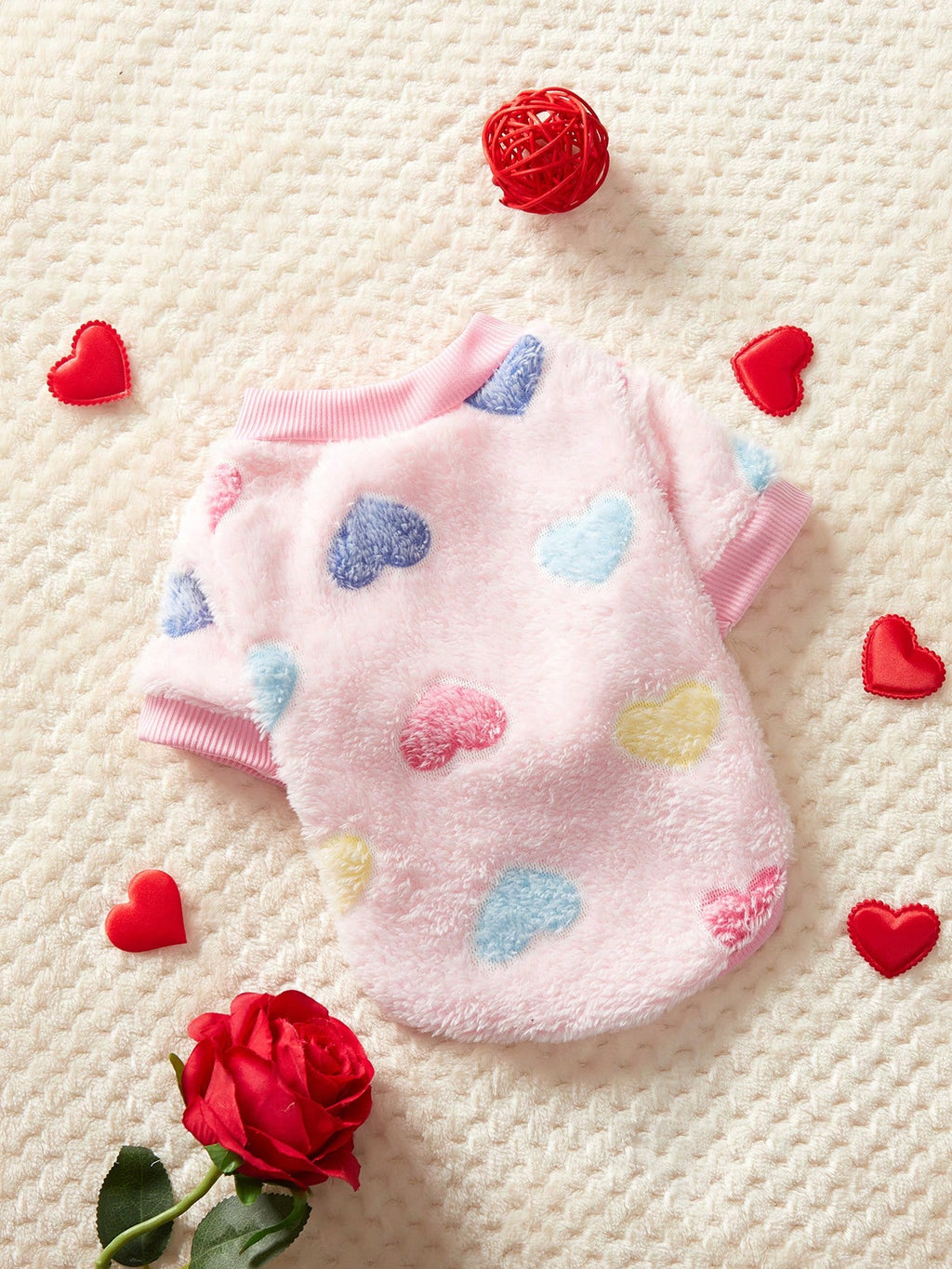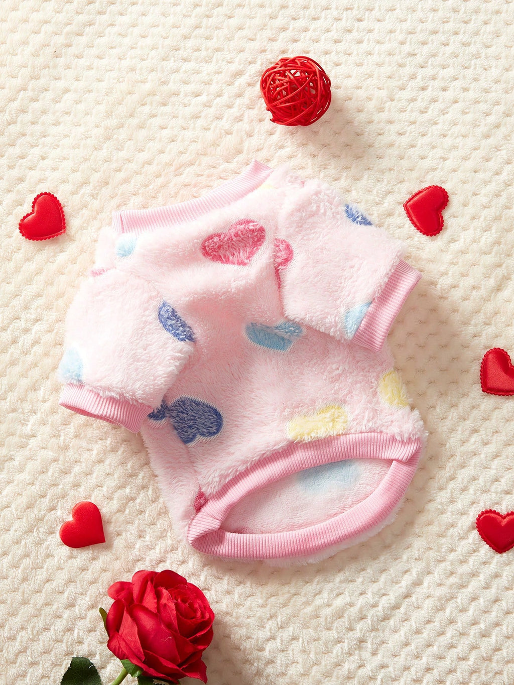BELLAVOG Valentine's Day 1pc Pink Heart Patterned Fleece Pet Sweatshirt Without Hood, Warm