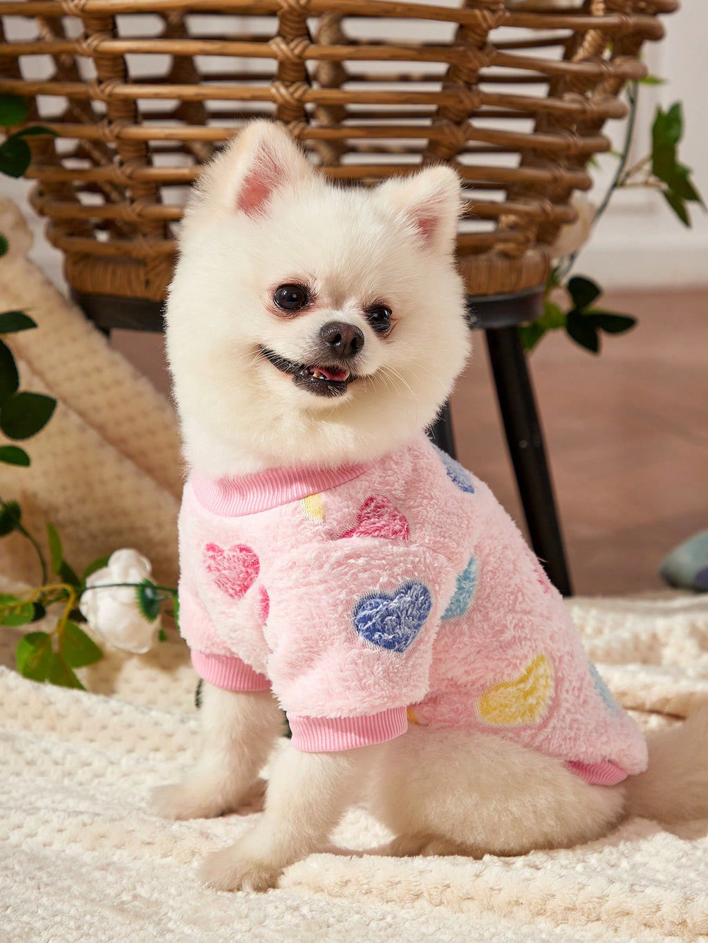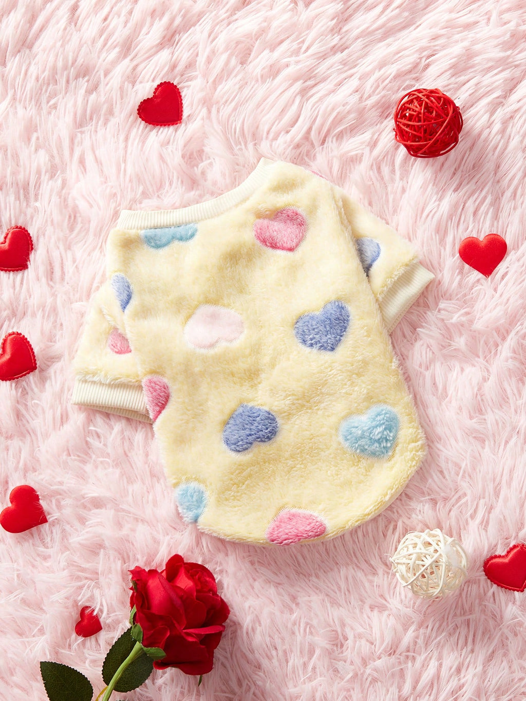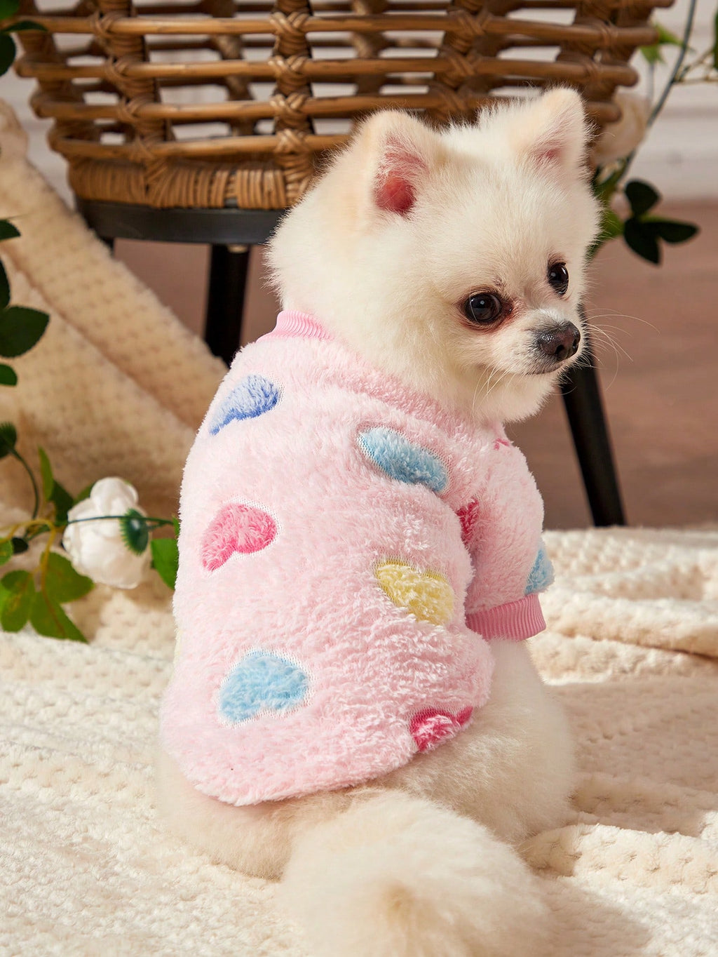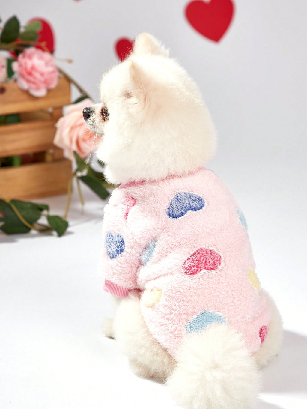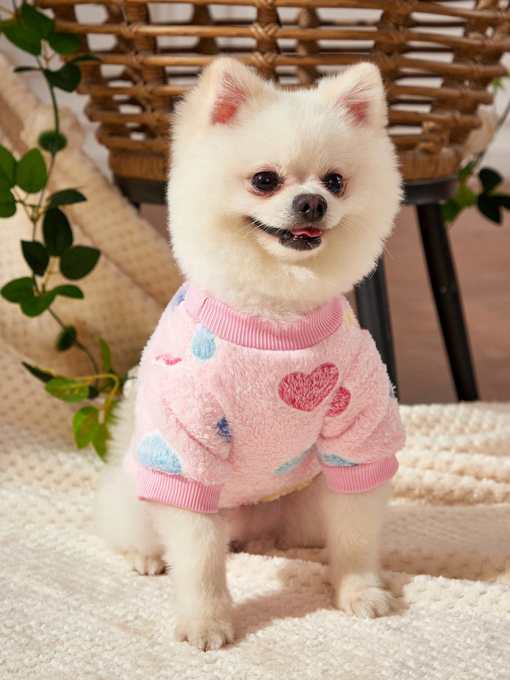 BELLAVOG Valentine's Day 1pc Pink Heart Patterned Fleece Pet Sweatshirt Without Hood, Warm