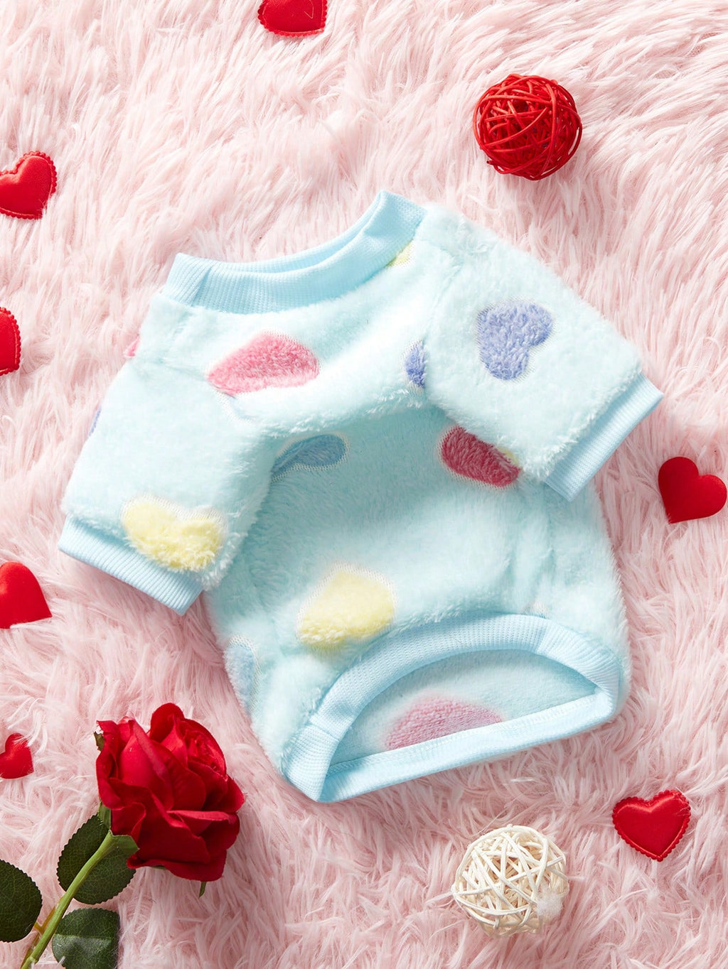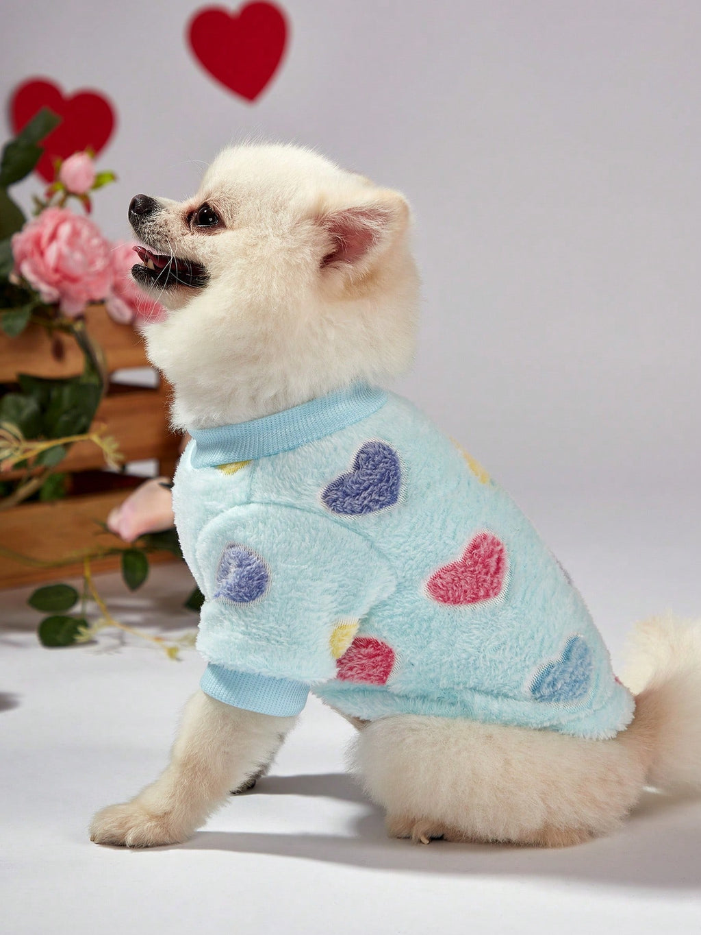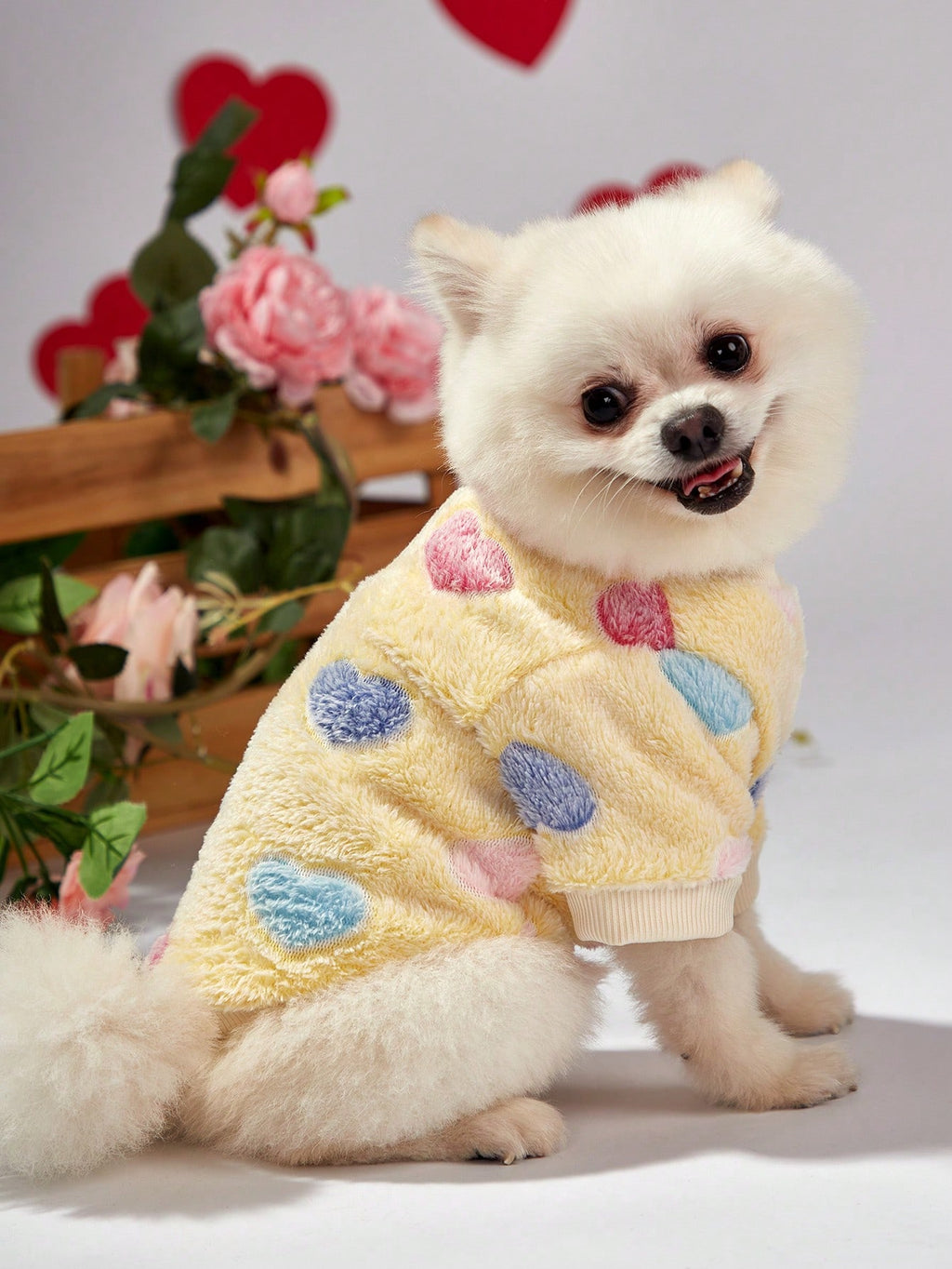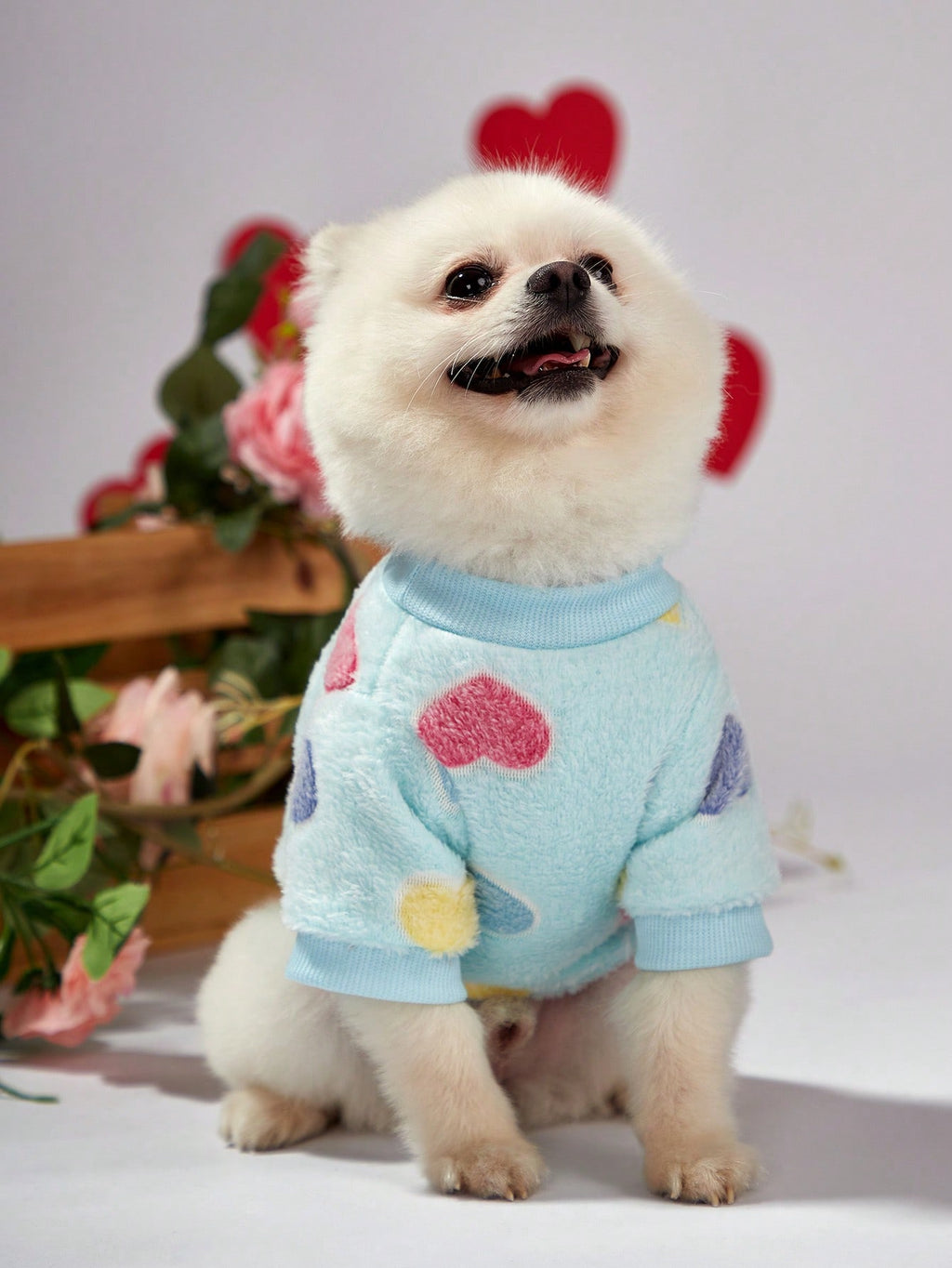 BELLAVOG Valentine's Day 1pc Pink Heart Patterned Fleece Pet Sweatshirt Without Hood, Warm
