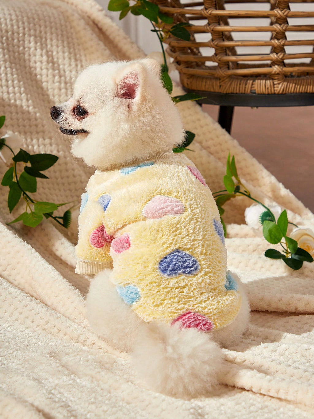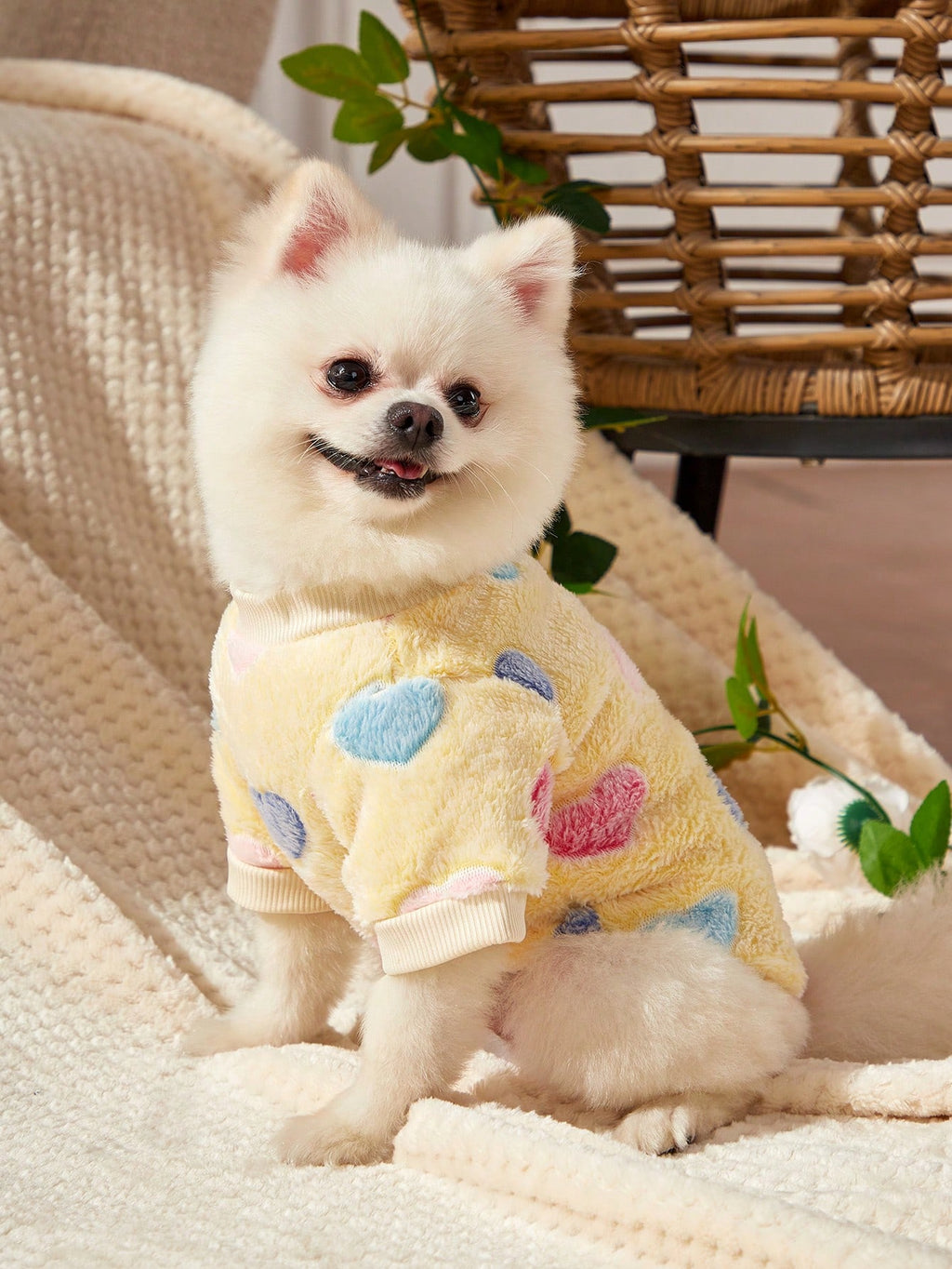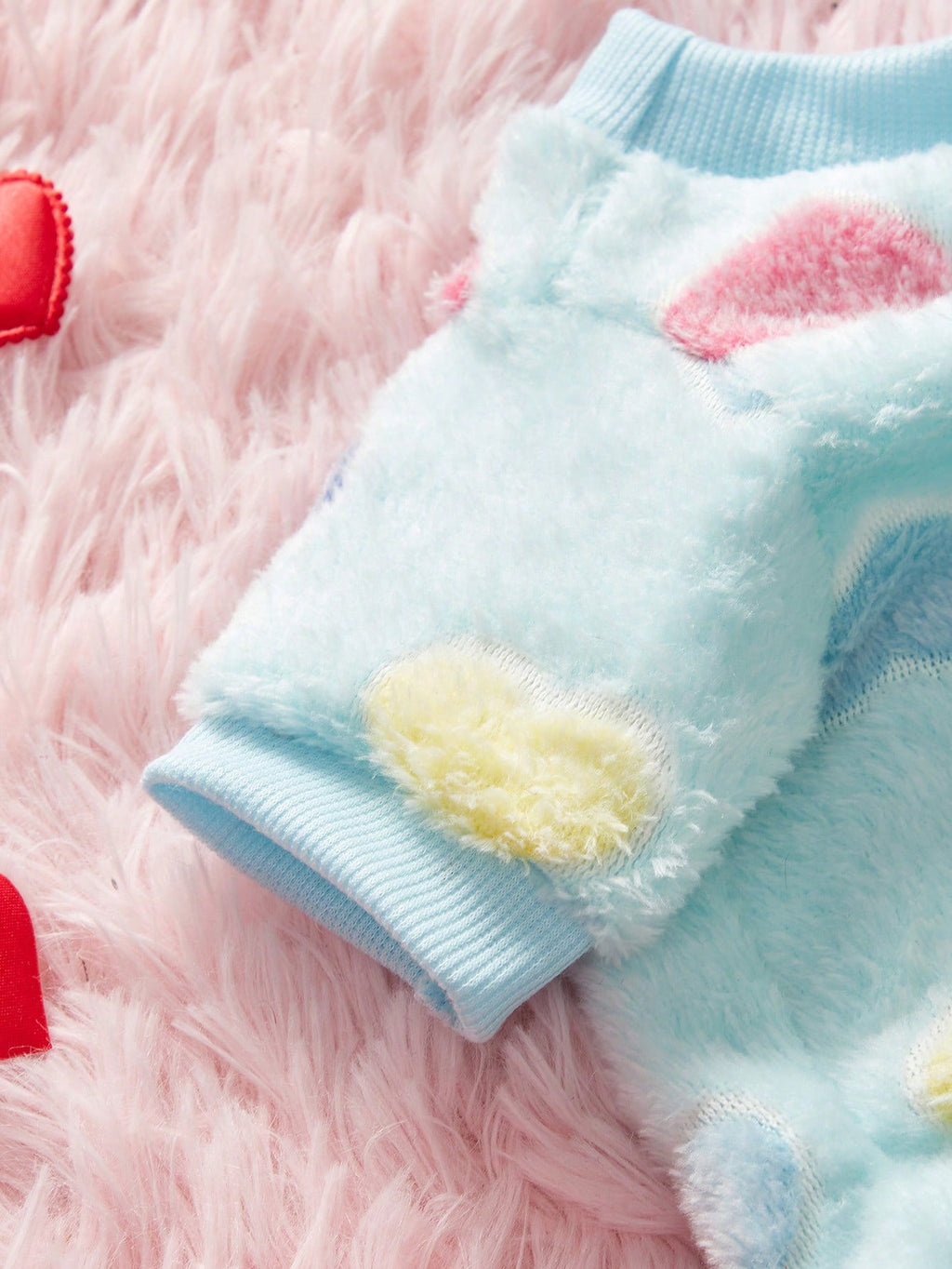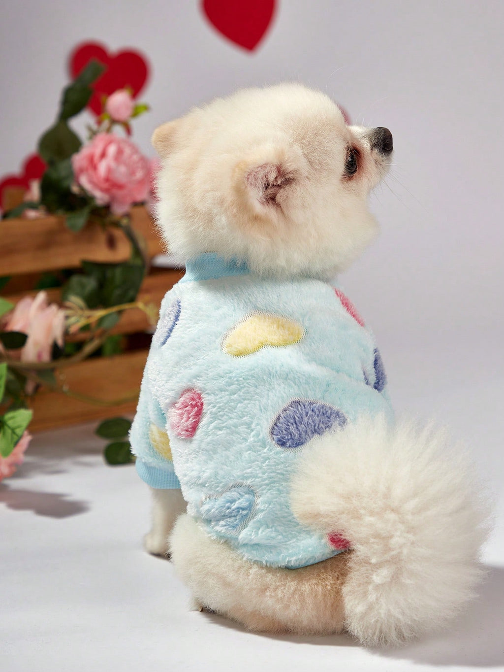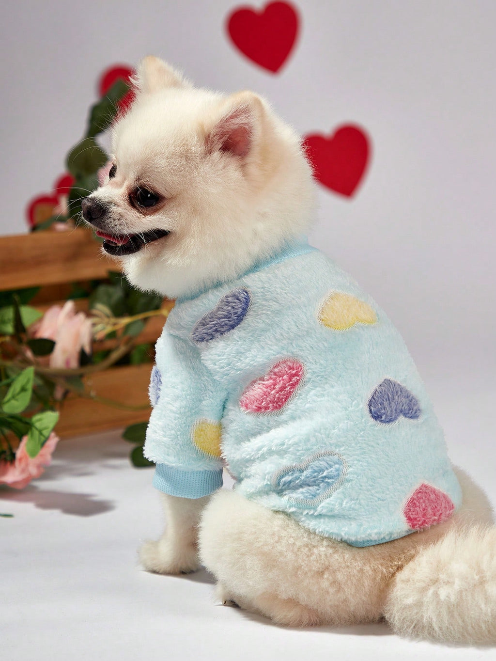 BELLAVOG Valentine's Day 1pc Pink Heart Patterned Fleece Pet Sweatshirt Without Hood, Warm