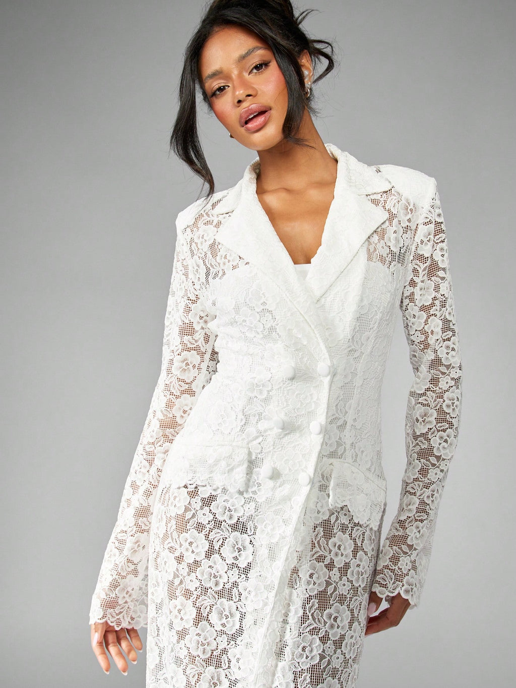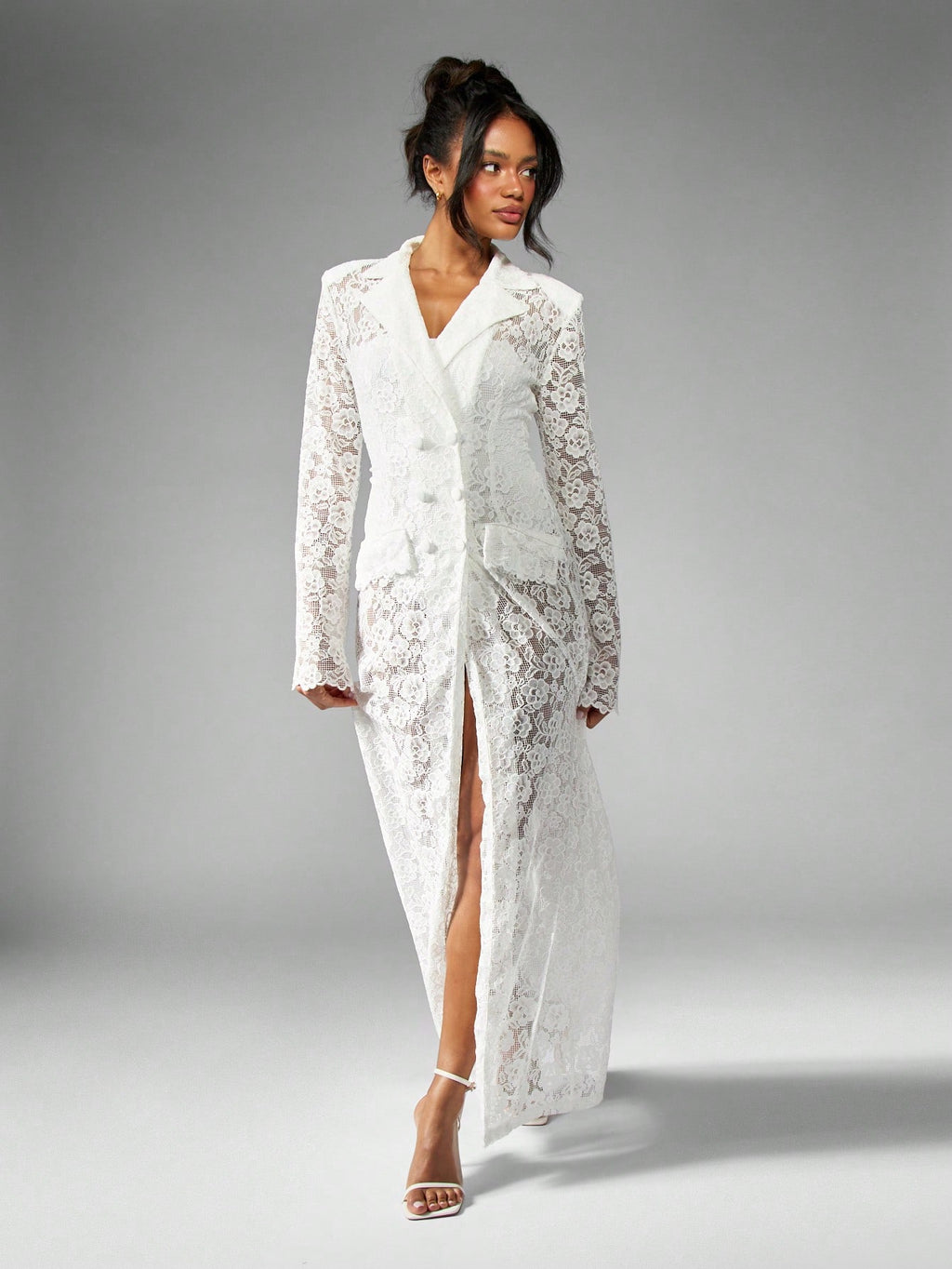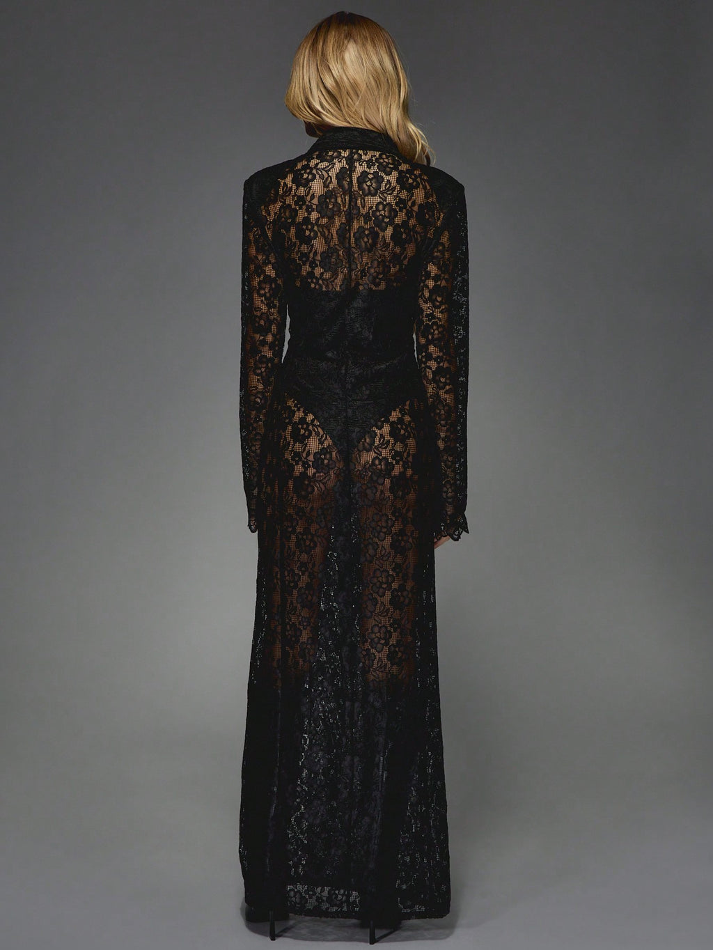 BELLAVOG Western Sheer Lace Double Breasted Stiff Shoulder Max Dress