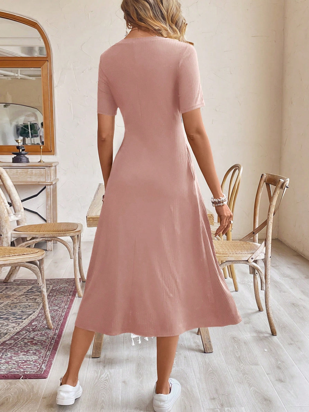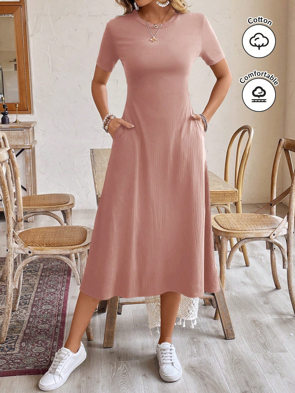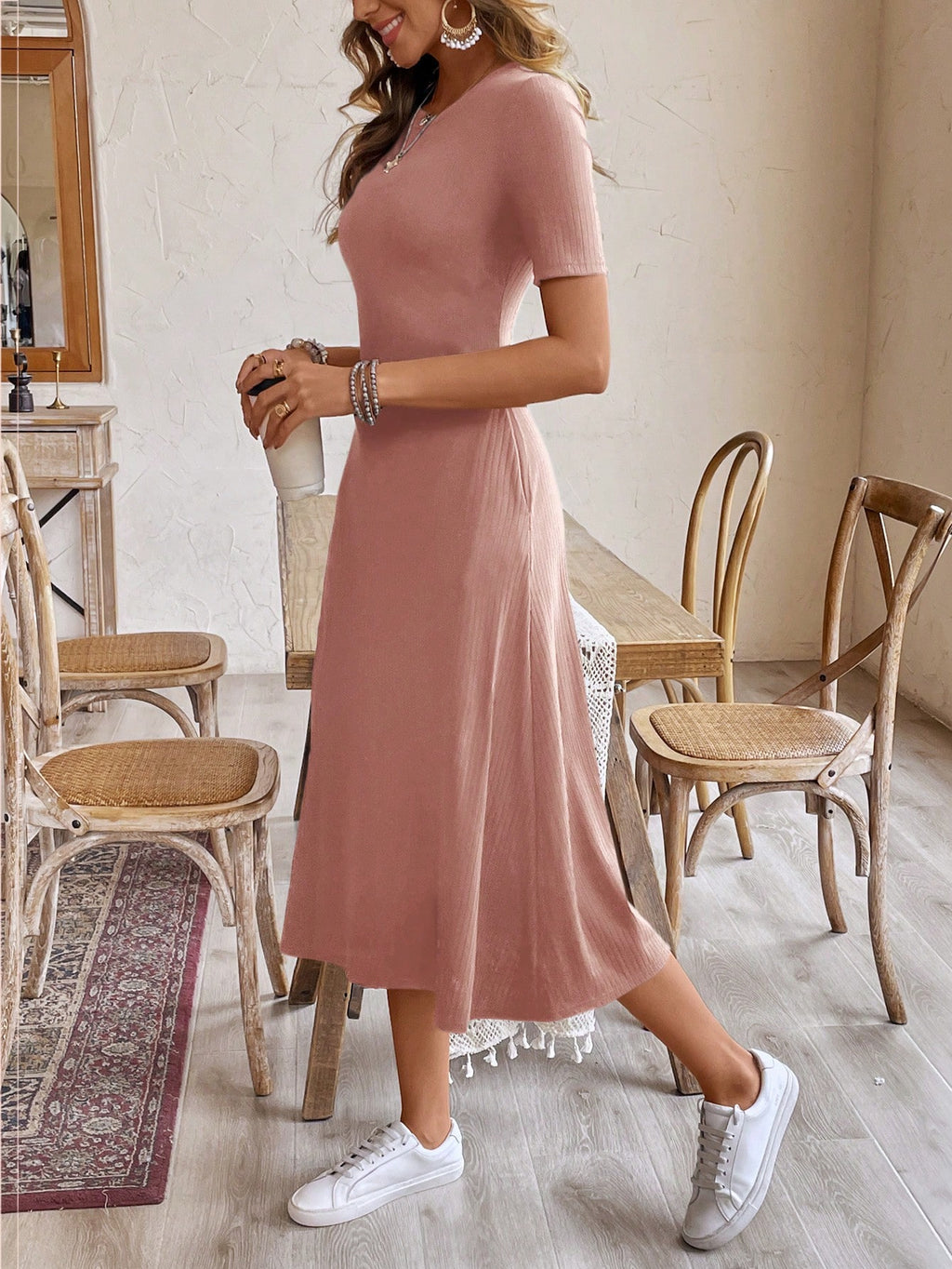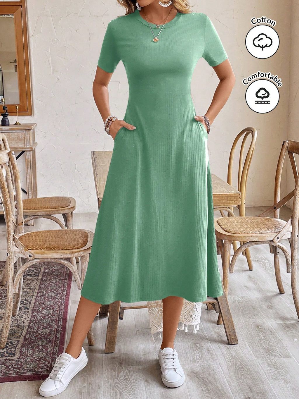 BELLAVOG Women Earthy Clothes Work Women Dresses Mother Day Dress Casual Short-Sleeve Round Neck Summer Black Long Dress,Commute,Office,Old Money,Simple,Minimalist,