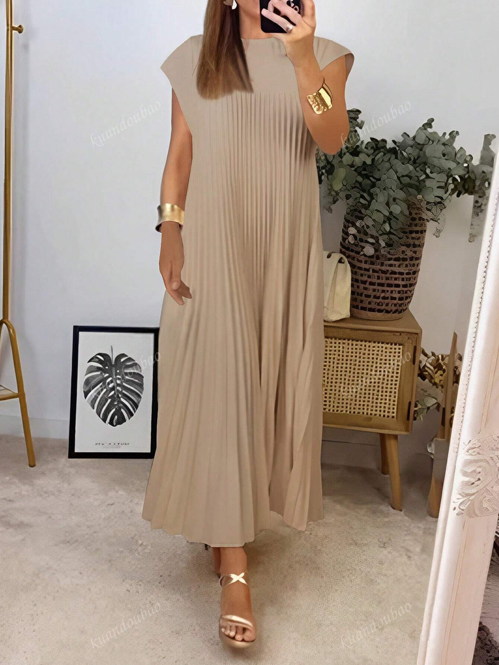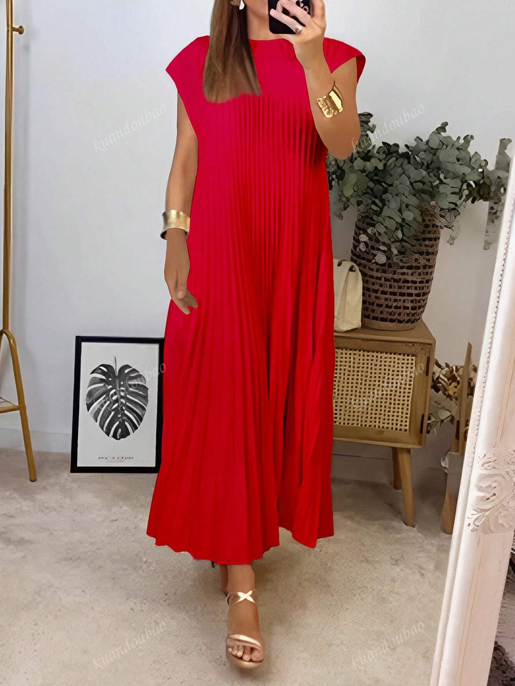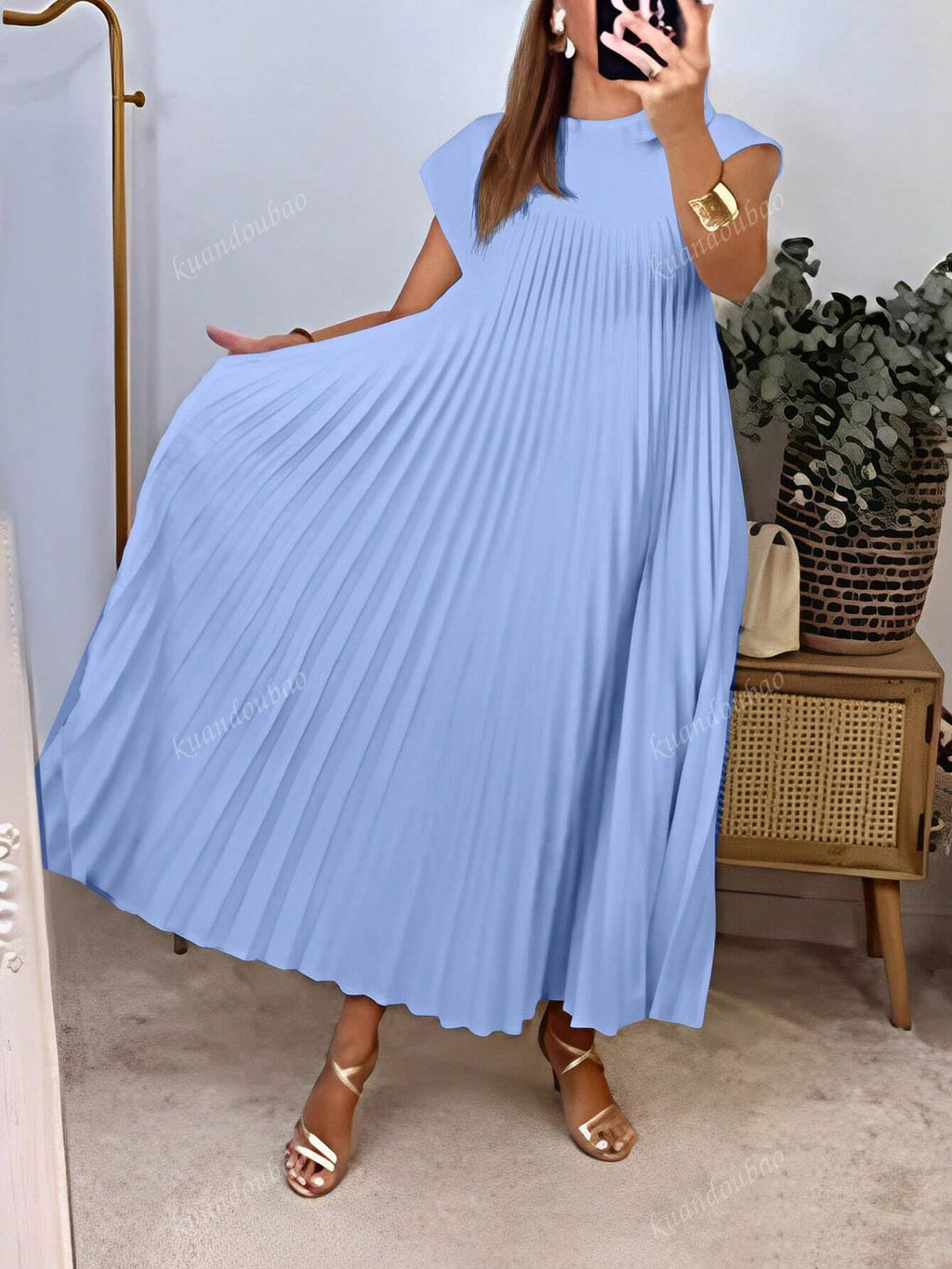 BELLAVOG Women Elegant Simple Solid Color Pleated Dress