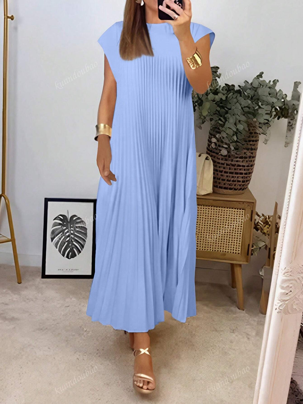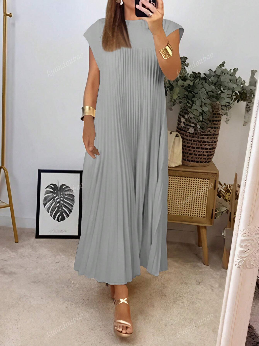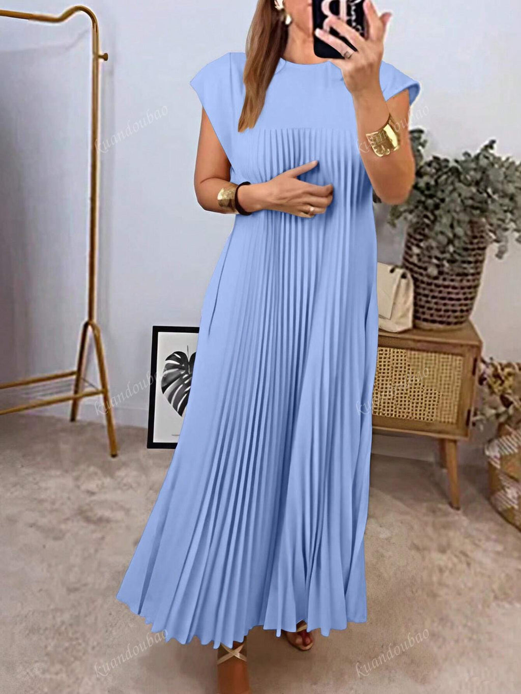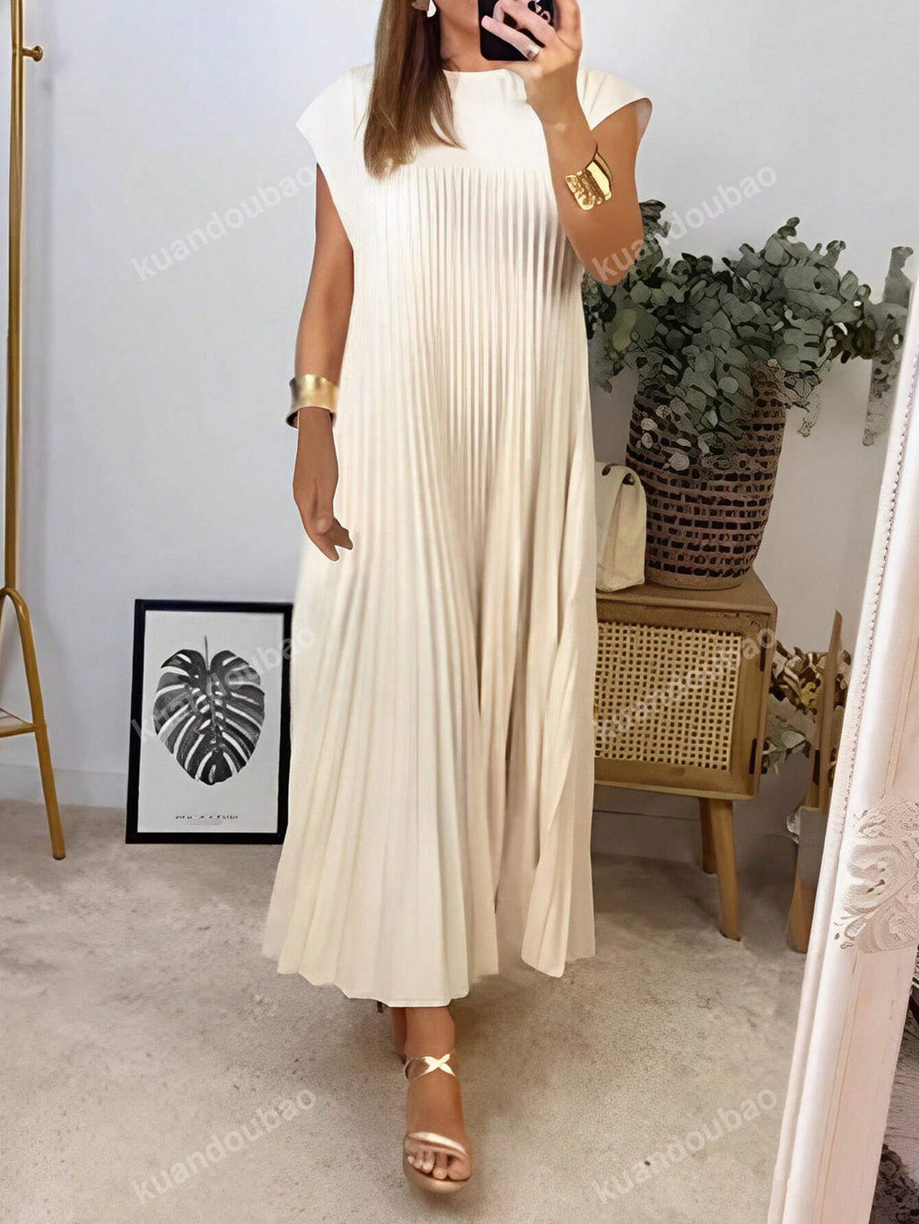 BELLAVOG Women Elegant Simple Solid Color Pleated Dress