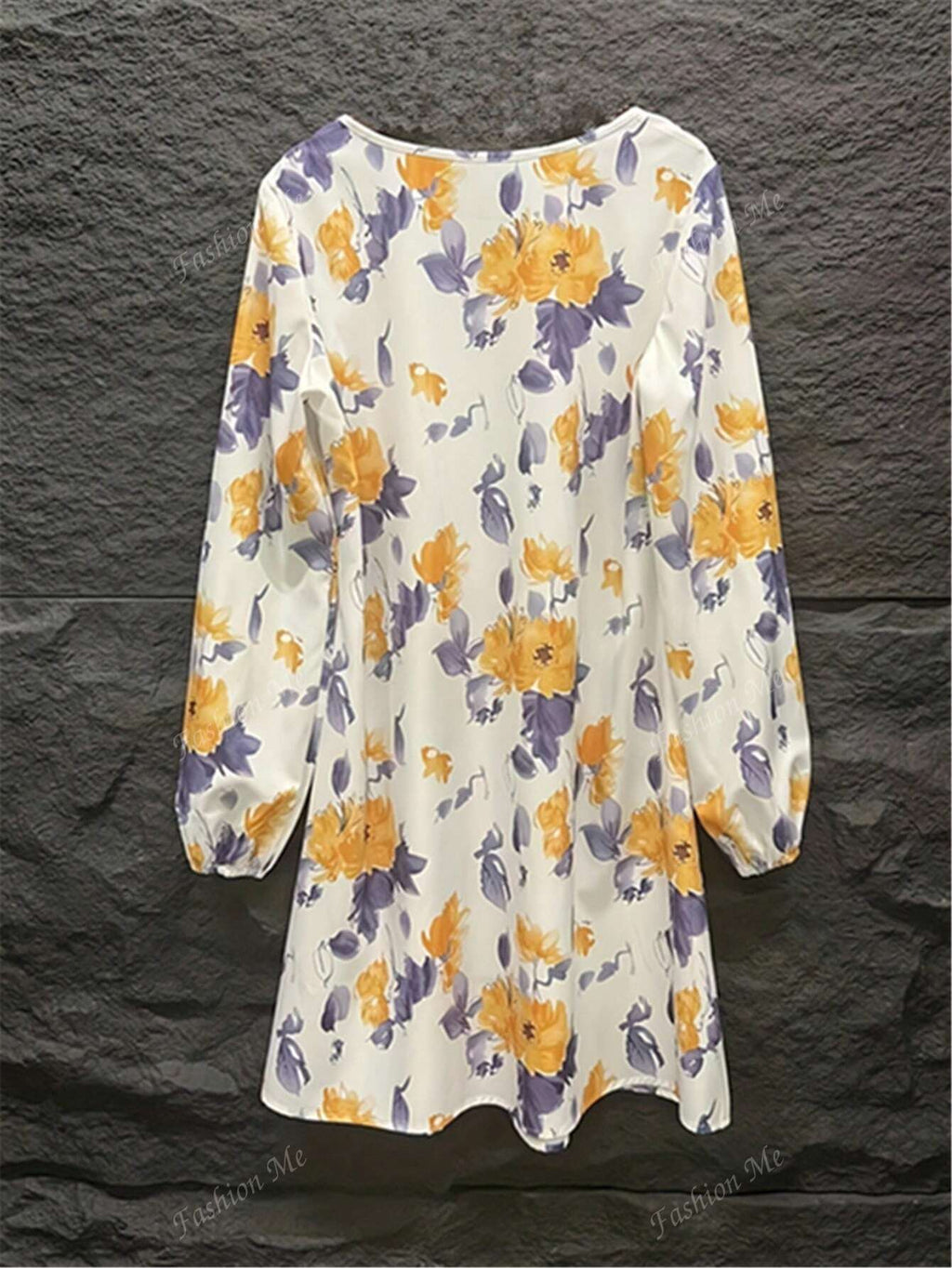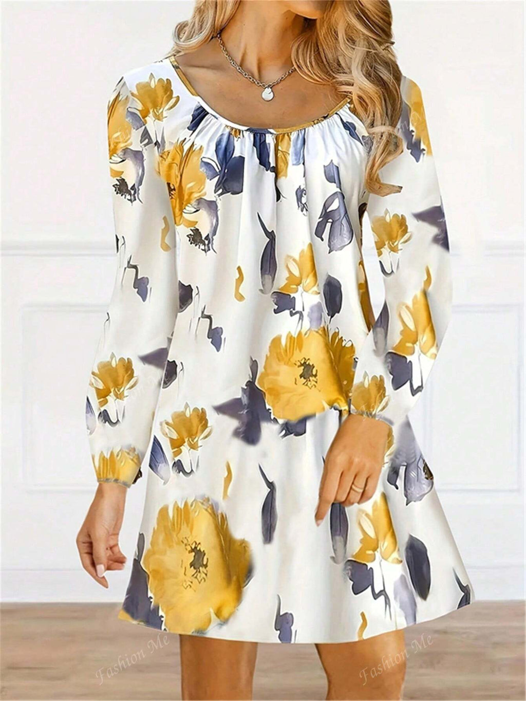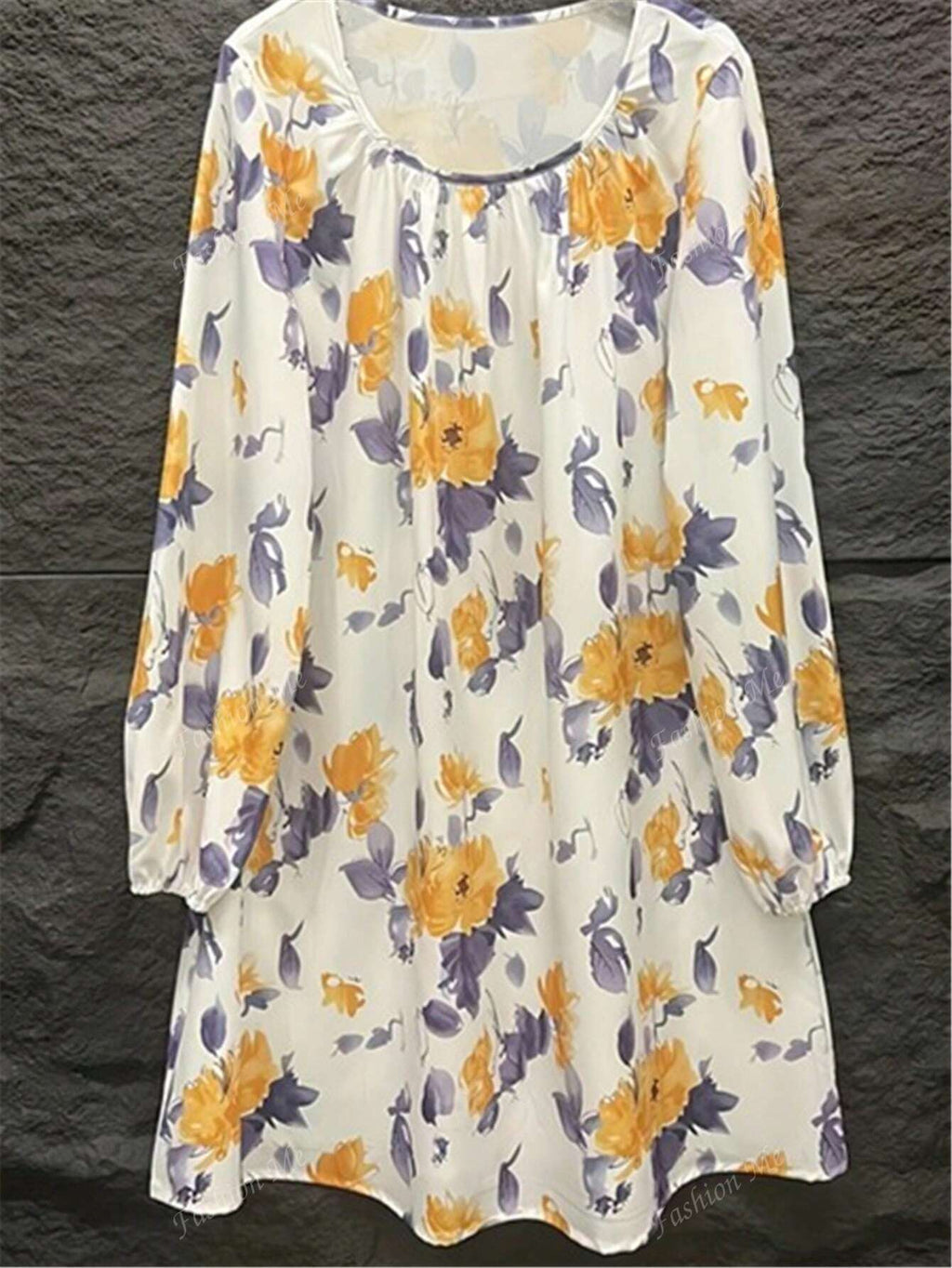 BELLAVOG Women Floral Print Round Neck Long Sleeve Dress
