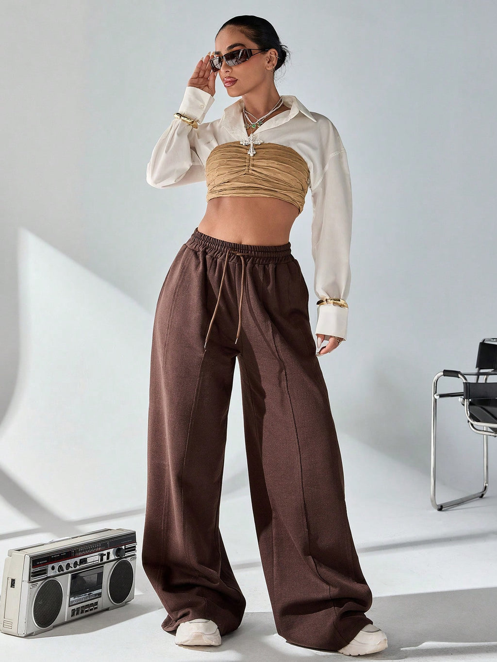 BELLAVOG Women Loose Fit Front Stitch Detailed Sweatpant Pant