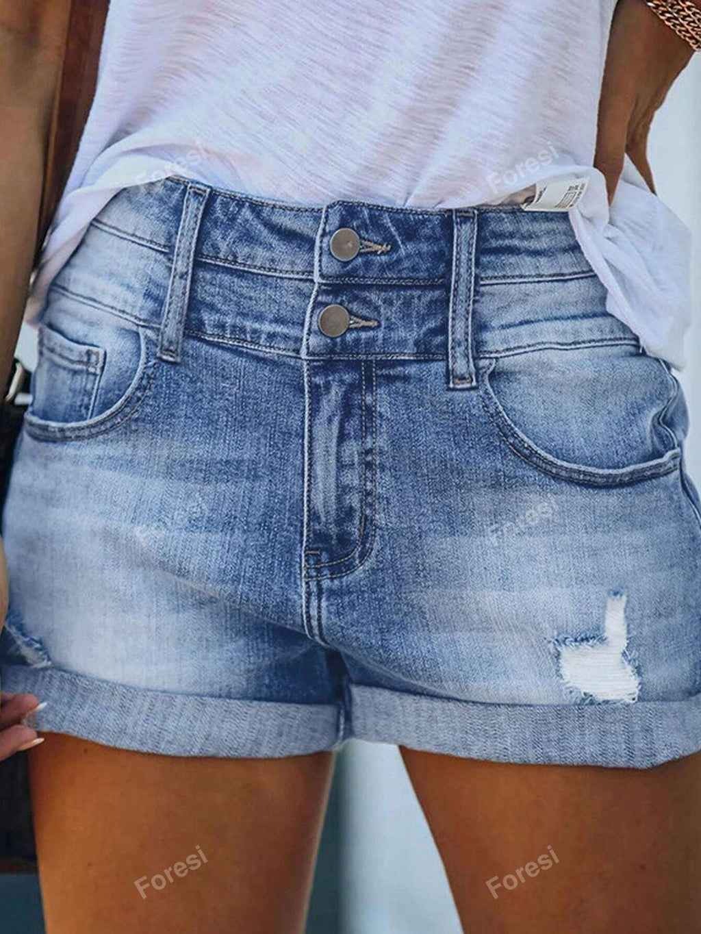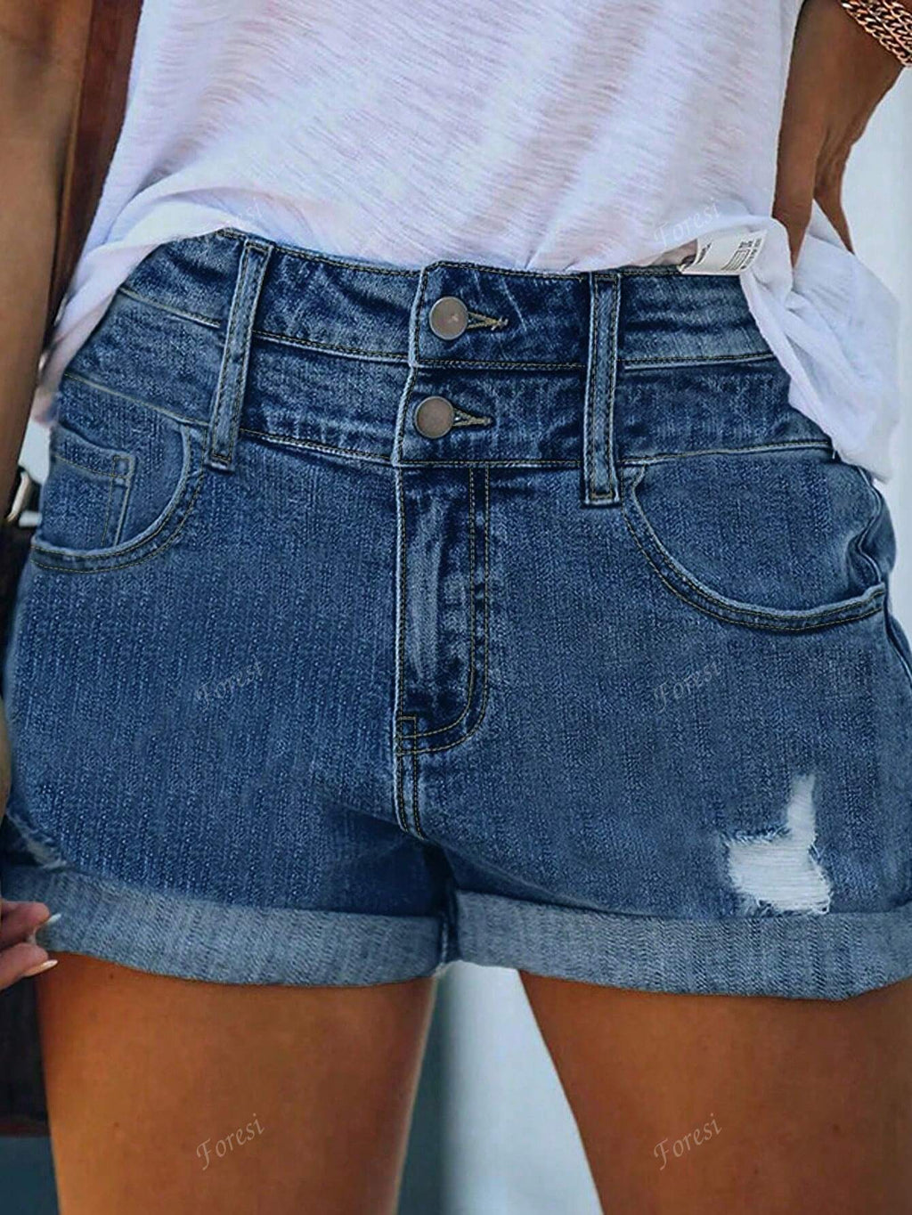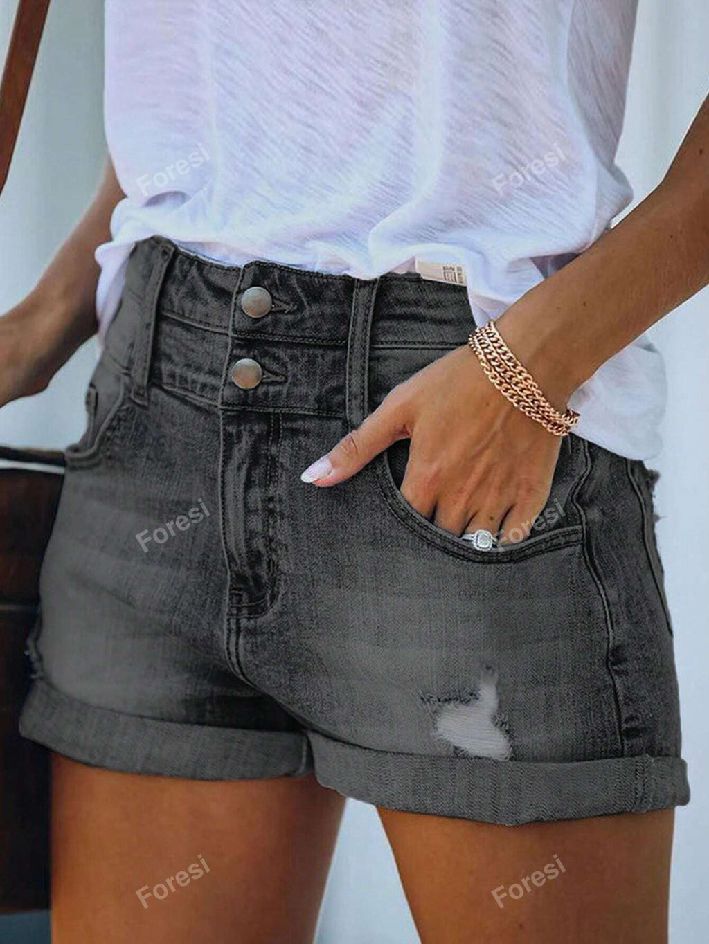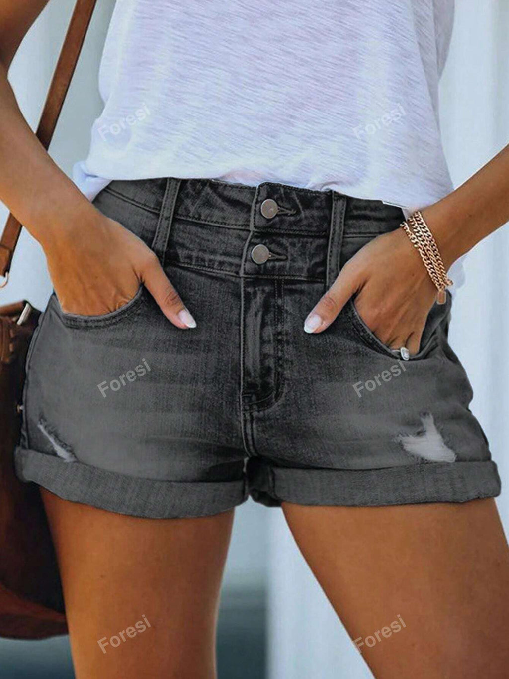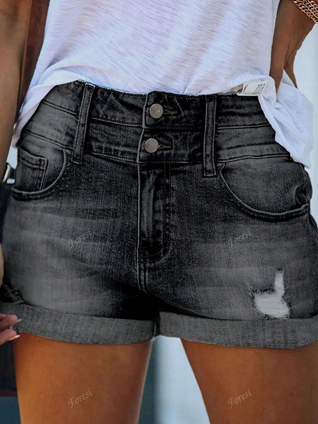 BELLAVOG Women's Basic Denim Shorts With Pockets, Fashion 2-Button