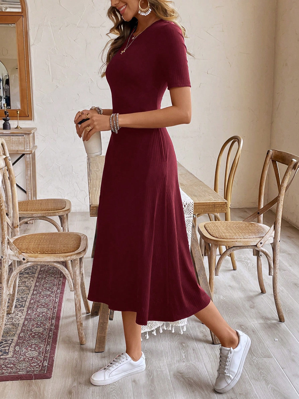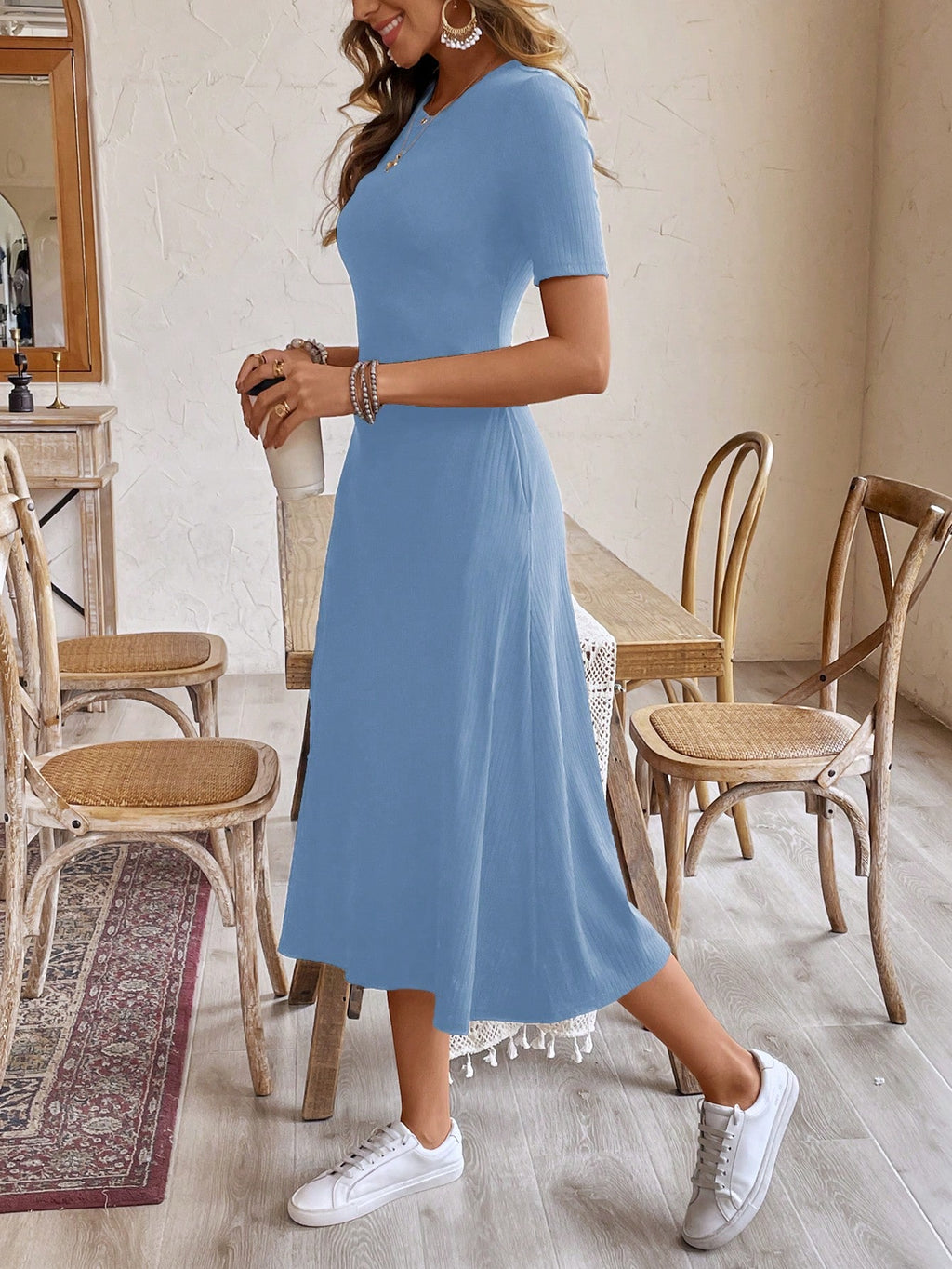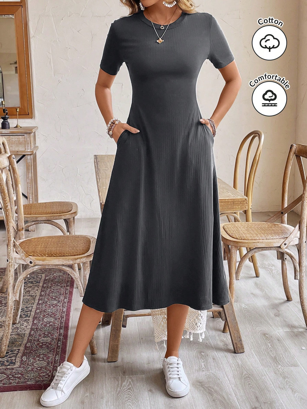BELLAVOG Women's Casual Crew Neck Short Sleeve Black Maxi Dress, Summer,Summer Dresses For Women