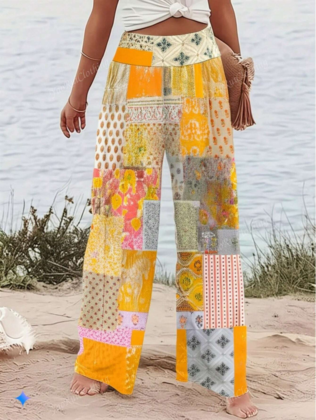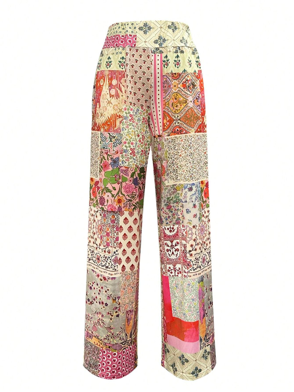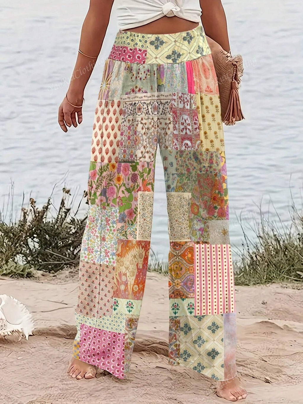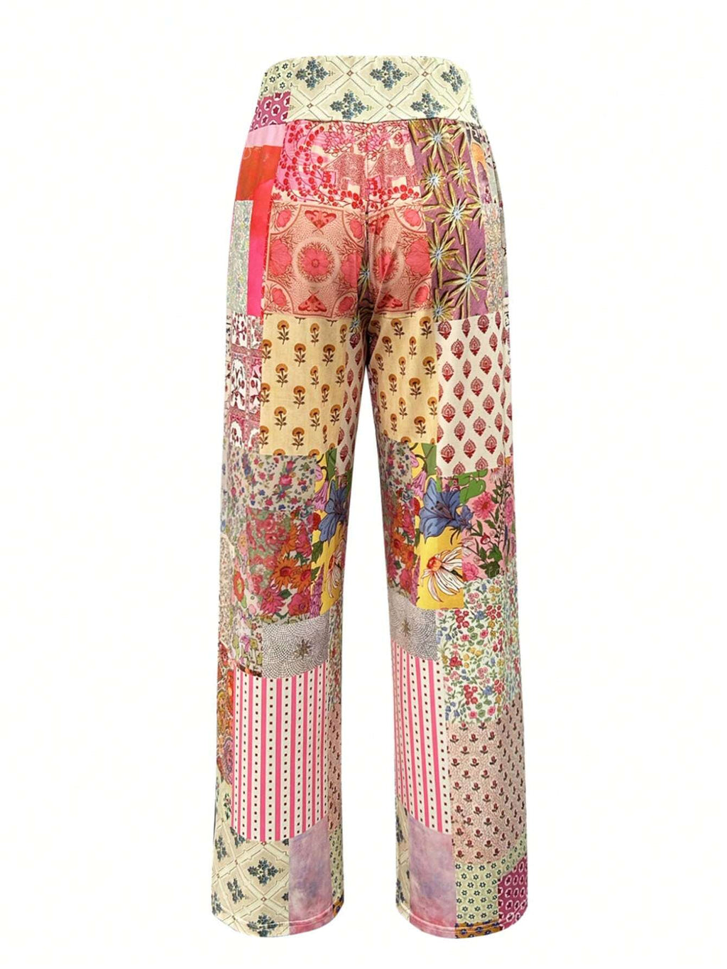BELLAVOG Women's Casual Floral Patchwork Loose Fit Pants, Autumn/Winter