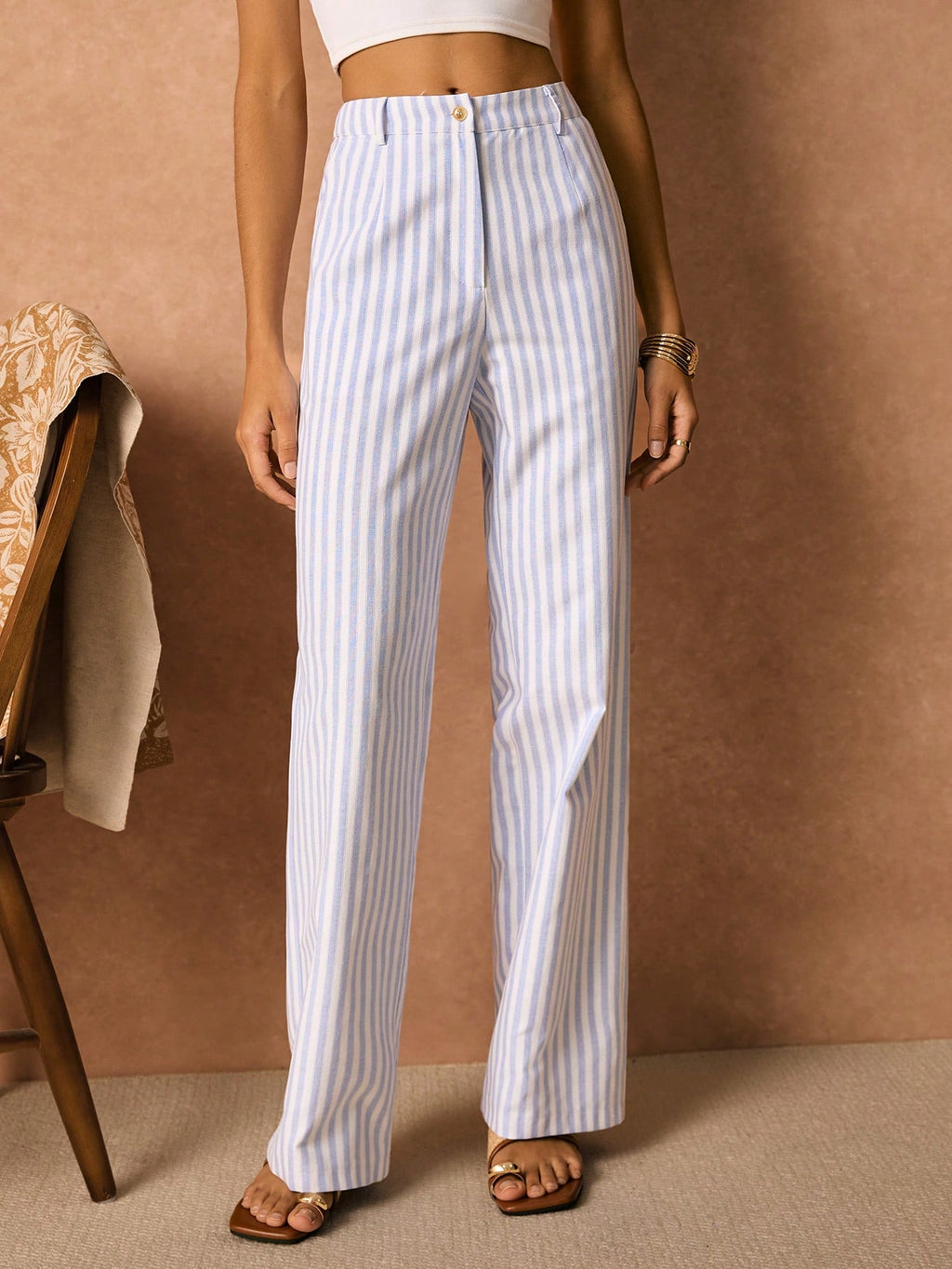 BELLAVOG Women's Casual High-Waisted H-Line Striped Straight Leg Pants With Front Button,Boho,Bohemian,Vacation Outfits Woman,Summer Outfits For Women,Beach Vacation Outfits, Poeselle