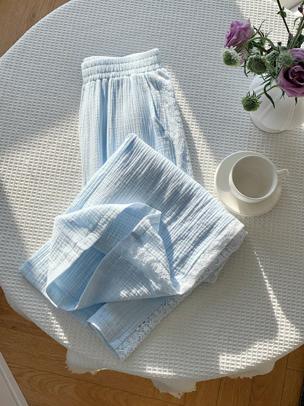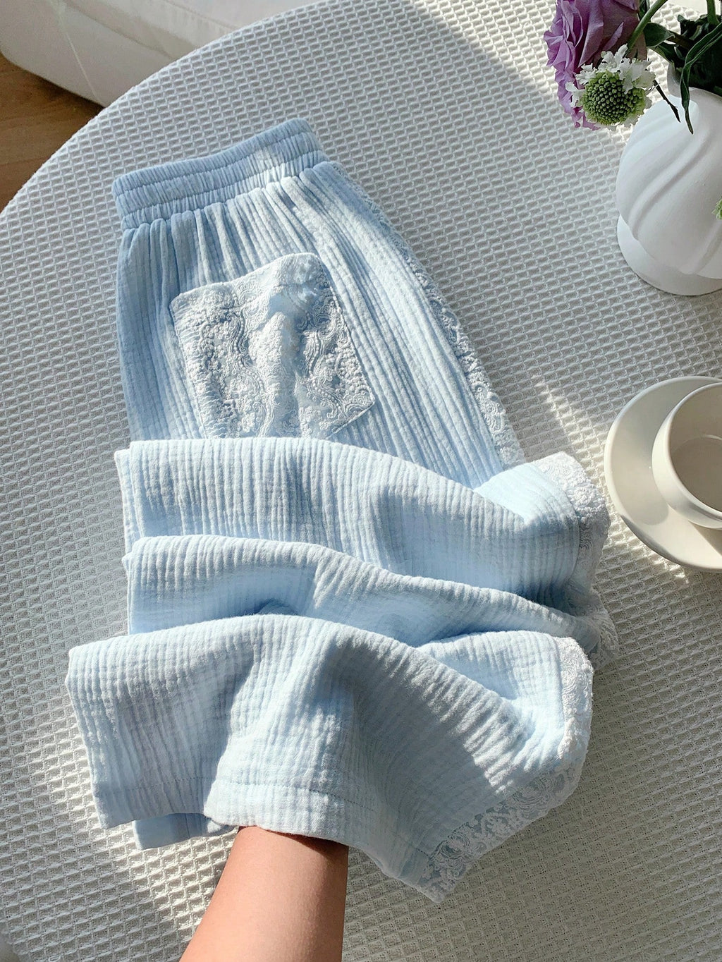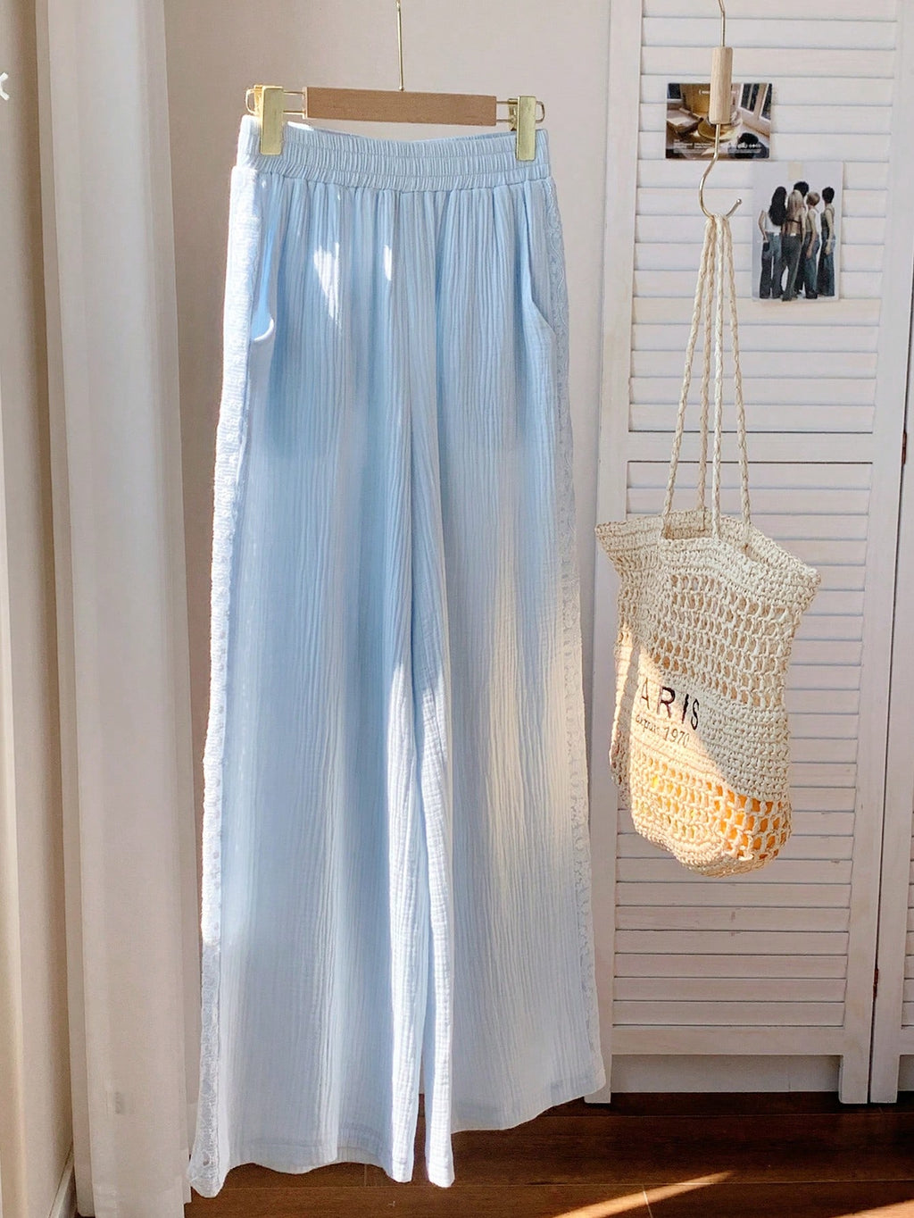 BELLAVOG Women's Casual Lace Patchwork Wide Leg Pants