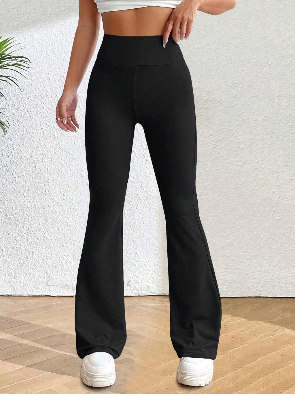 BELLAVOG Women's Casual Solid Color High Waisted Slim Flared Long Pants,Ladies Spring/Fall Casual Natural Flare Leg Long Black Regular Fit Women Pants,Casual Daily Wear