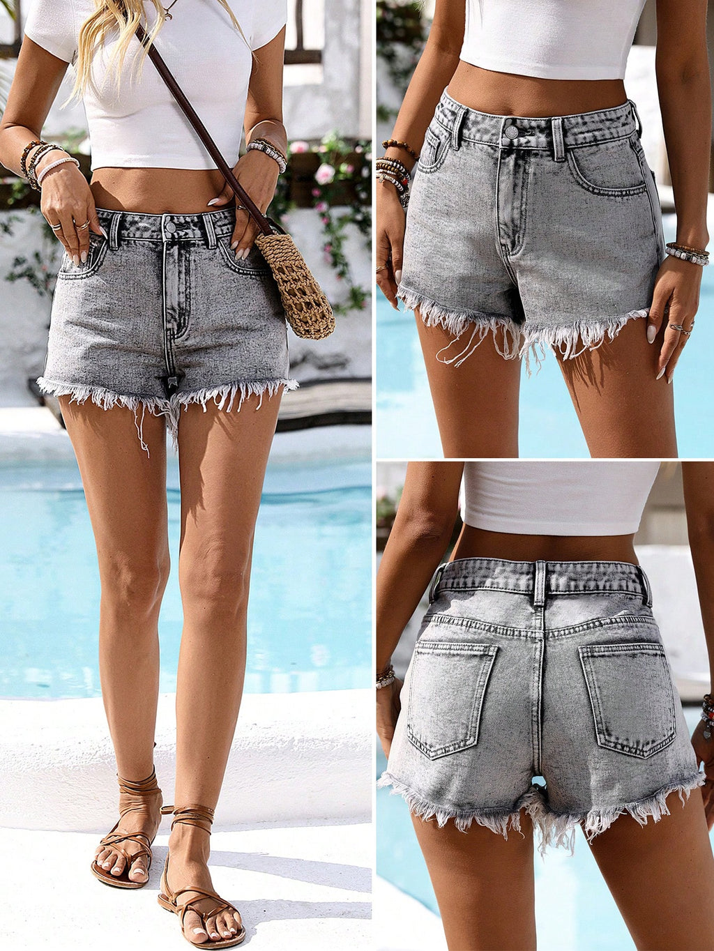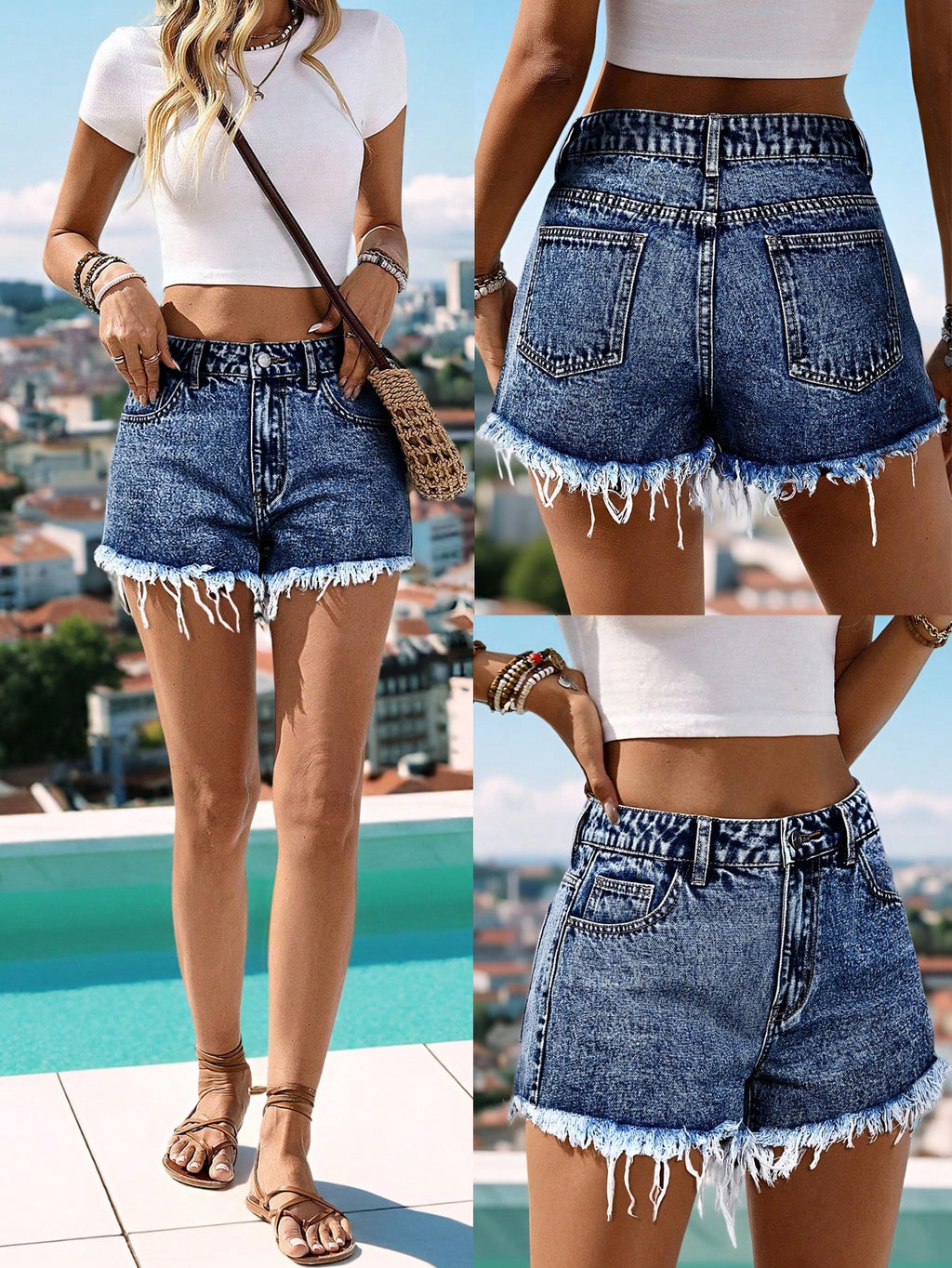 BELLAVOG Women's Casual Versatile Denim Frayed Hem Shorts With Pockets