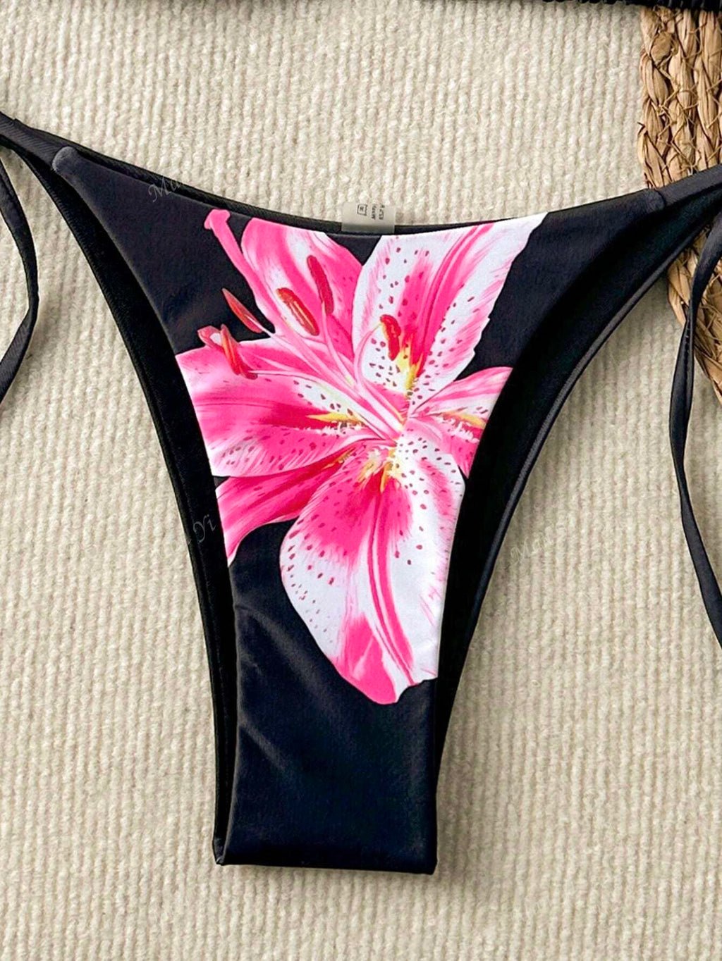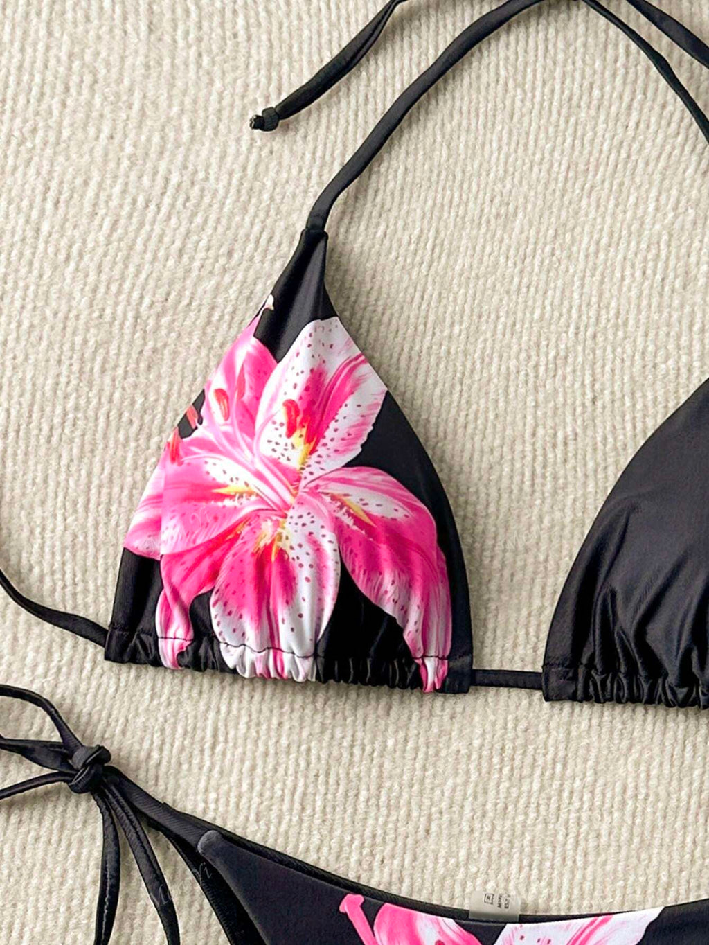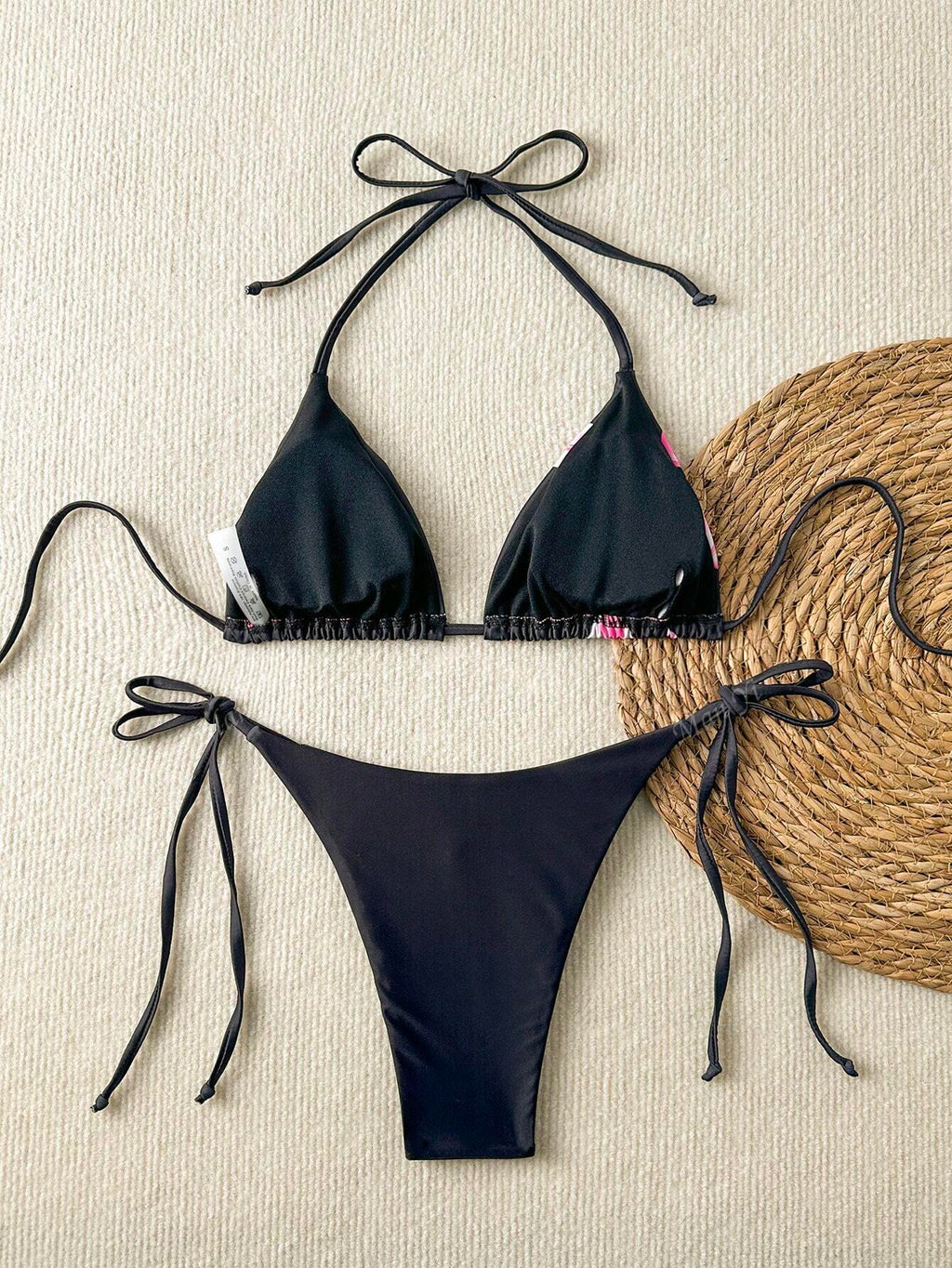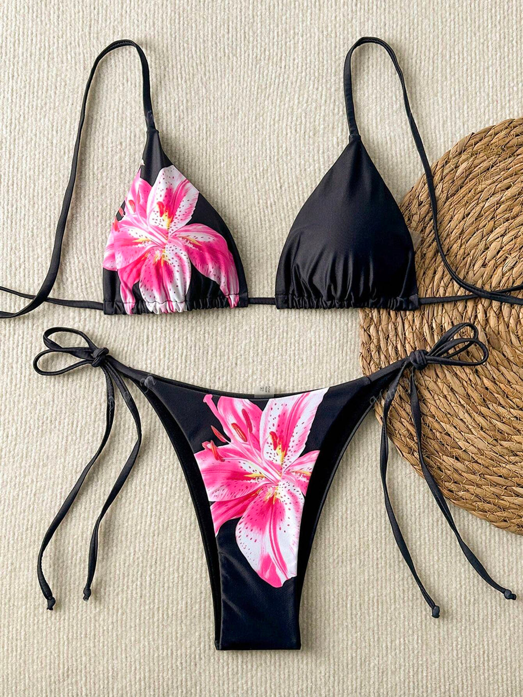 BELLAVOG Women's Floral Print Bikini Set, Tie-Up Triangle Top And Tie-Side Triangle Bottom, Summer