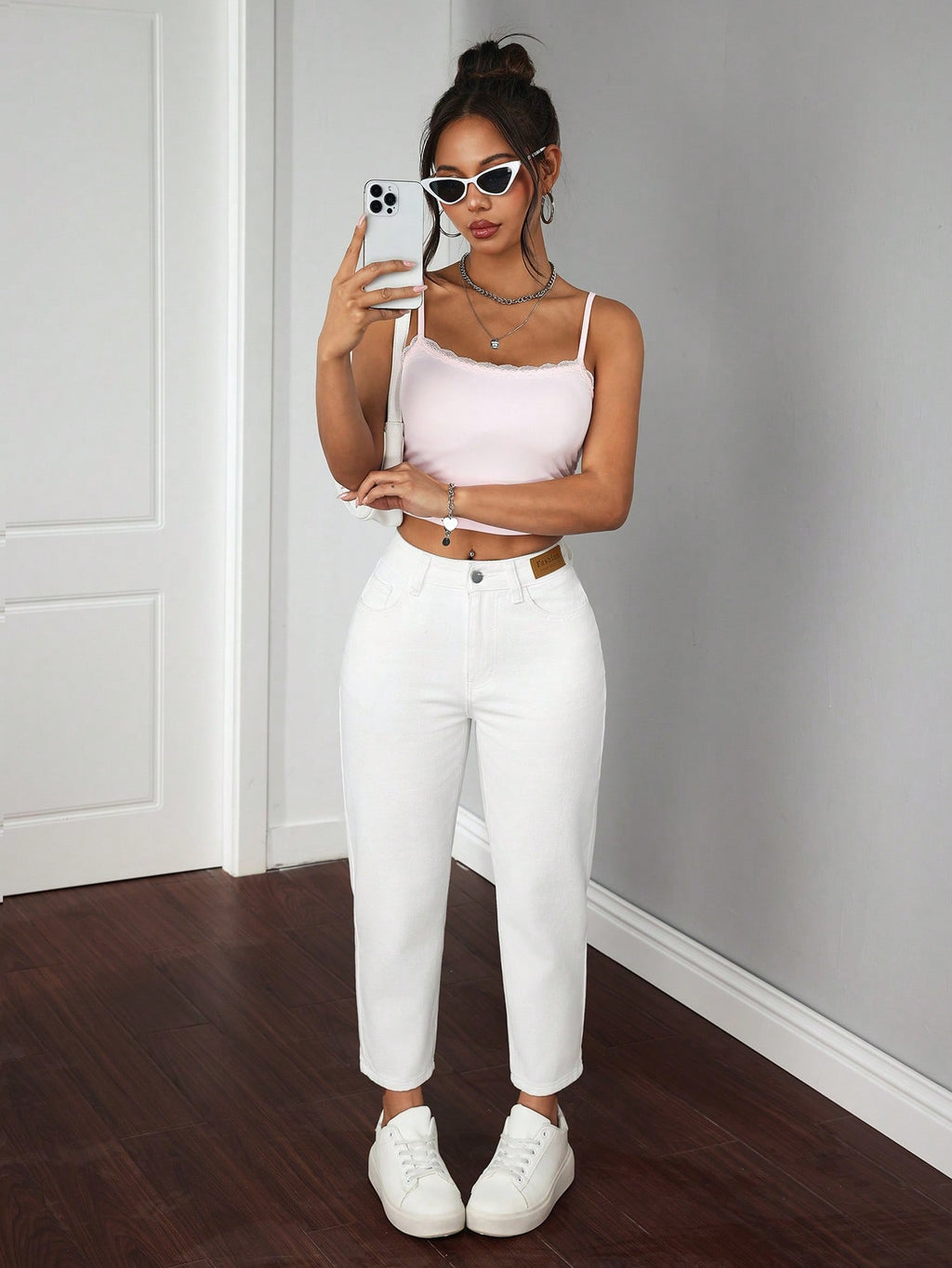 BELLAVOG Women's Front Button Pocket Minimal Casual Denim Jeans
