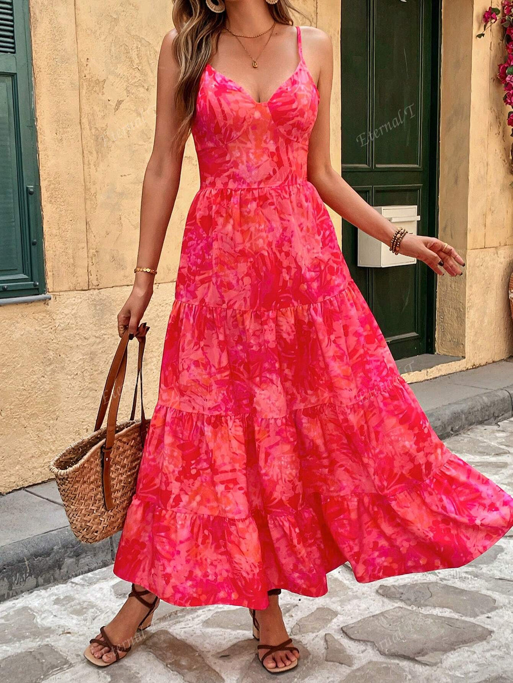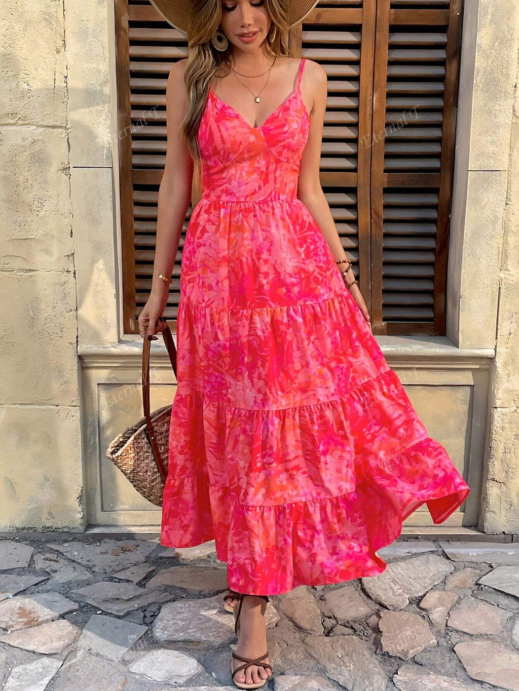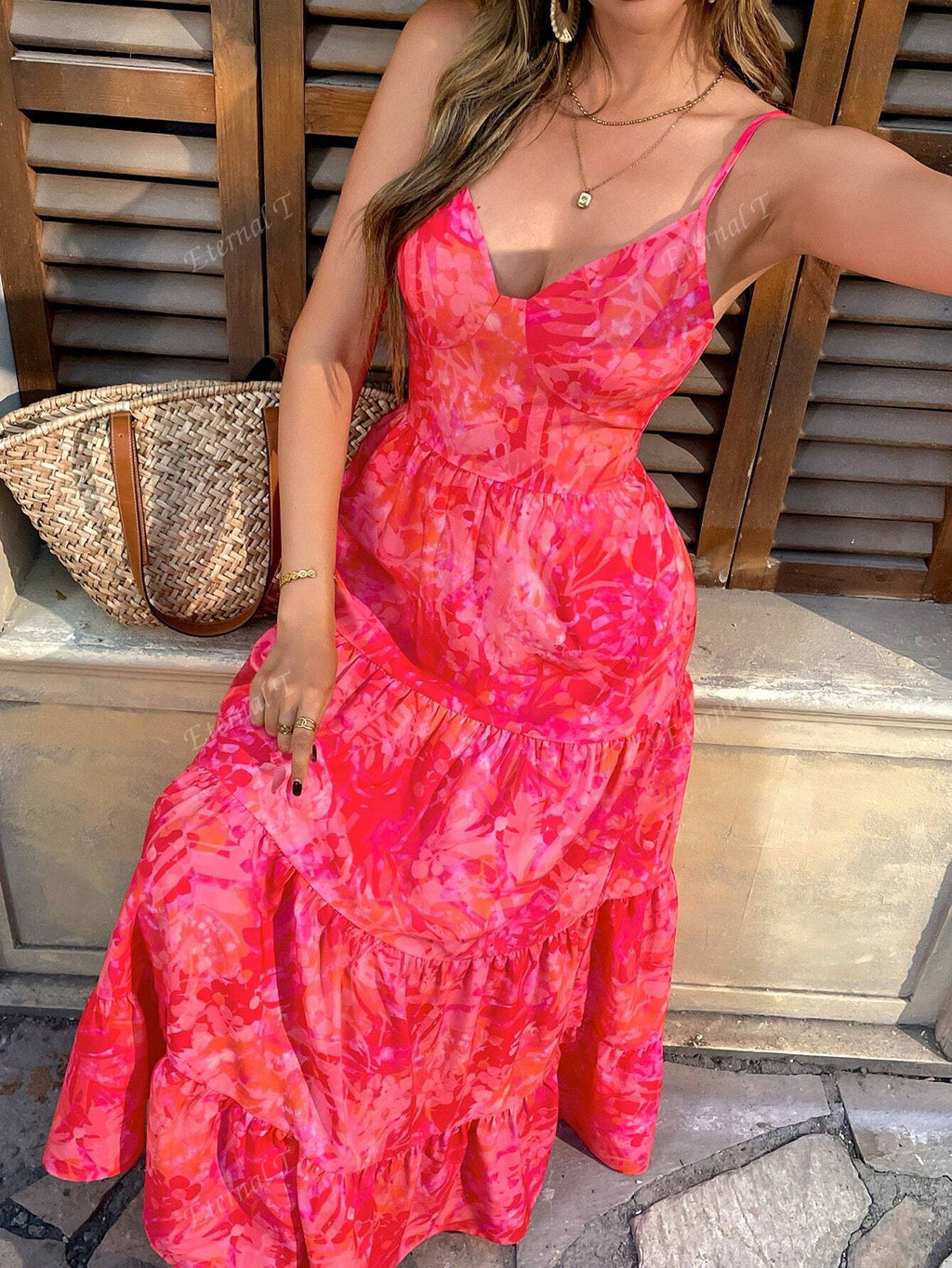BELLAVOG Women's Long Backless Slip Dress, Waist Cinching Beach Sundress