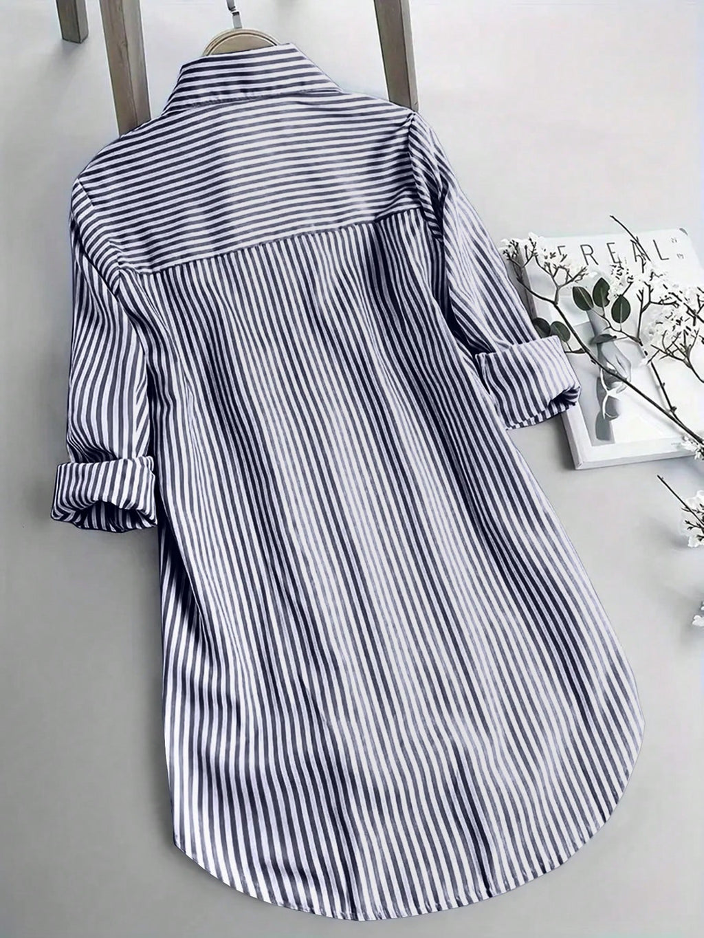 BELLAVOG Women's Oversized Striped Casual Shirt, Short Front Long Back Design,Long Sleeve Tops