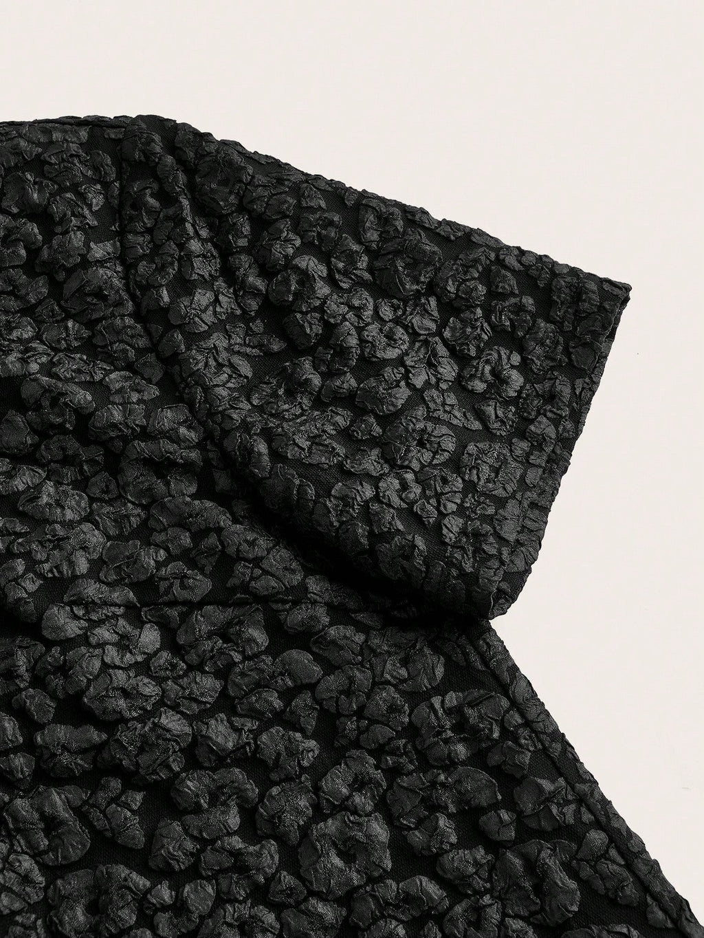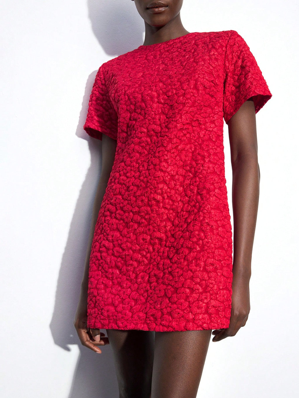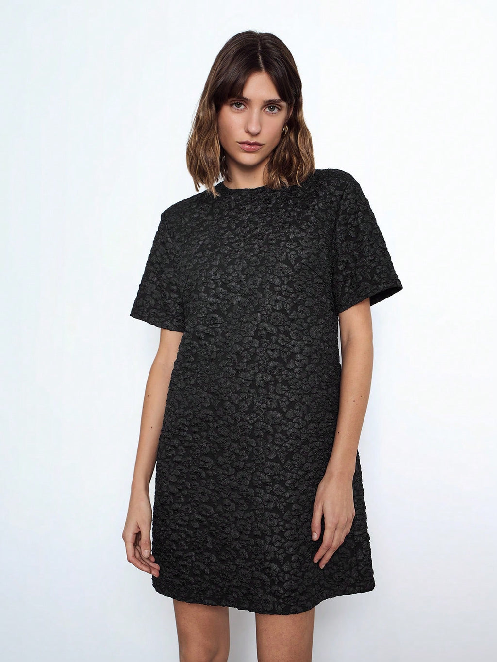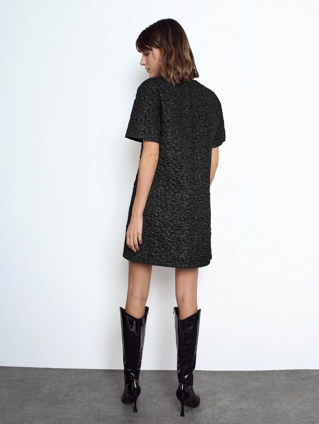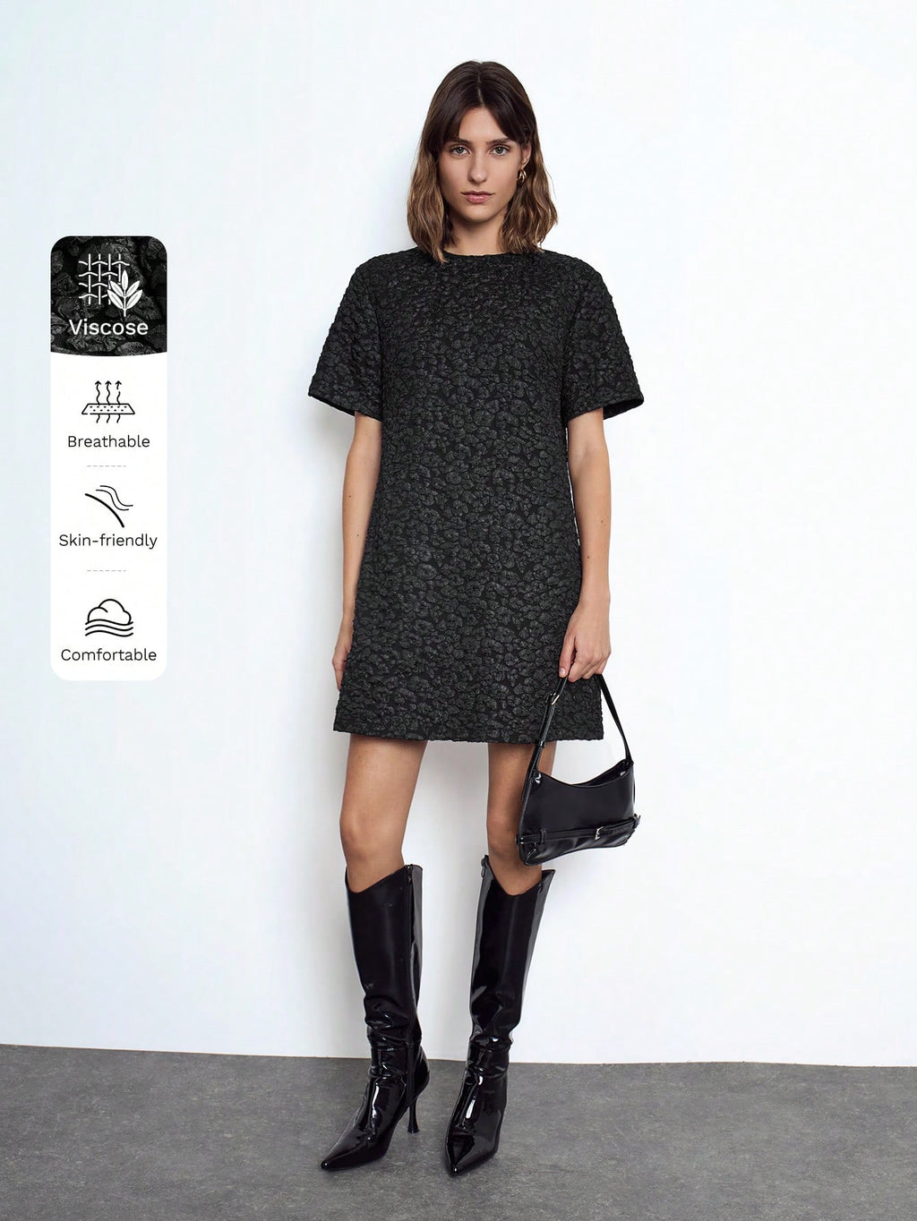 BELLAVOG Women's Party Crew Neck Short Sleeve Textured Minimalist Versatile Black Mini Dress, Autumn/Winter