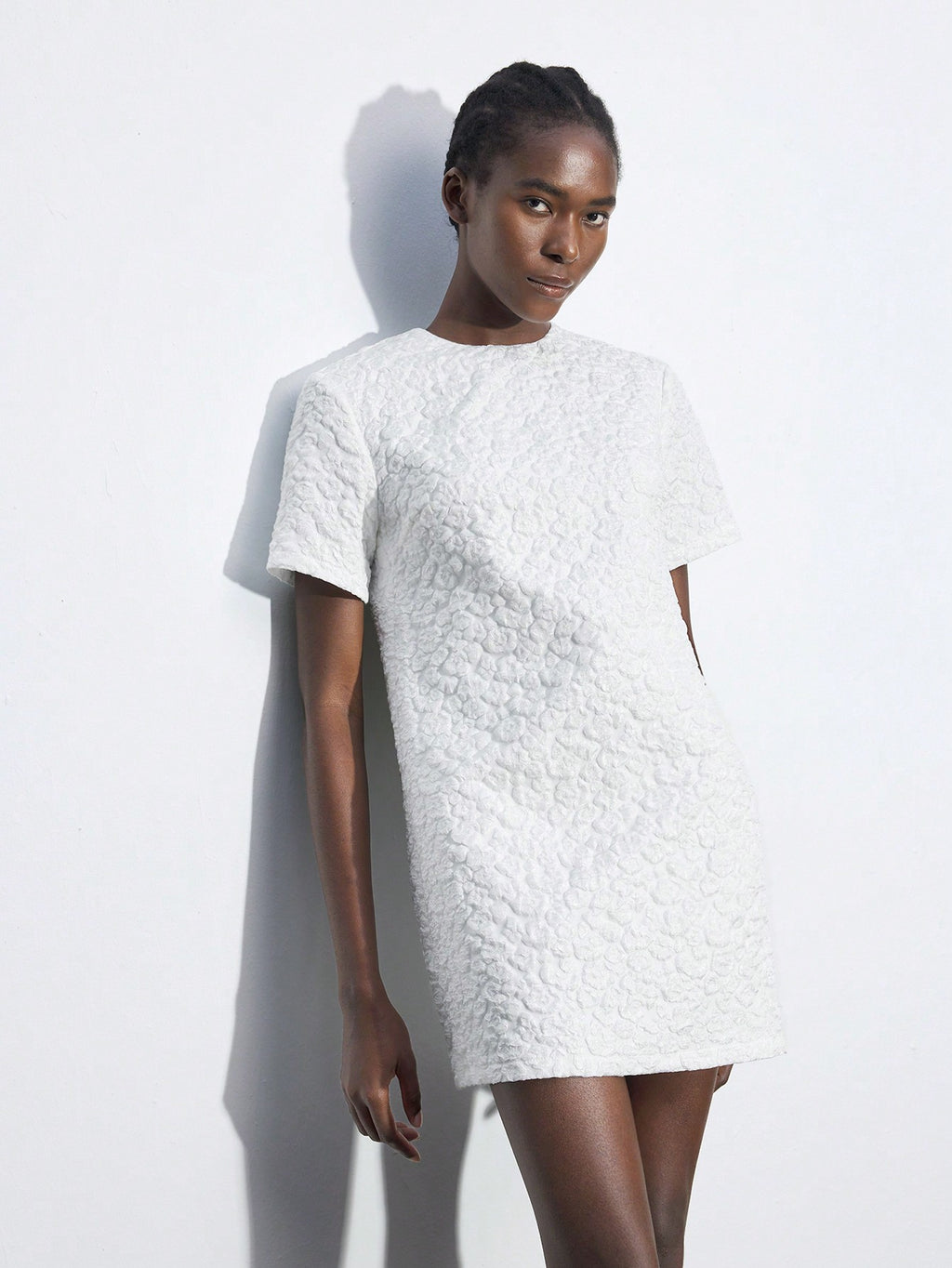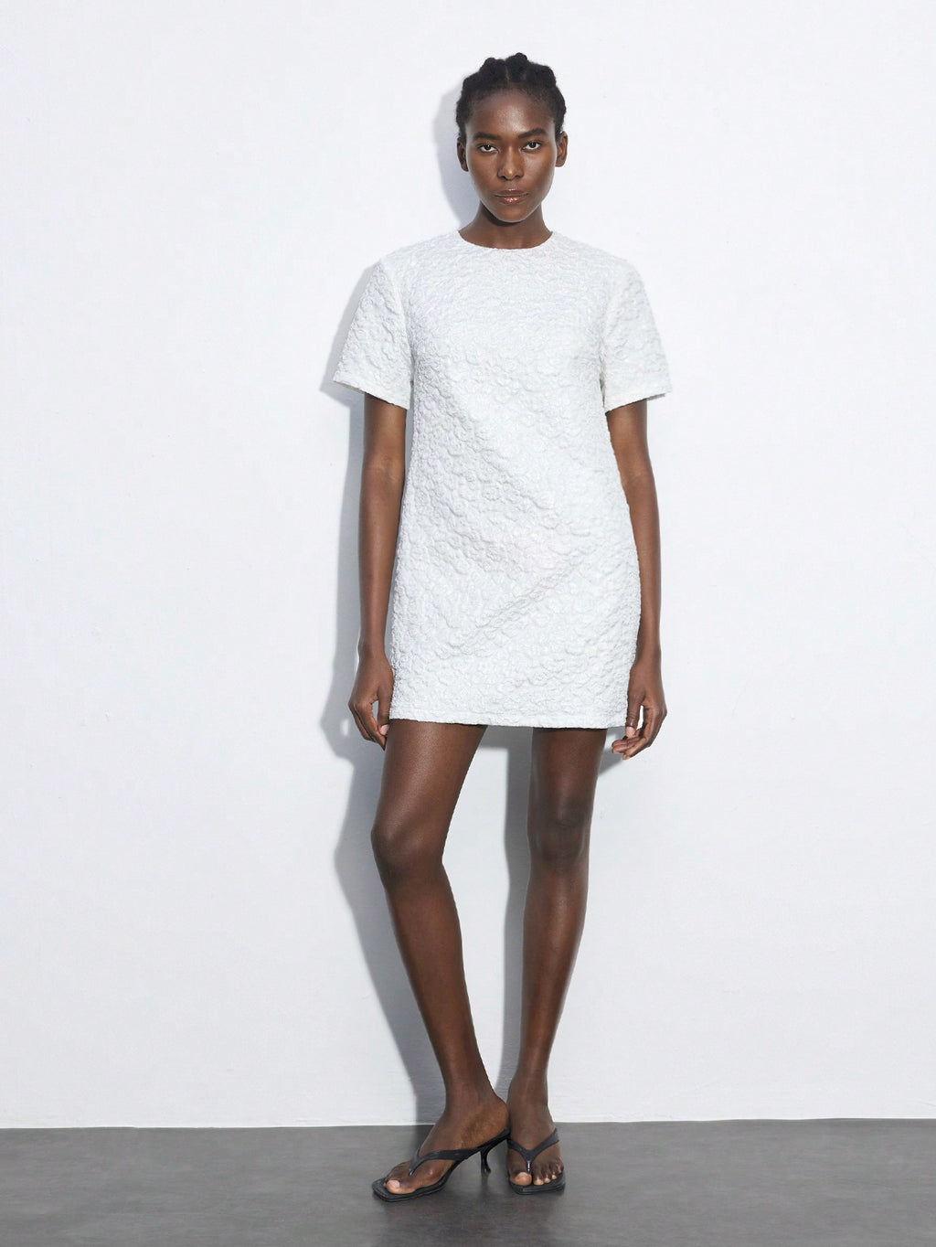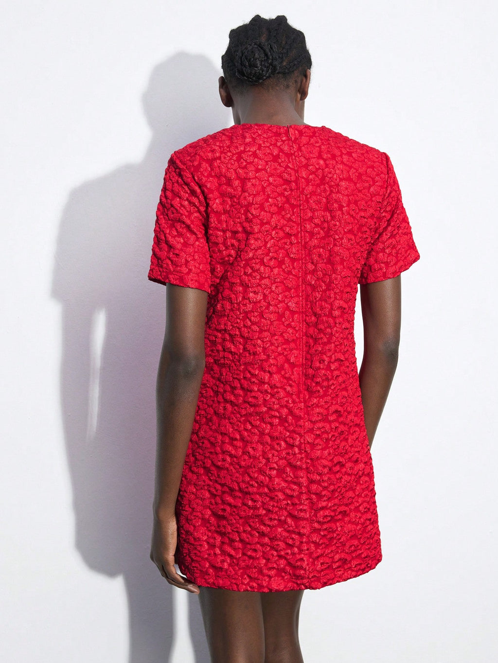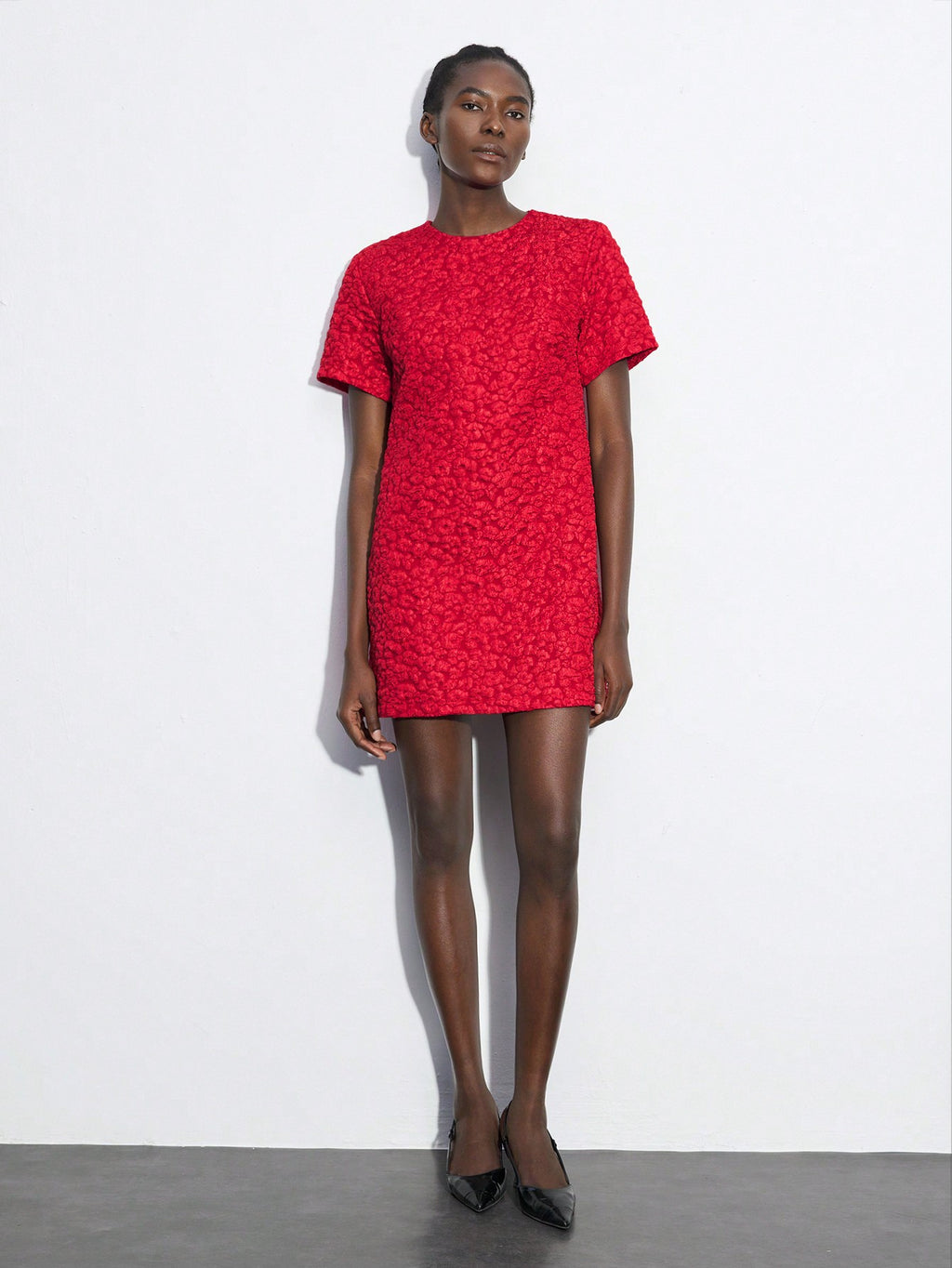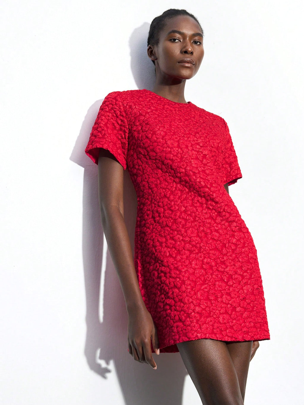 BELLAVOG Women's Party Crew Neck Short Sleeve Textured Minimalist Versatile Black Mini Dress, Autumn/Winter
