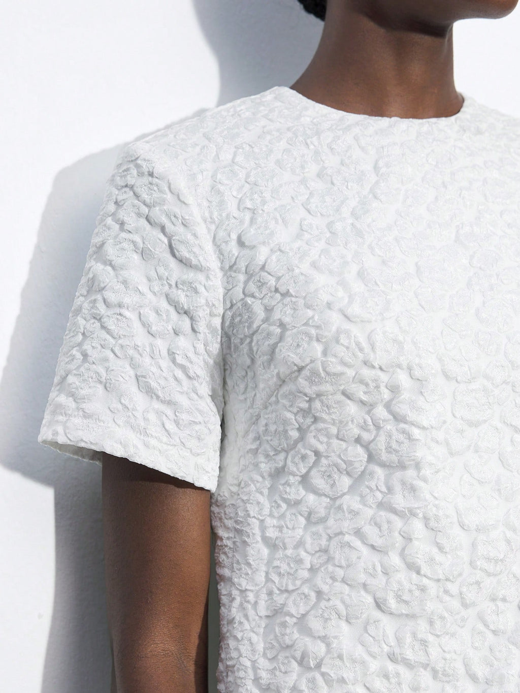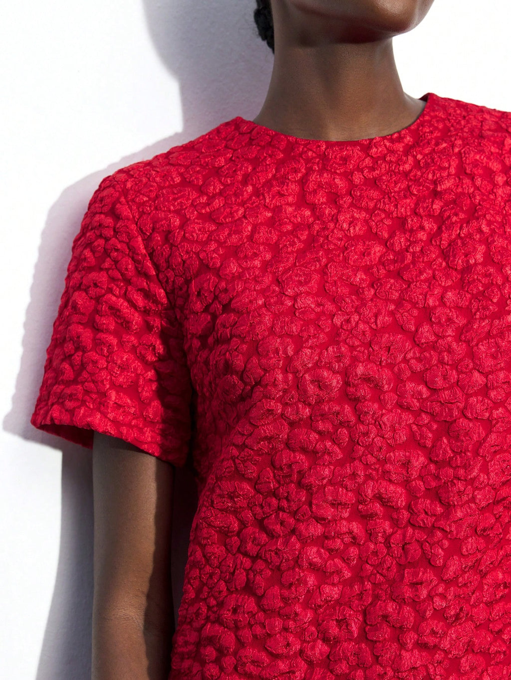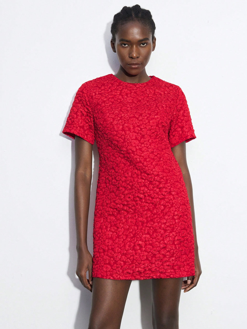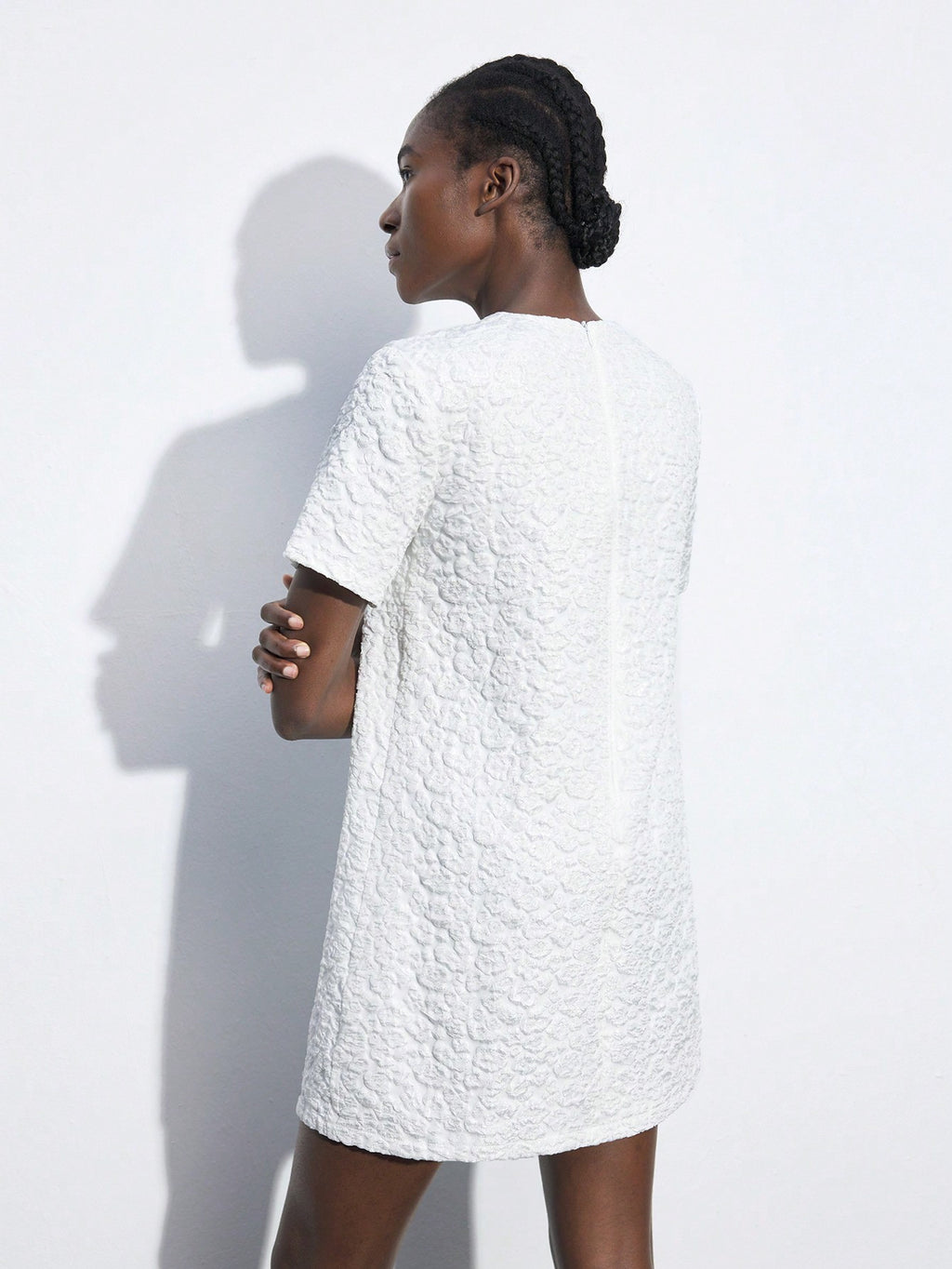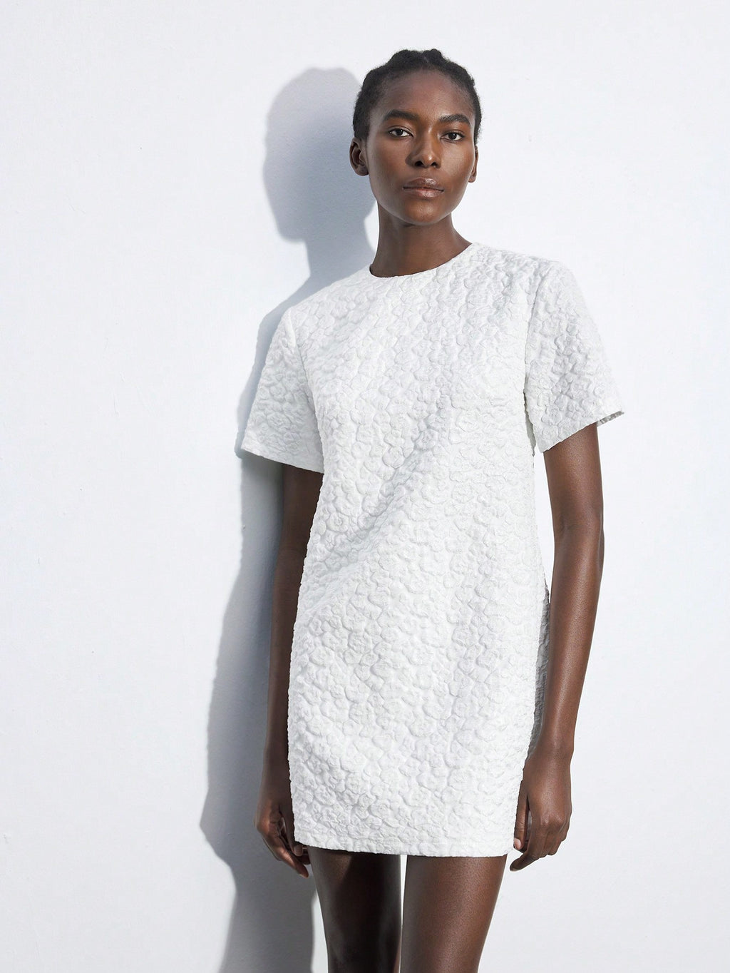 BELLAVOG Women's Party Crew Neck Short Sleeve Textured Minimalist Versatile Black Mini Dress, Autumn/Winter