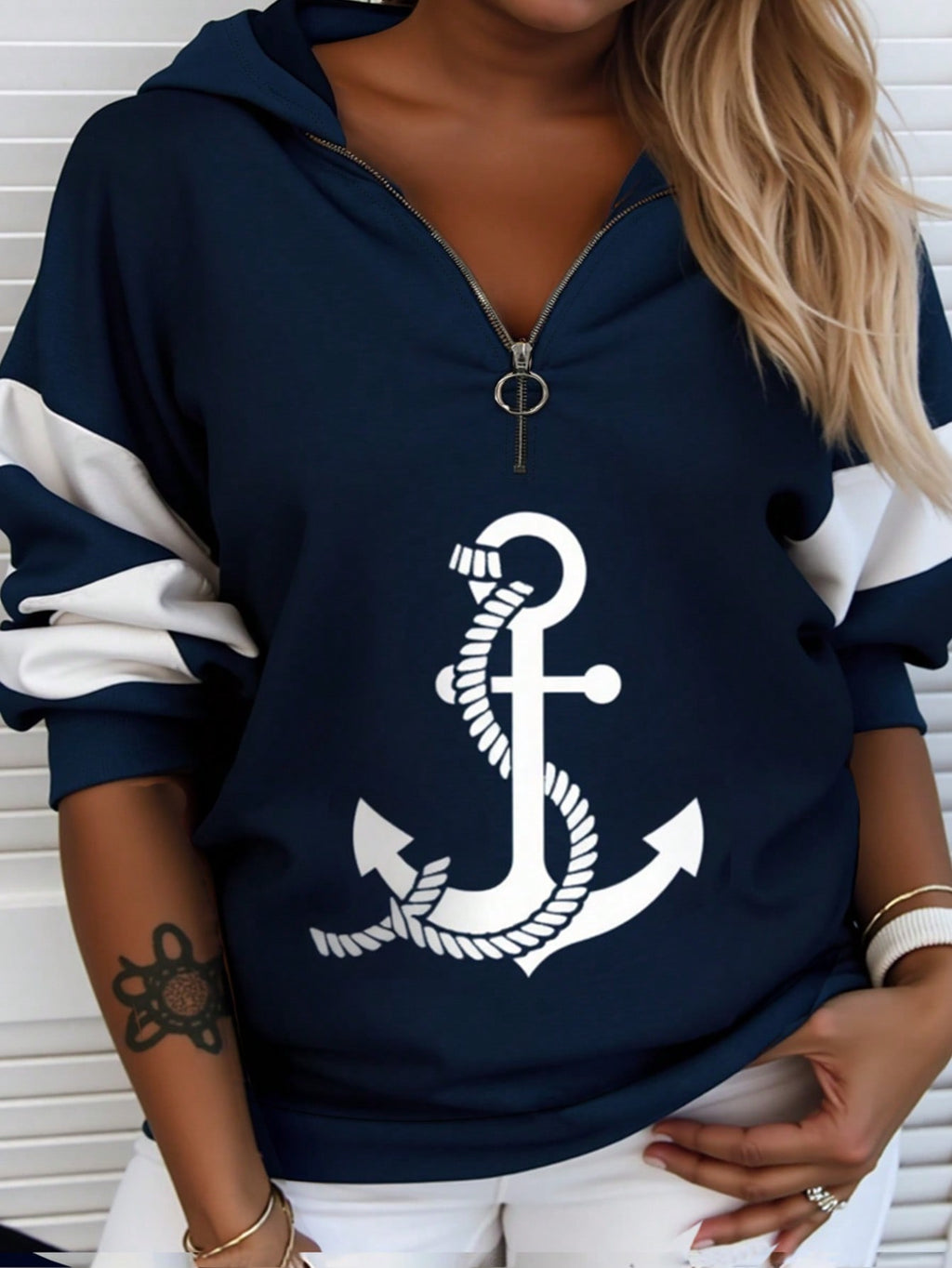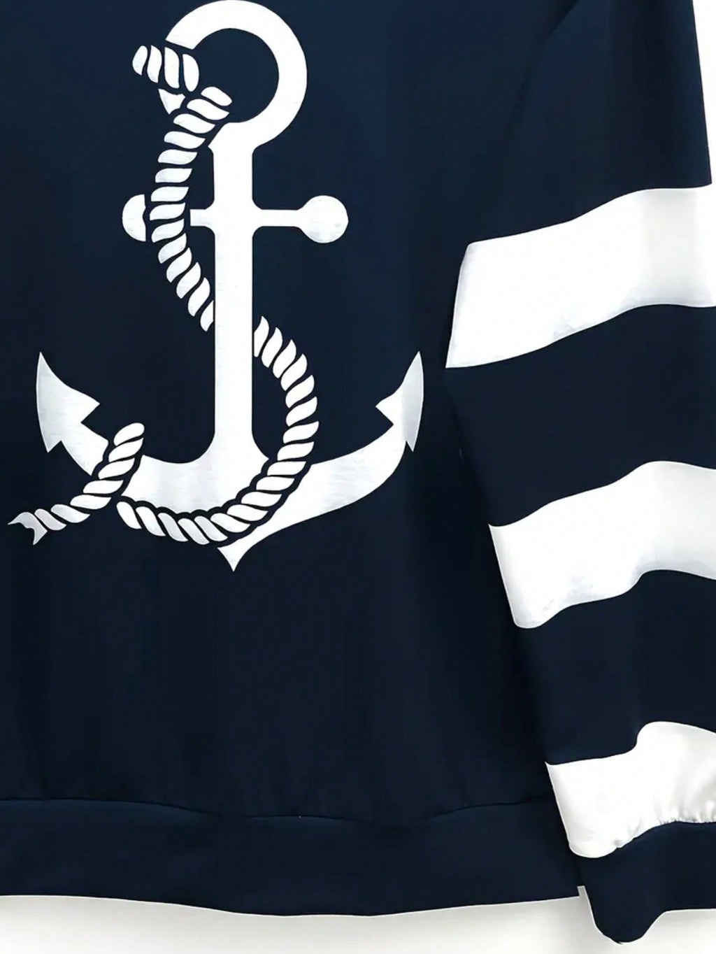BELLAVOG Women's Plus Size Anchor Graphic Hooded Sweatshirt