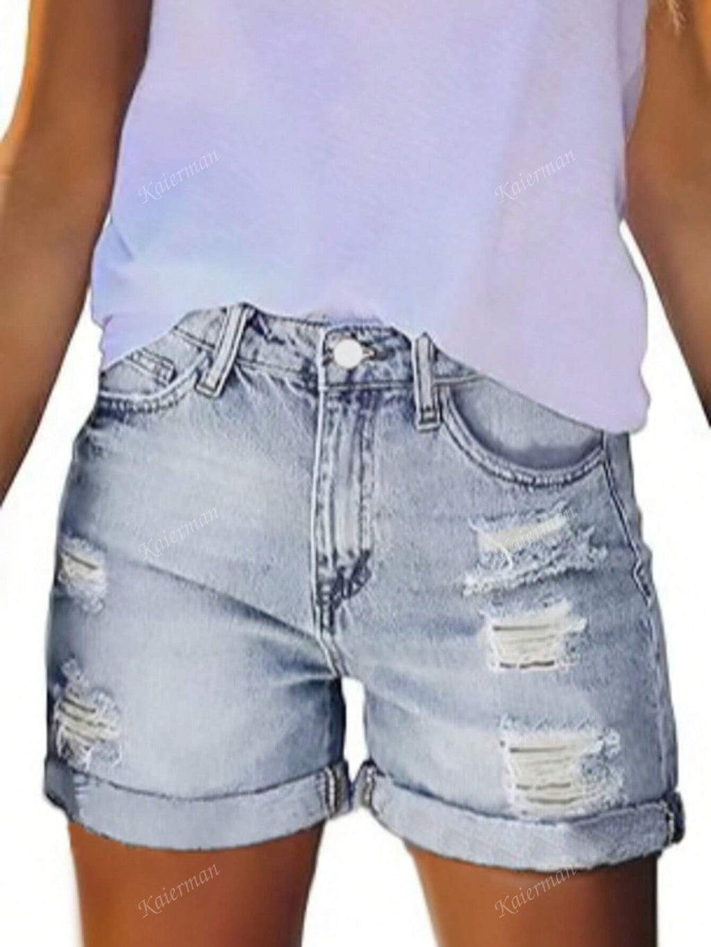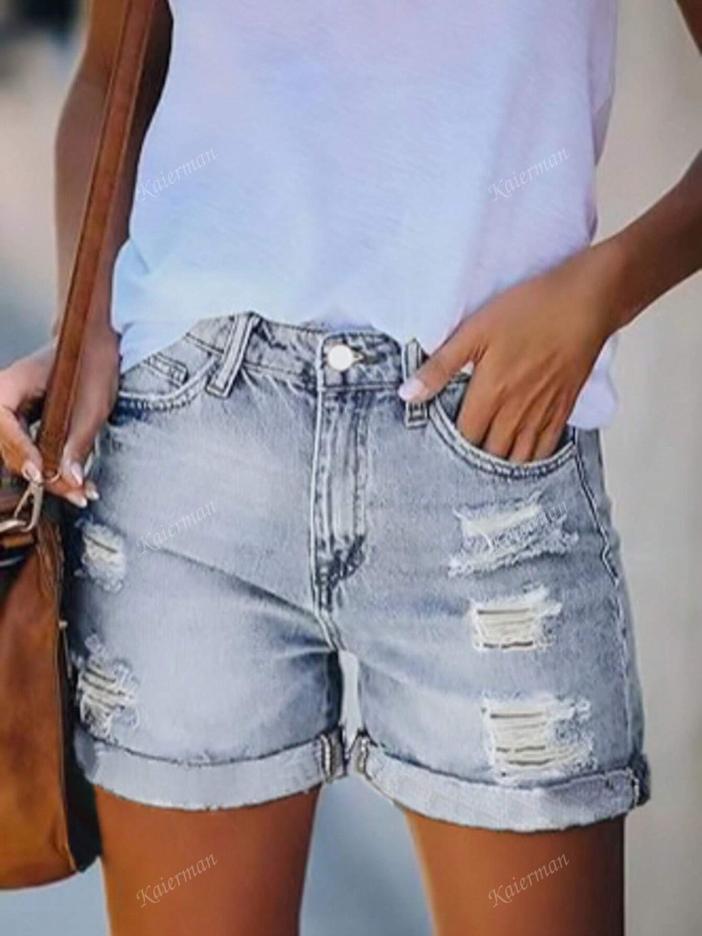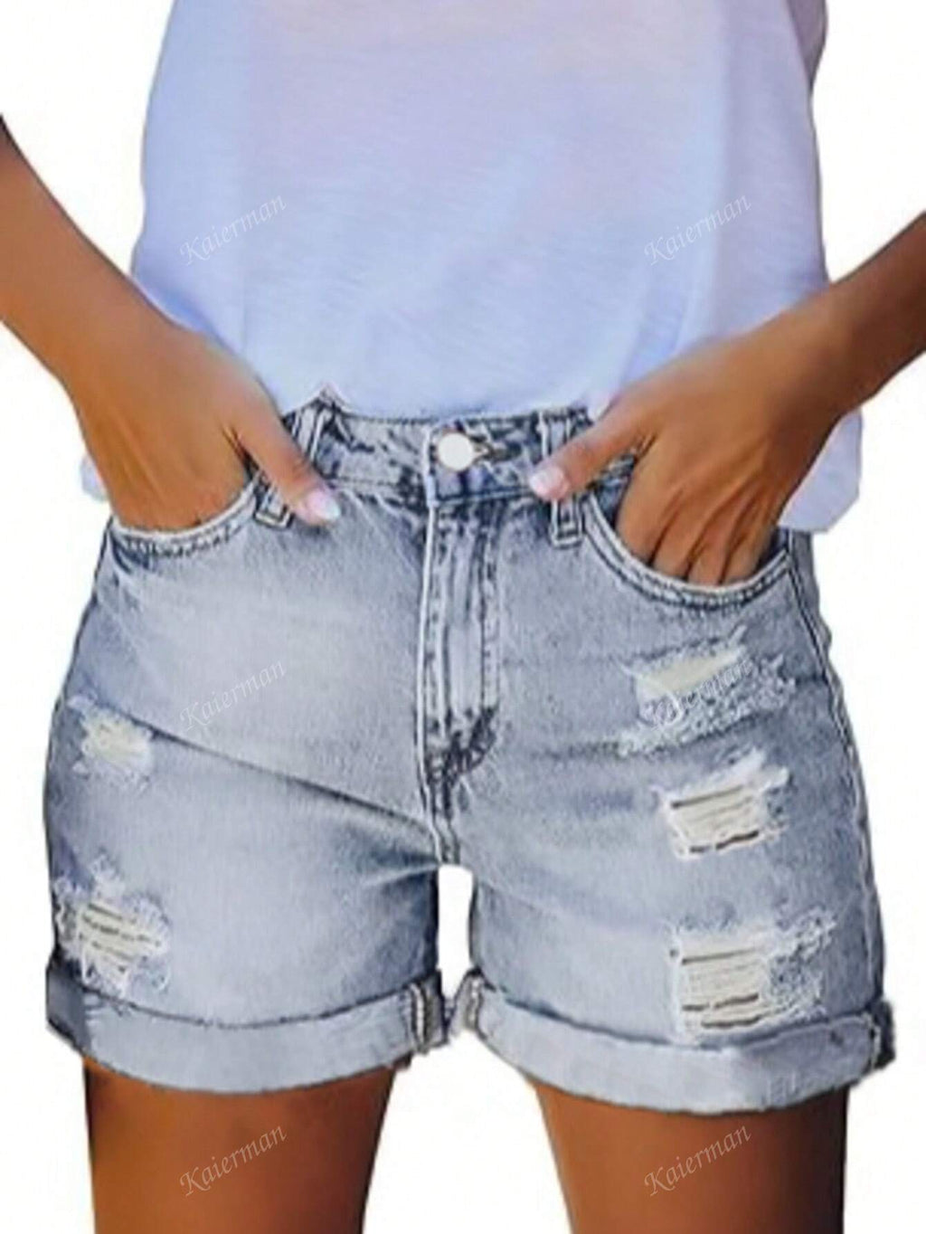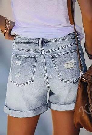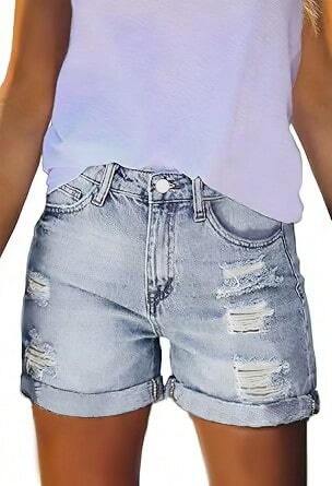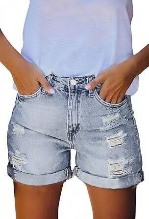 BELLAVOG Women's Pocket Ripped Hem Casual Denim Shorts