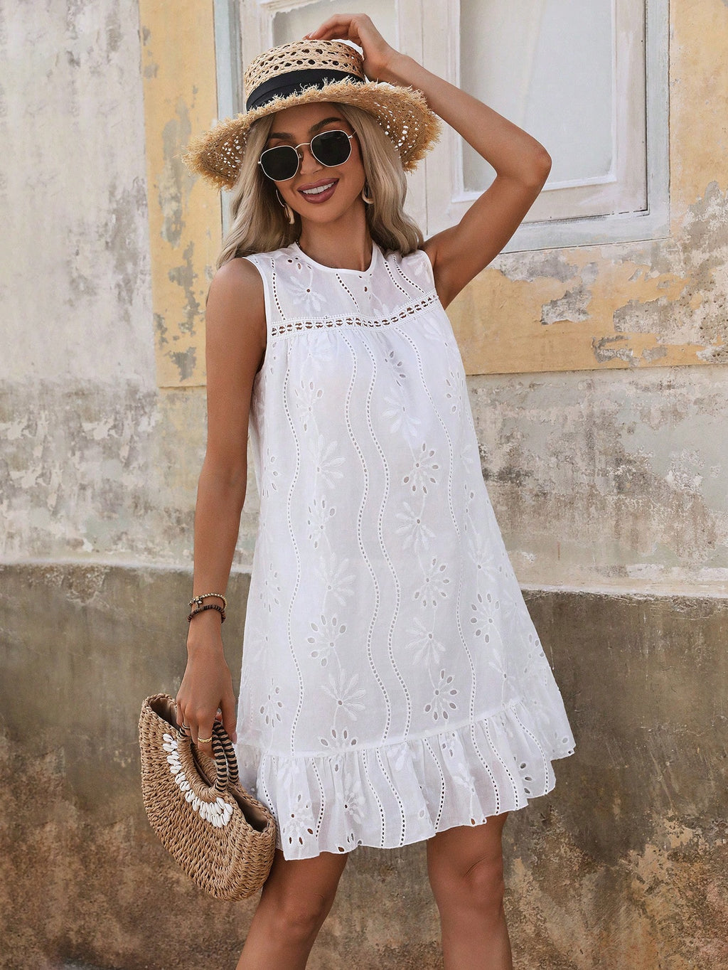 BELLAVOG Women's Ruffle Hem Sleeveless A-Line Dress