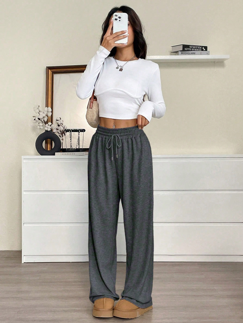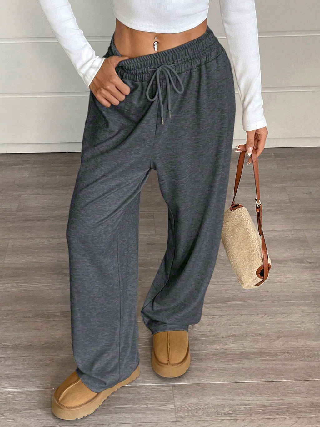 BELLAVOG Women's Solid Color Drawstring Waist Loose Casual Sweatpants Women Wide Leg Pants