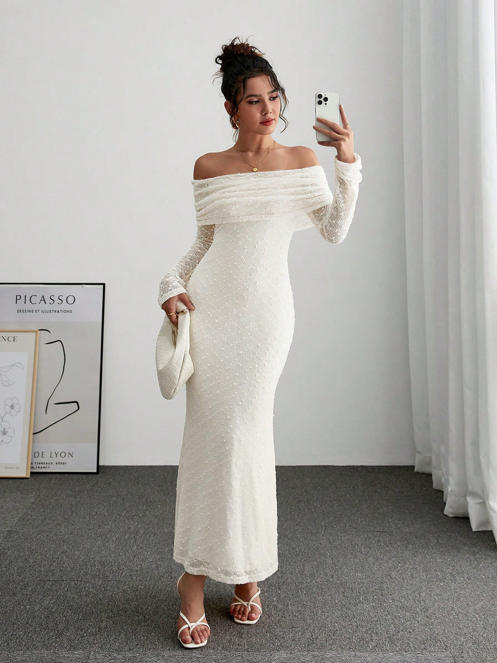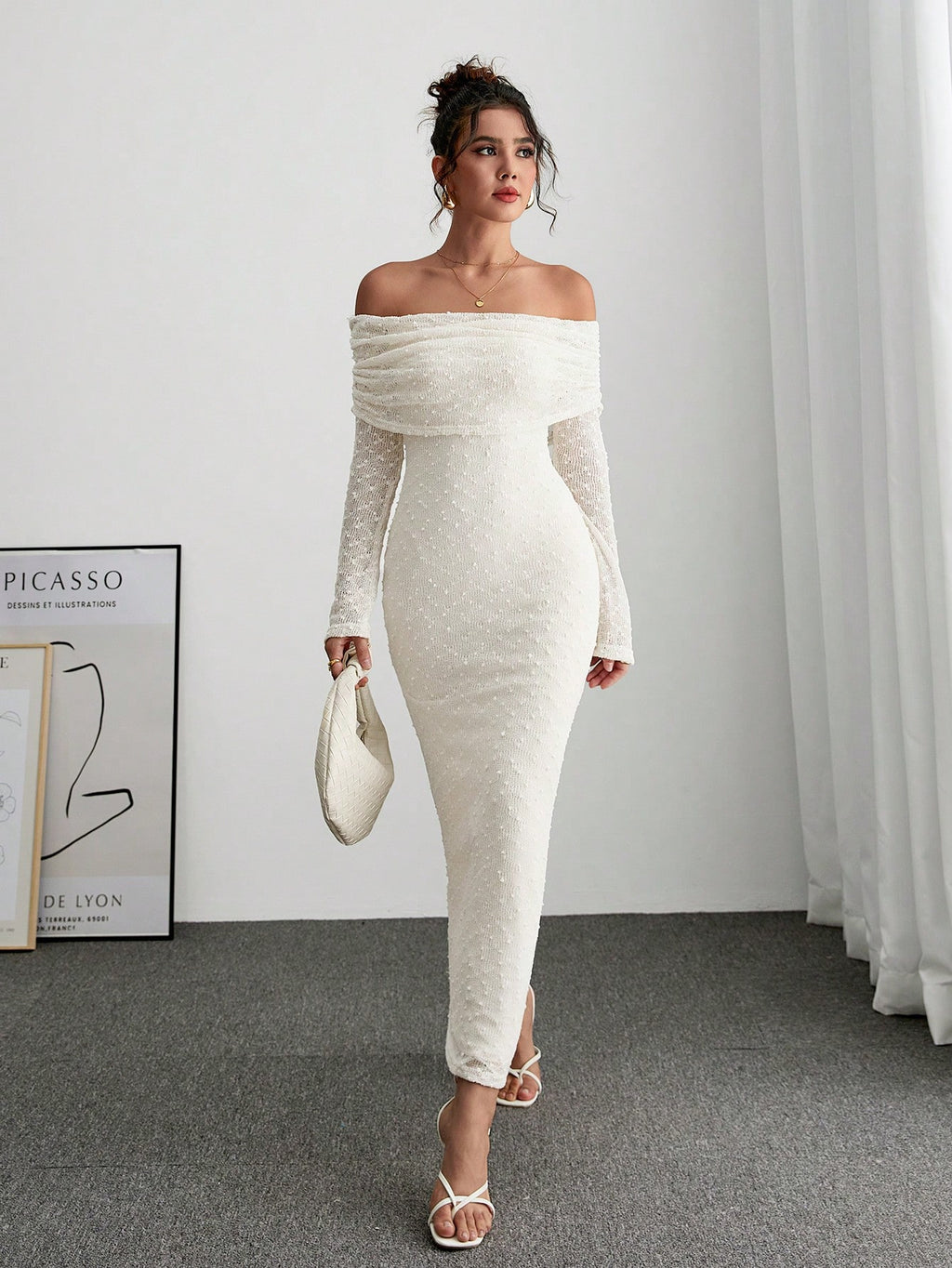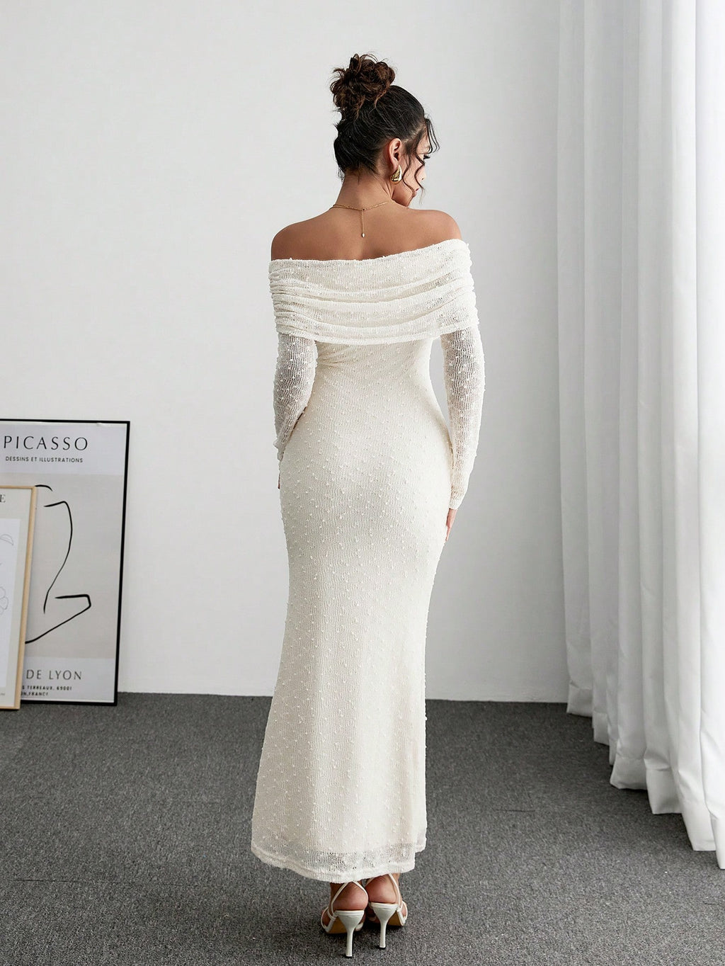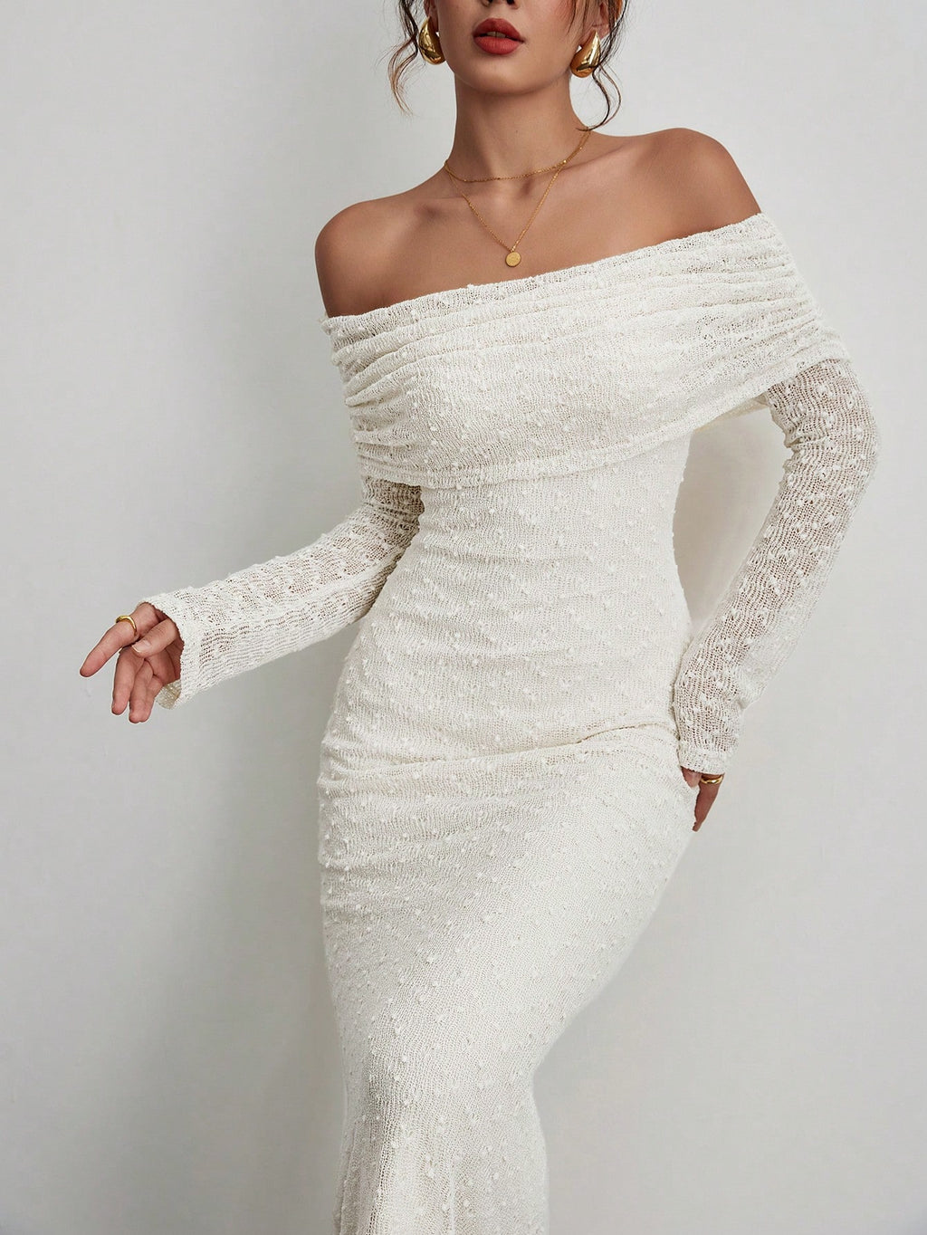 BELLAVOG Women's Solid Color Off-Shoulder Long Sleeve Fitted Elegant Dress Long Sleeve Long Sweater Dress Thanksgiving Dress Christmas Dress Winter Women Elegant Dress Holiday Dress