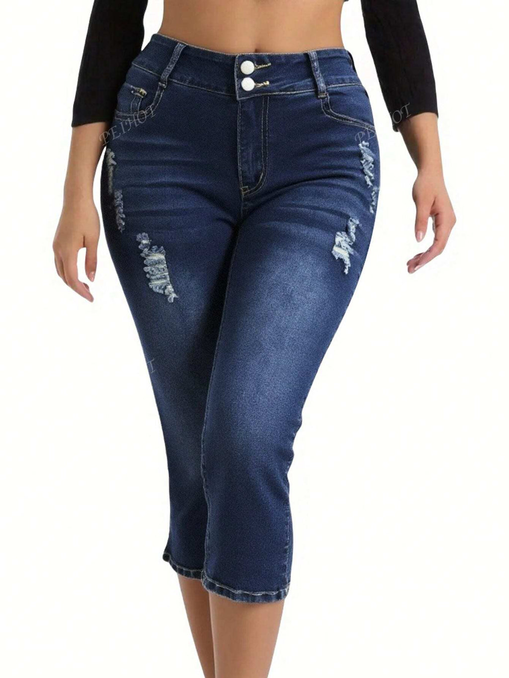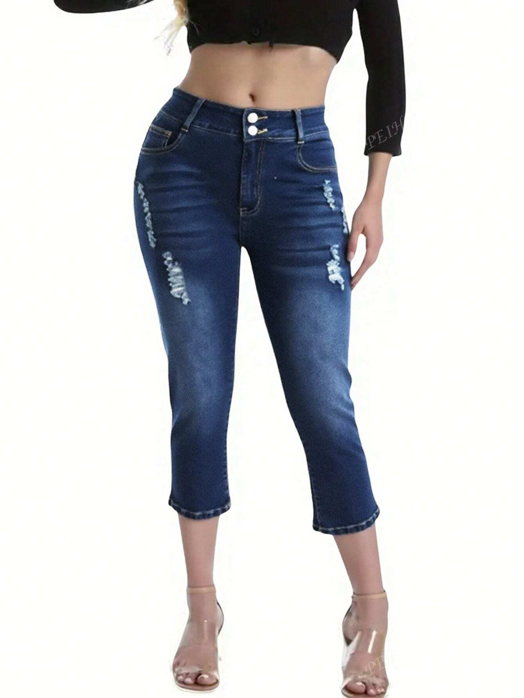 BELLAVOG Women's Stretch Slim-Fit Mid-Length Denim Capris - Casual Blue Jeans With Rolled Hem, Machine Washable, Summer Essential For Casual Attire