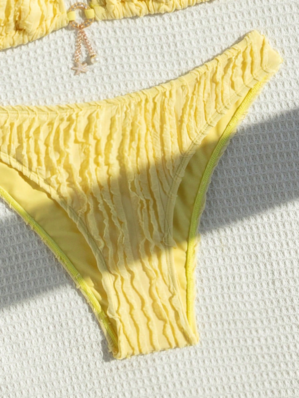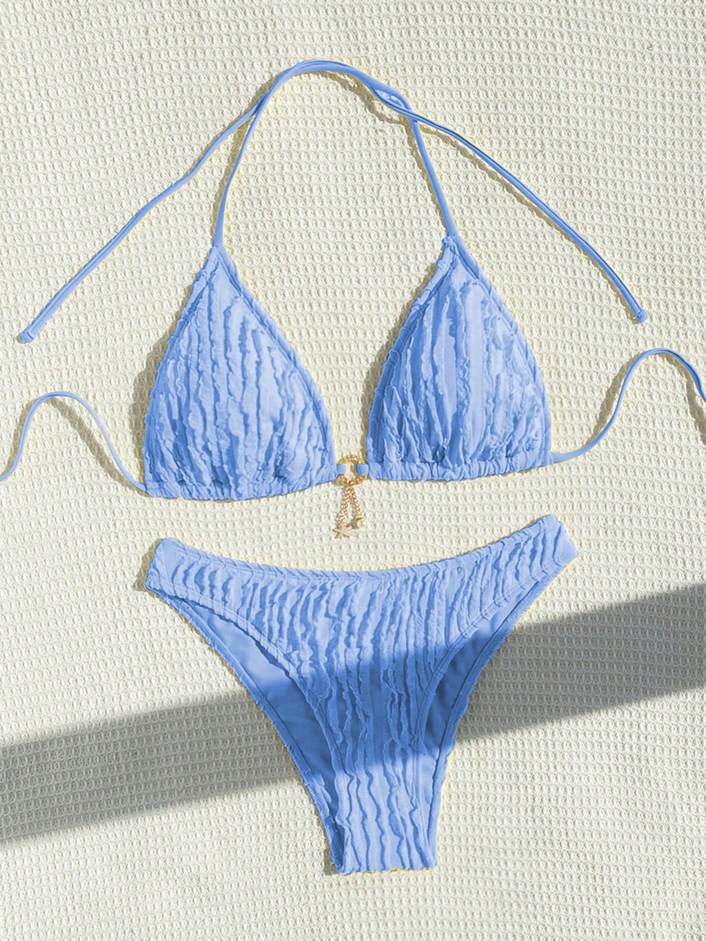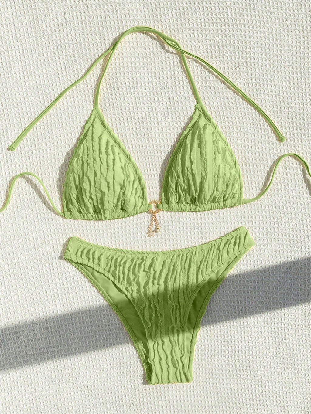 BELLAVOG Women's Summer Beach Holiday Solid Color Textured Bikini Set