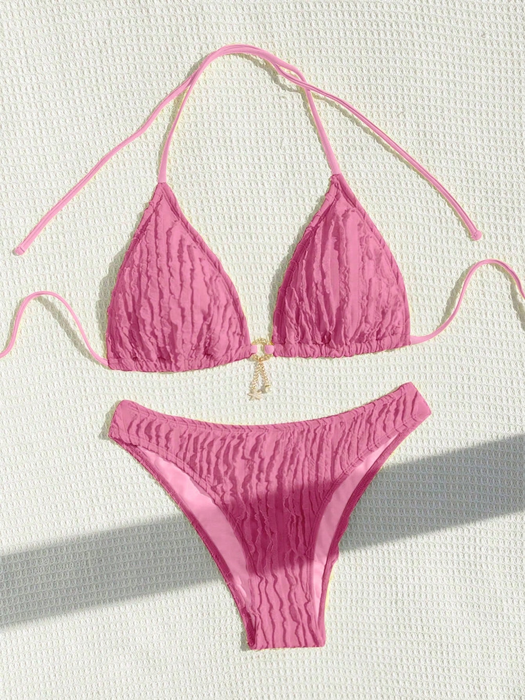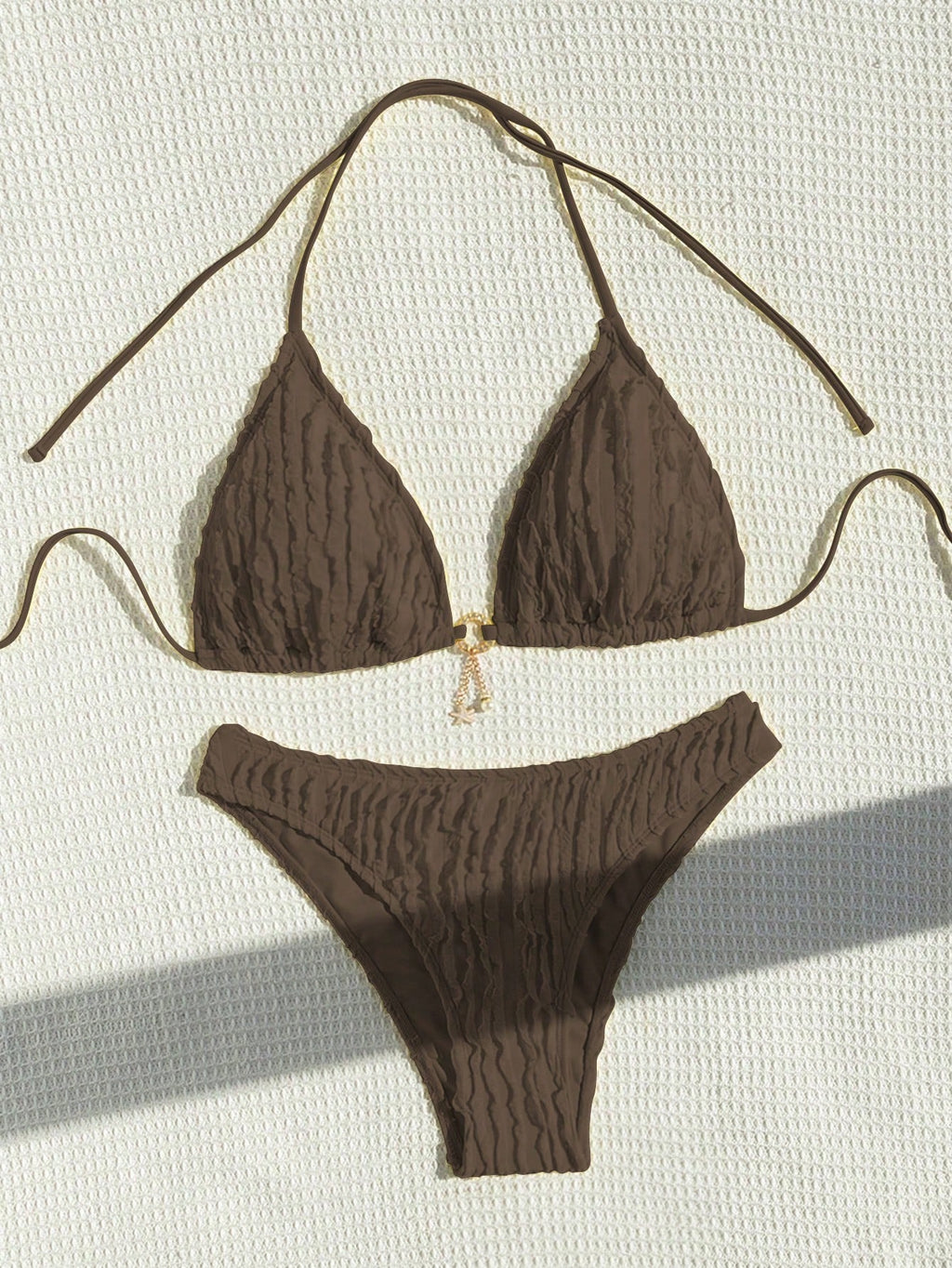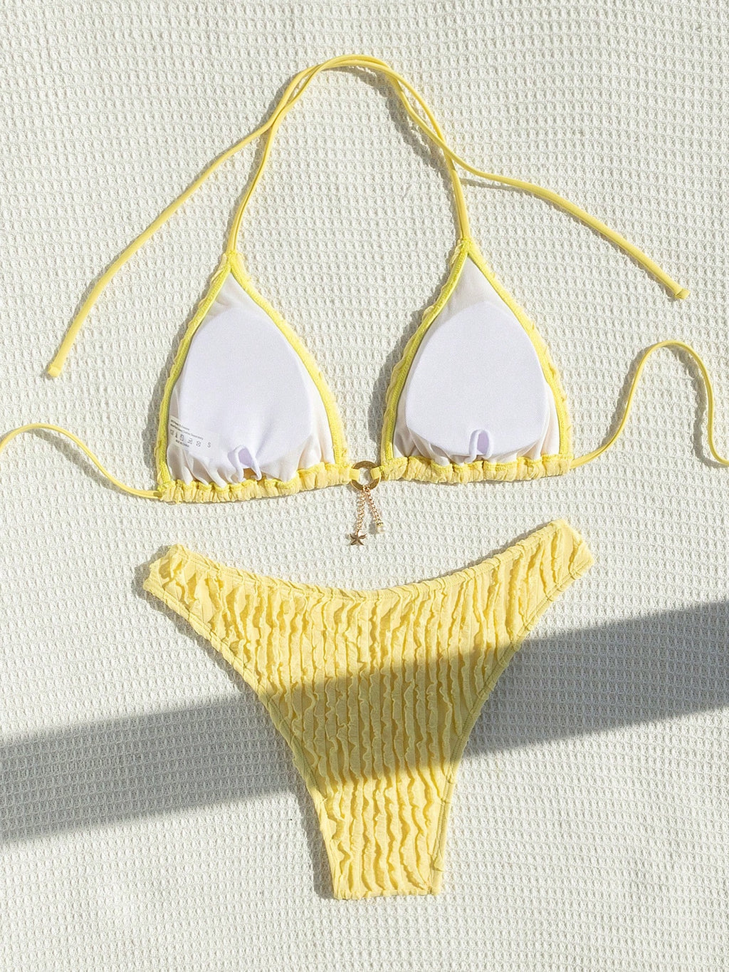 BELLAVOG Women's Summer Beach Holiday Solid Color Textured Bikini Set
