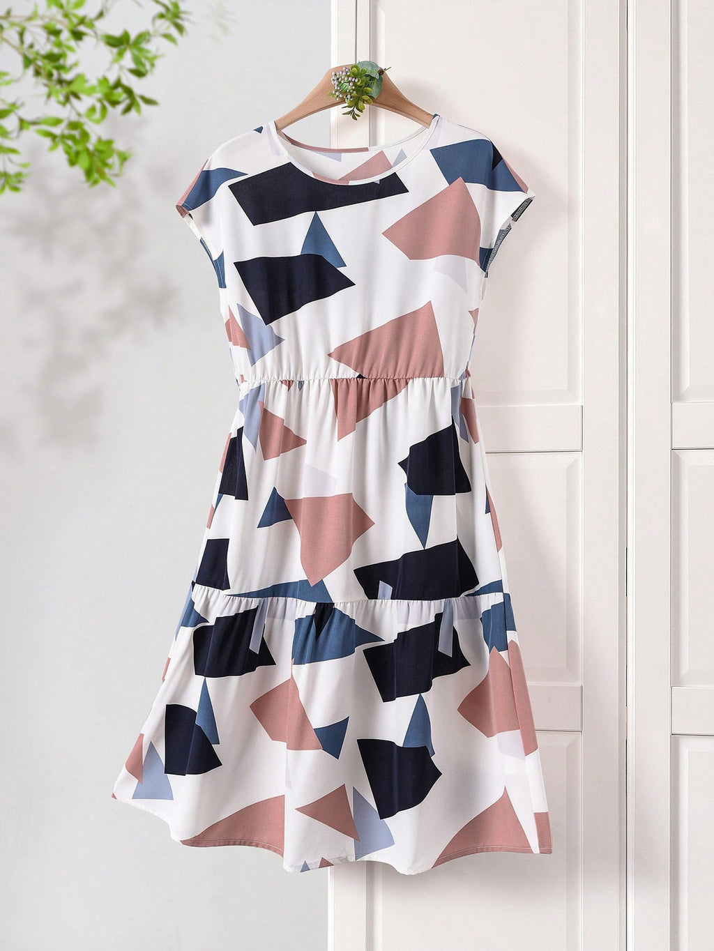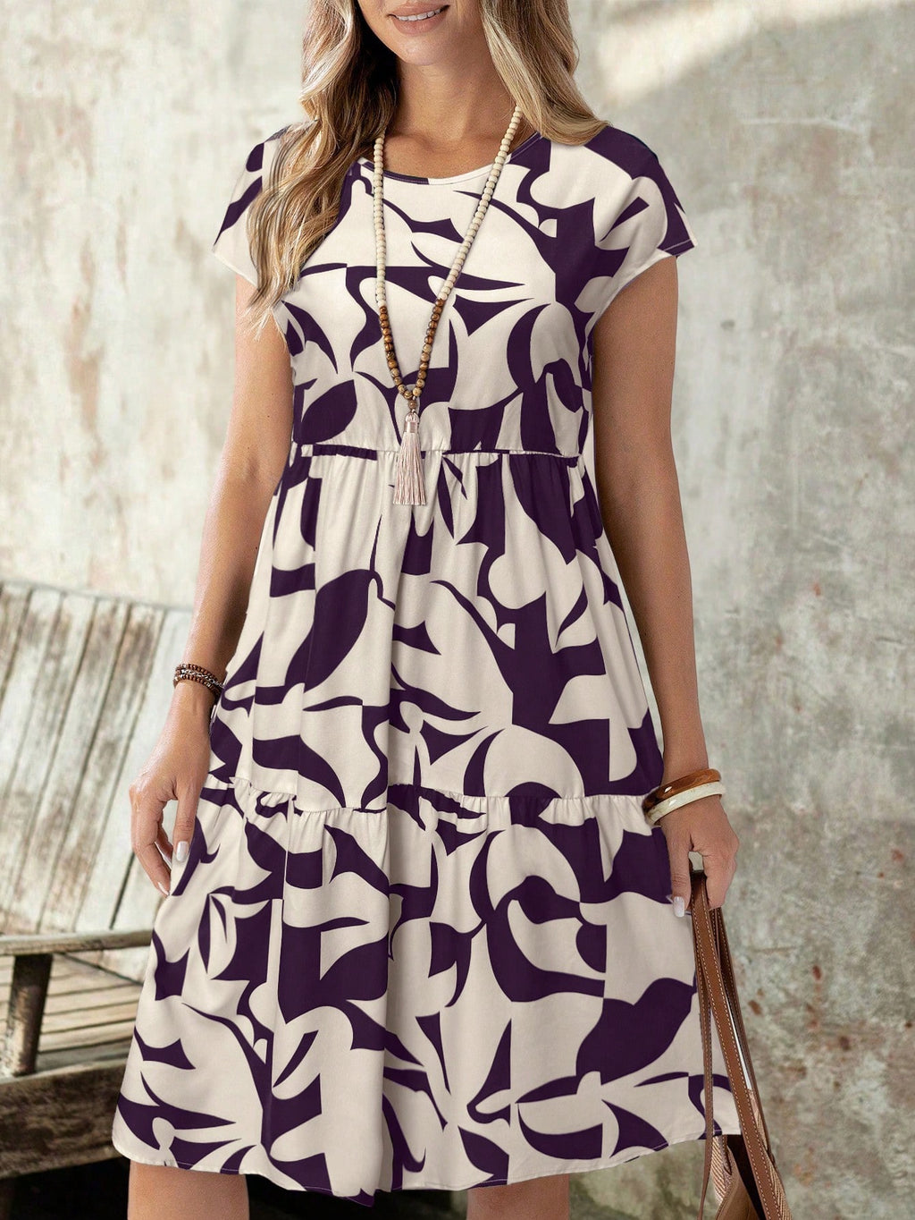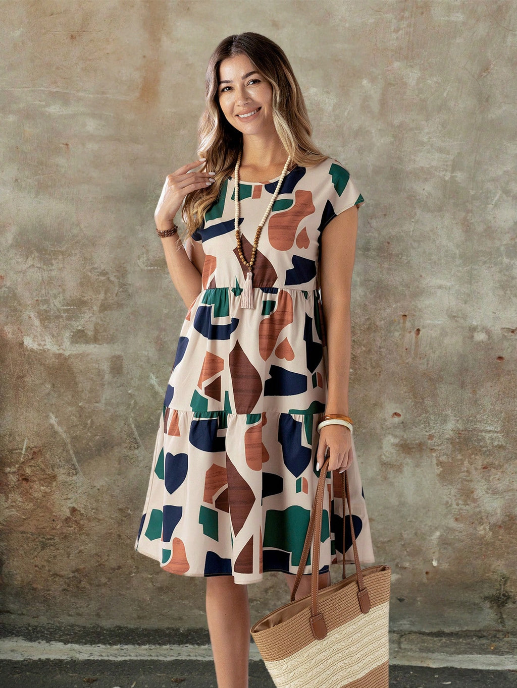 BELLAVOG Women's Summer Geometric Pattern Print Round Neck Short-Sleeve Dress,Summer Dresses For Women