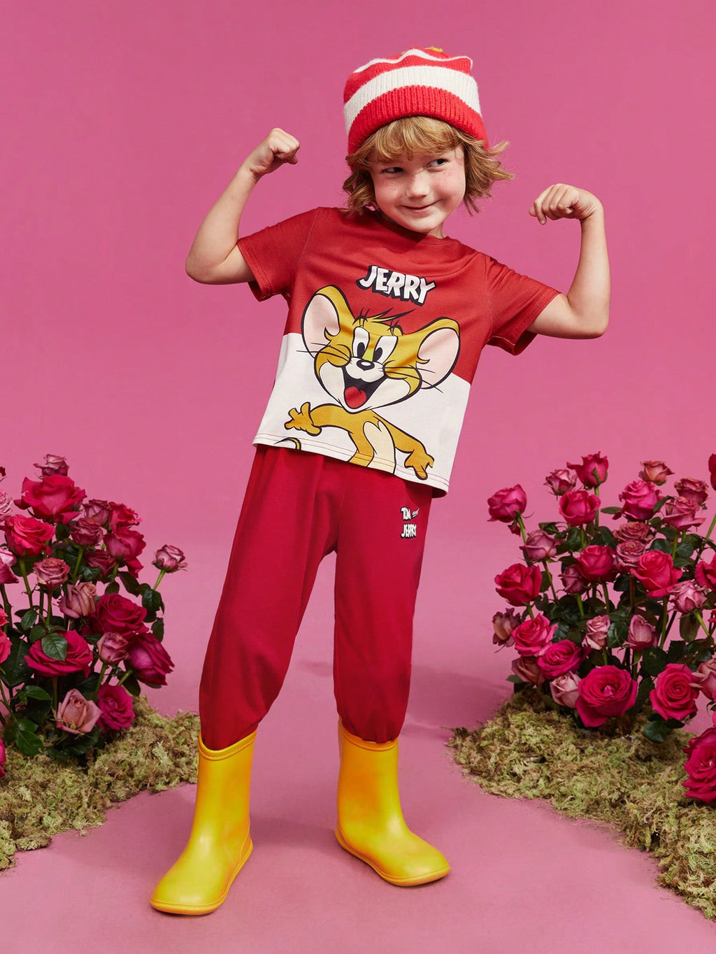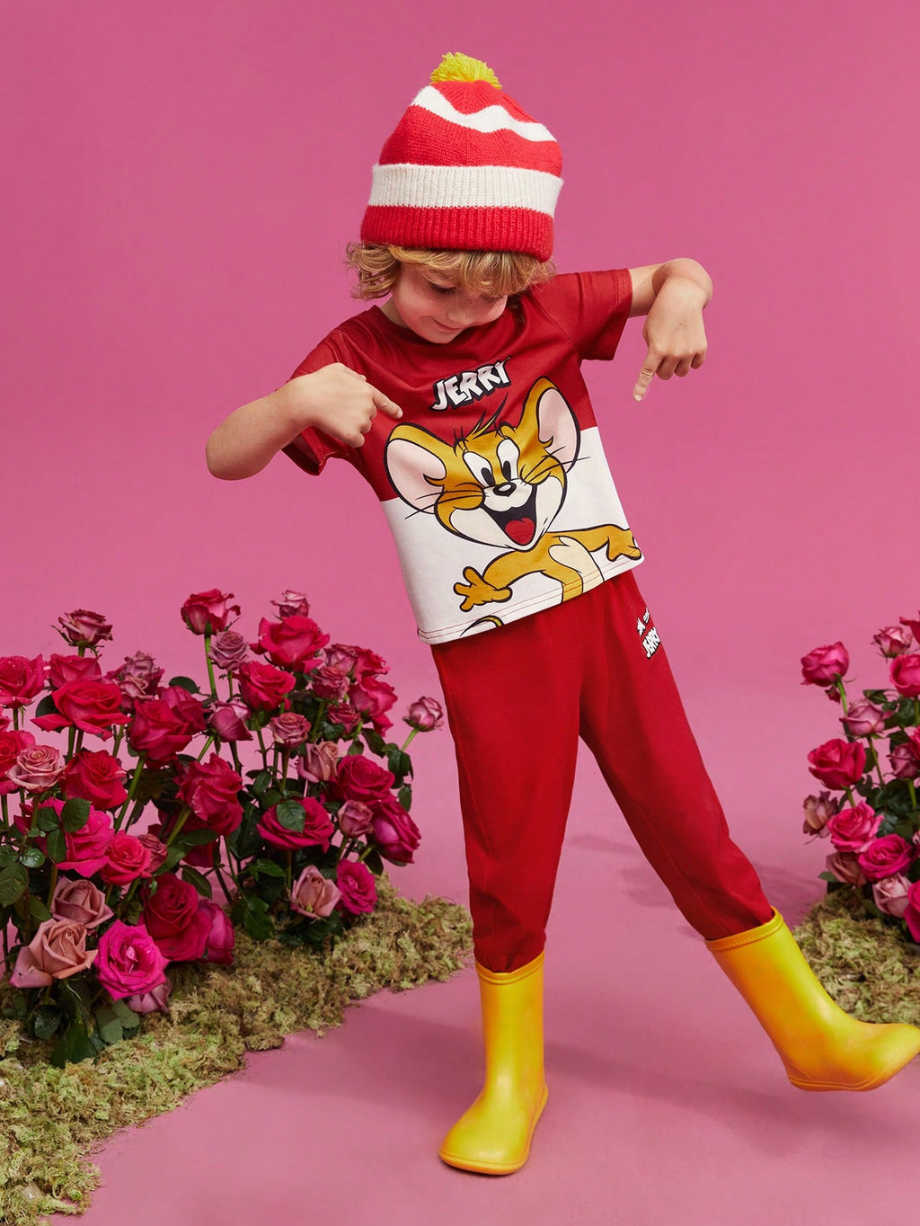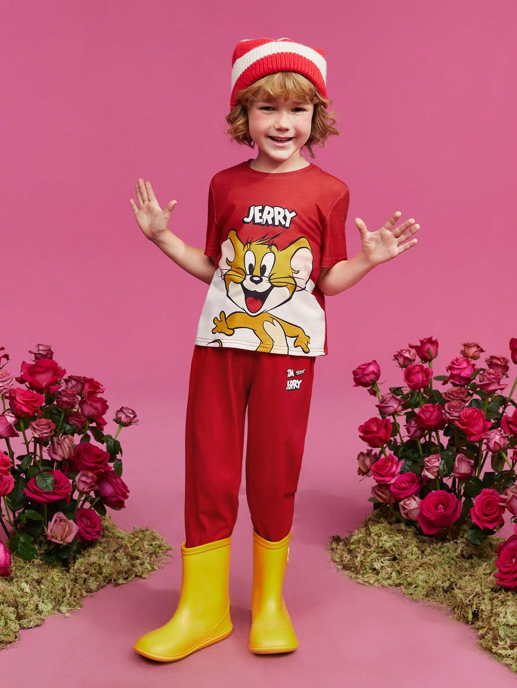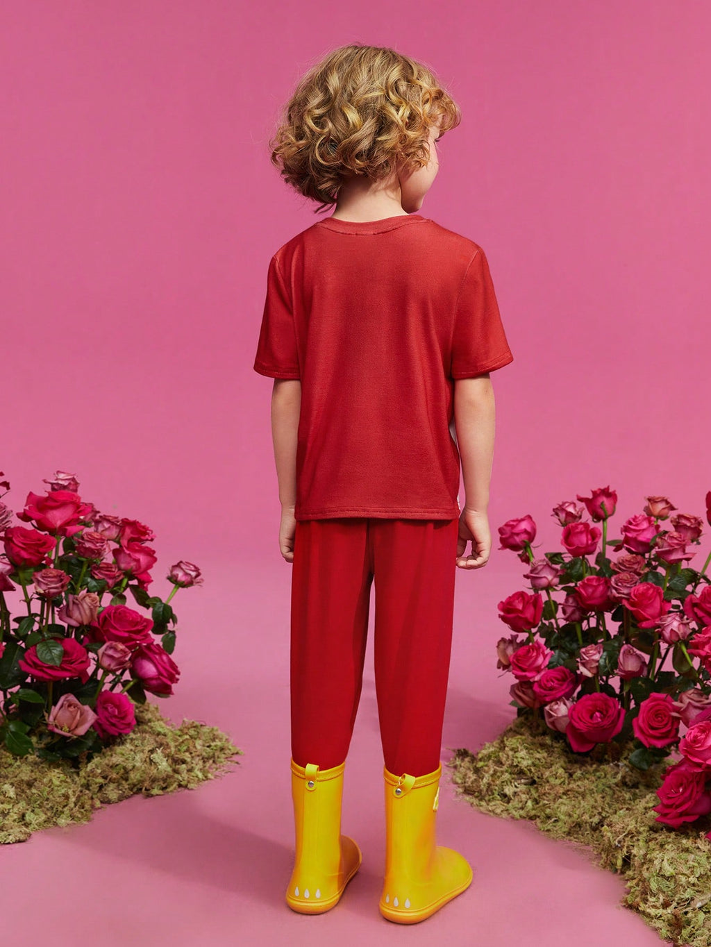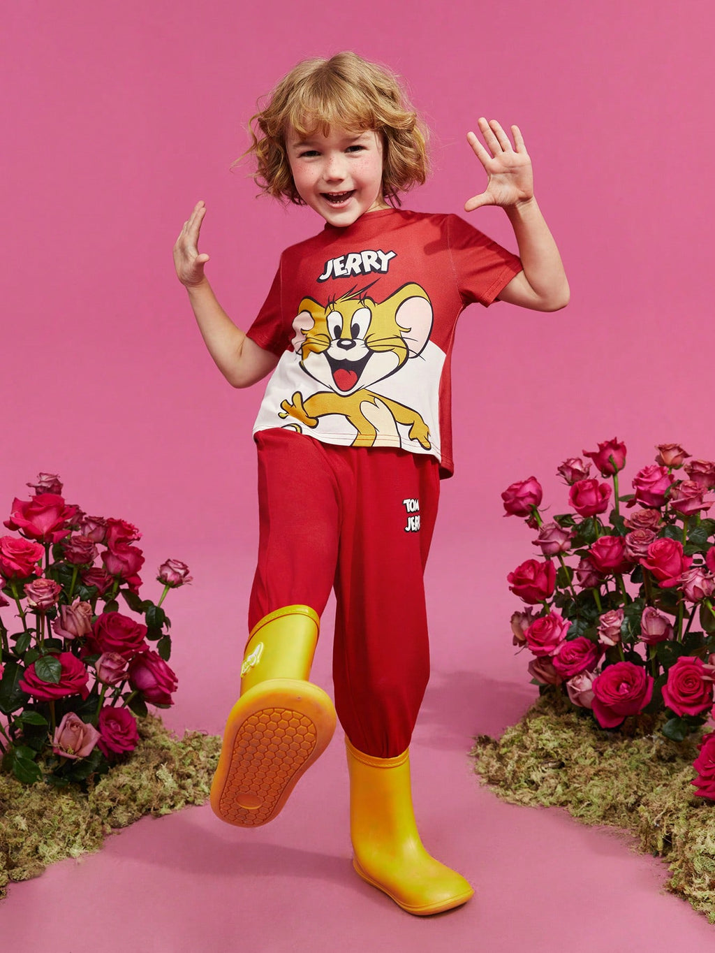 BELLAVOG Young Boy Cartoon And Letter Graphic Tee And Pants Set
