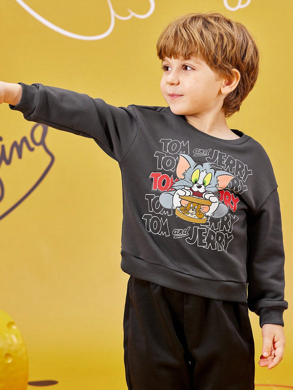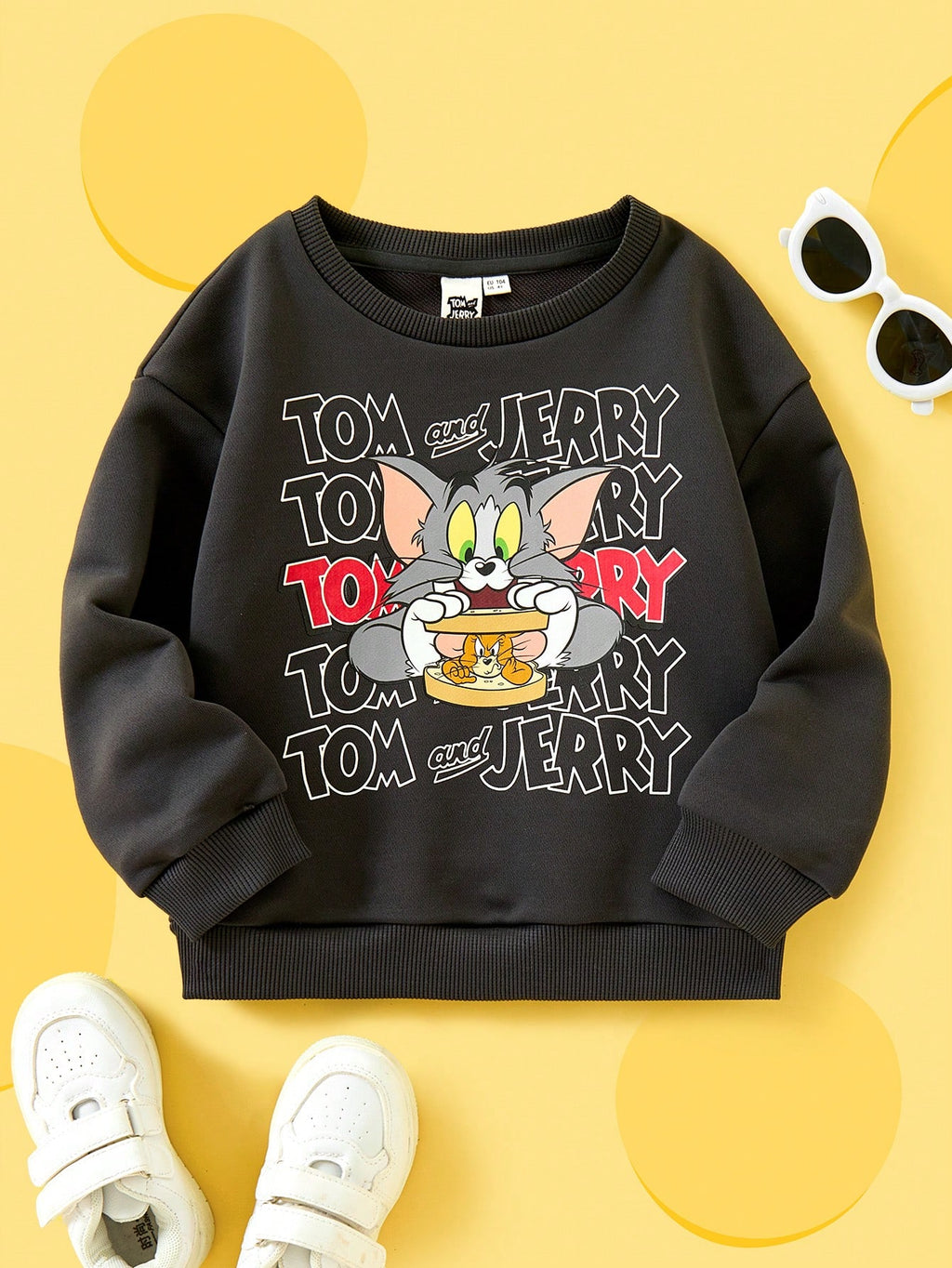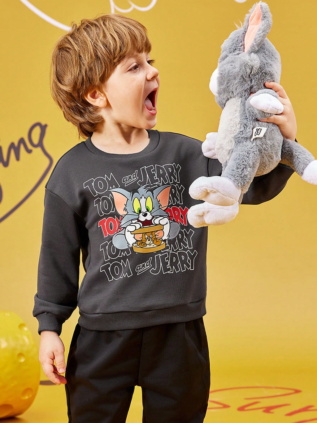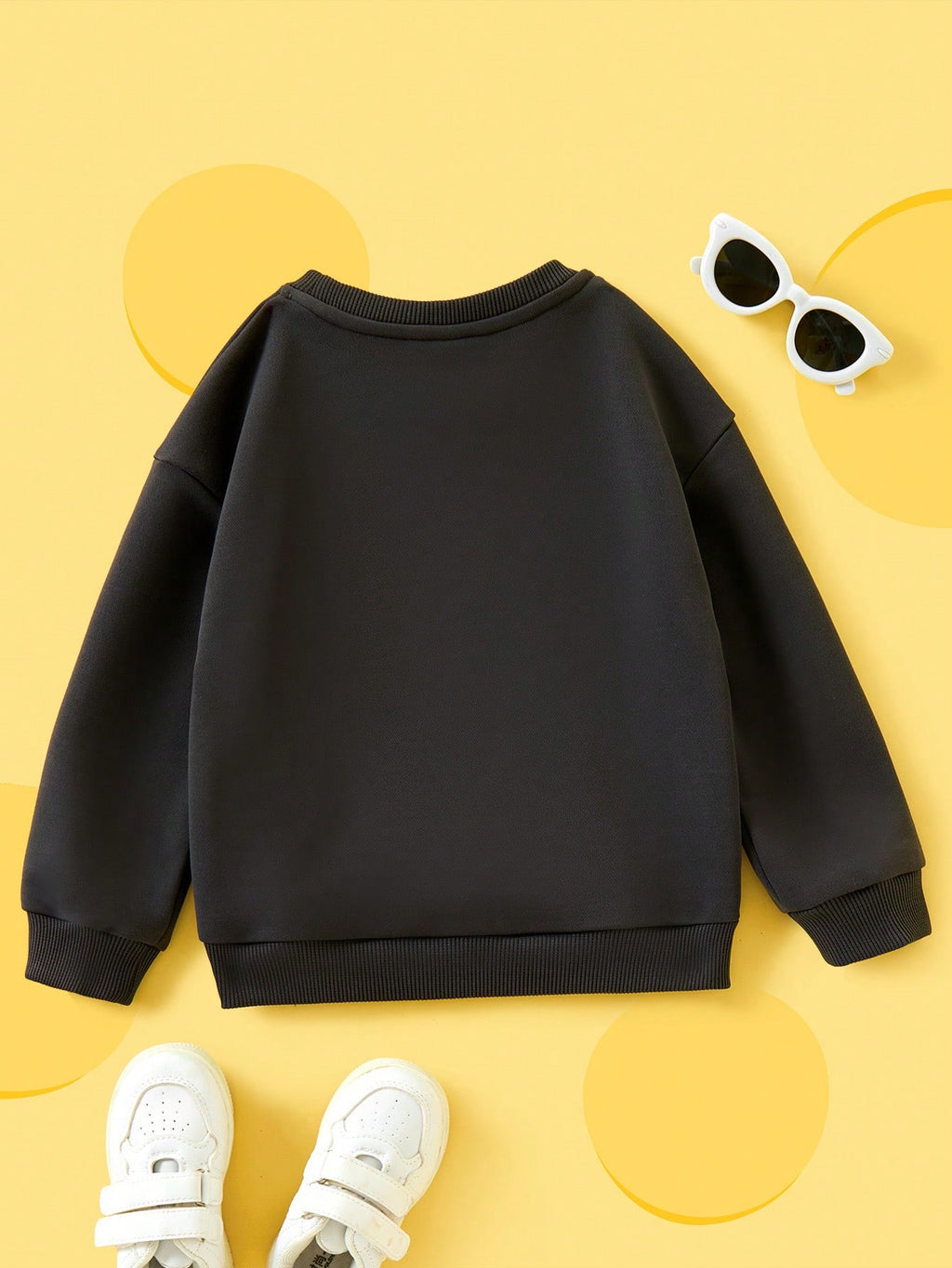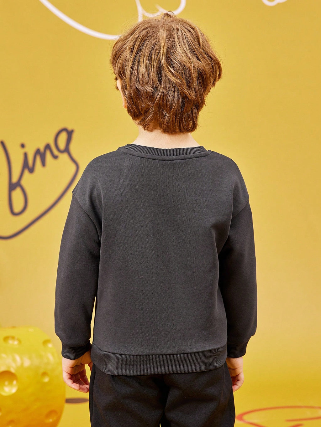 BELLAVOG Young Boy Casual Loose Fit Cartoon And English Letter Graphic Sweatshirt, Grey, Spring/Autumn