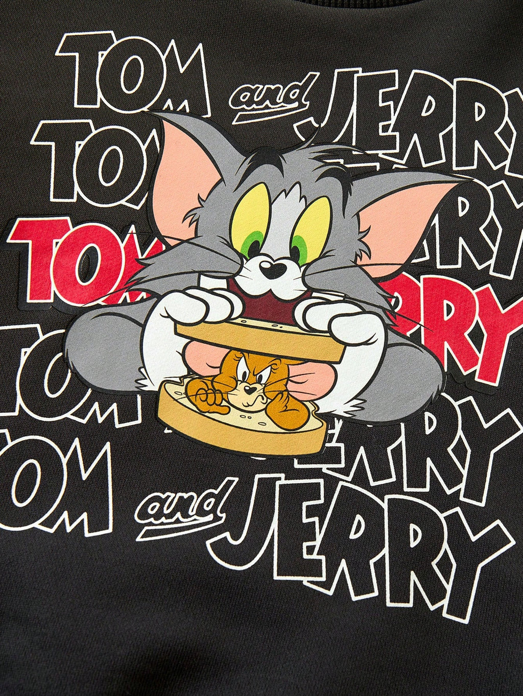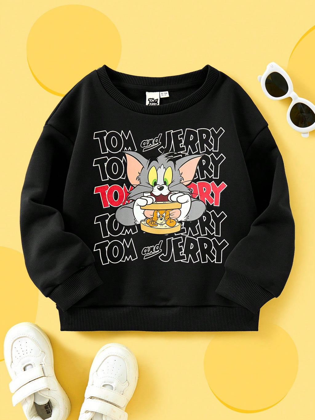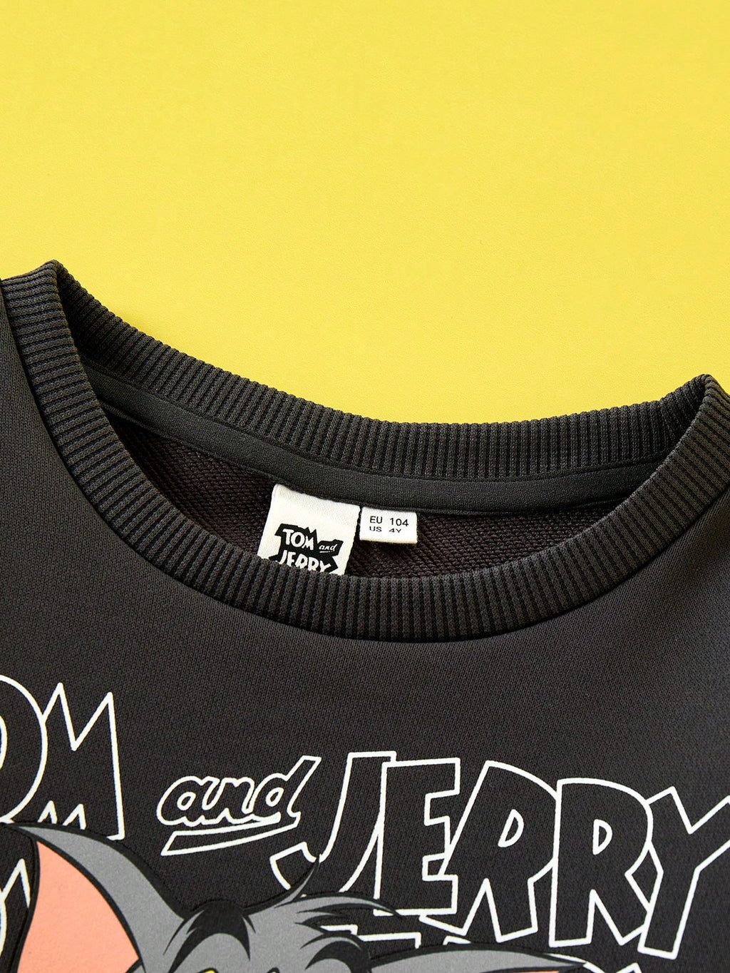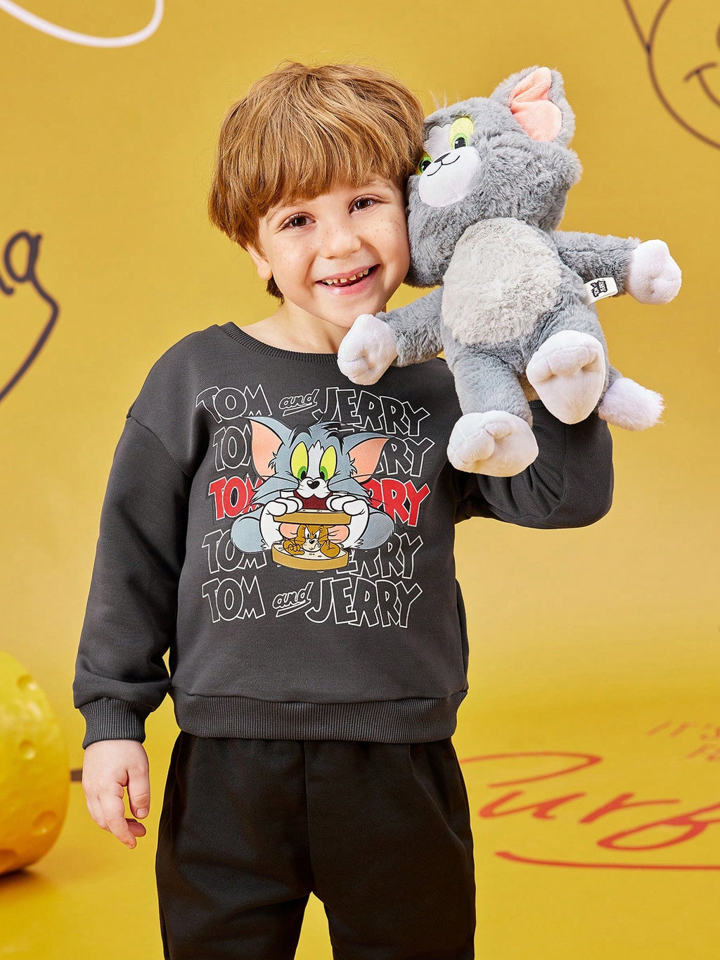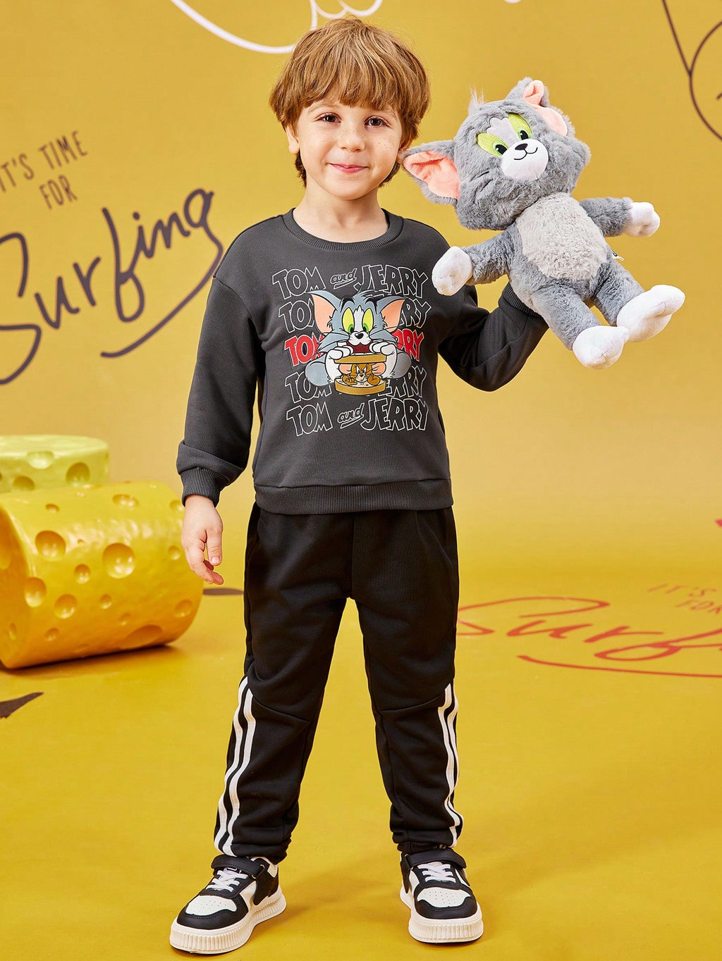 BELLAVOG Young Boy Casual Loose Fit Cartoon And English Letter Graphic Sweatshirt, Grey, Spring/Autumn
