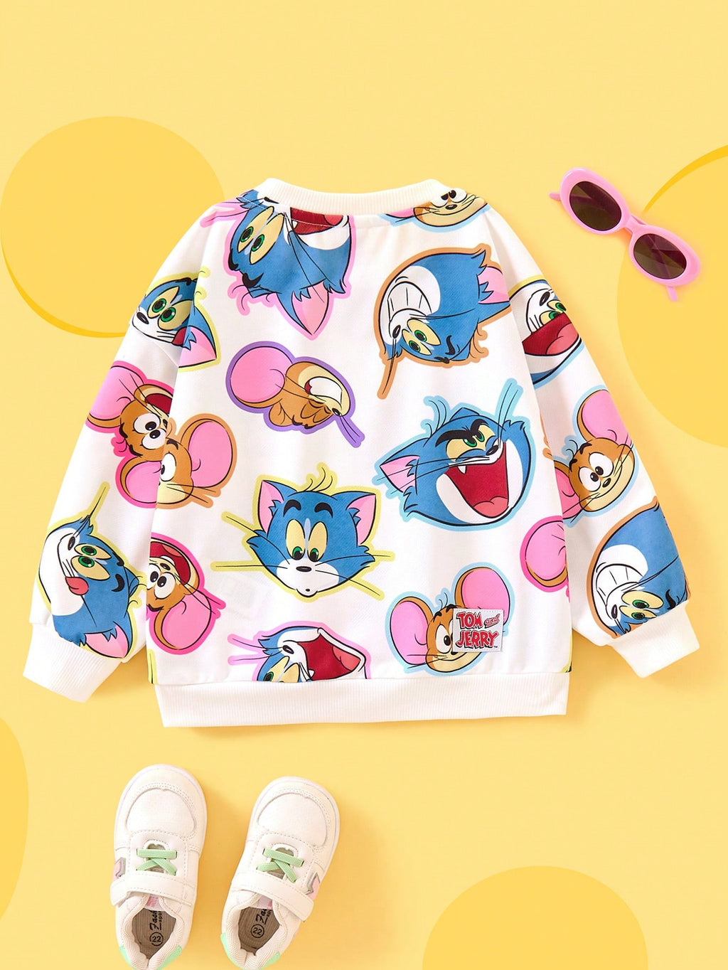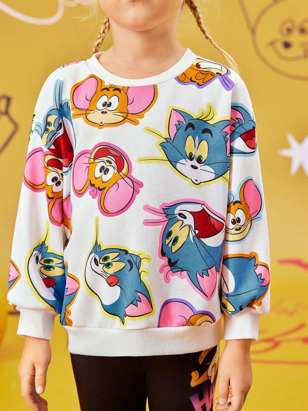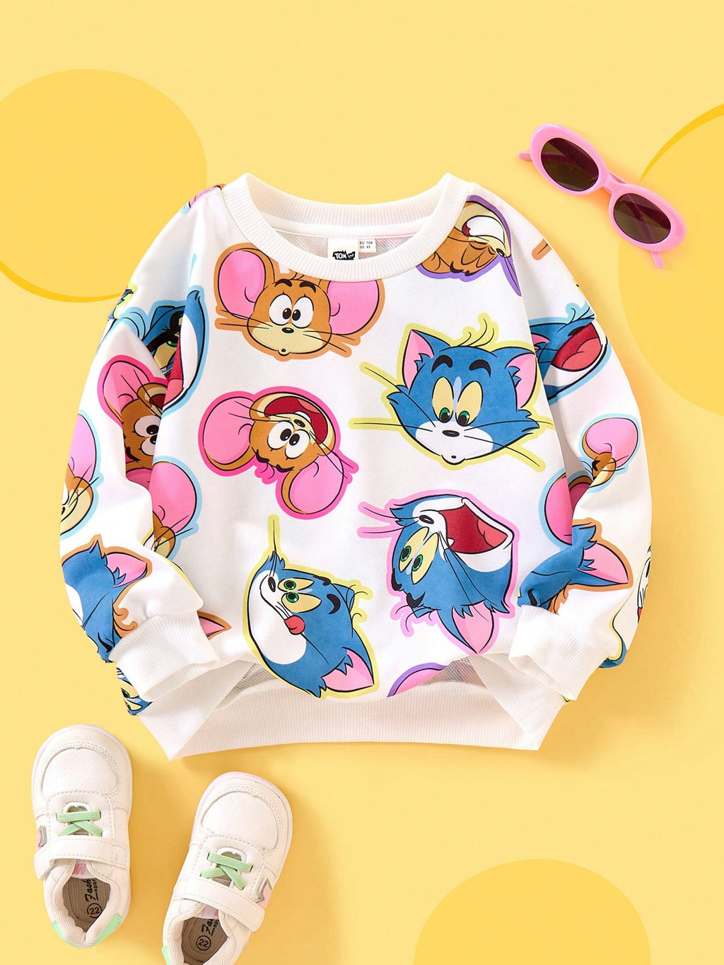 BELLAVOG Young Girl Cartoon Print Casual Cute Round Neck White Sweatshirt