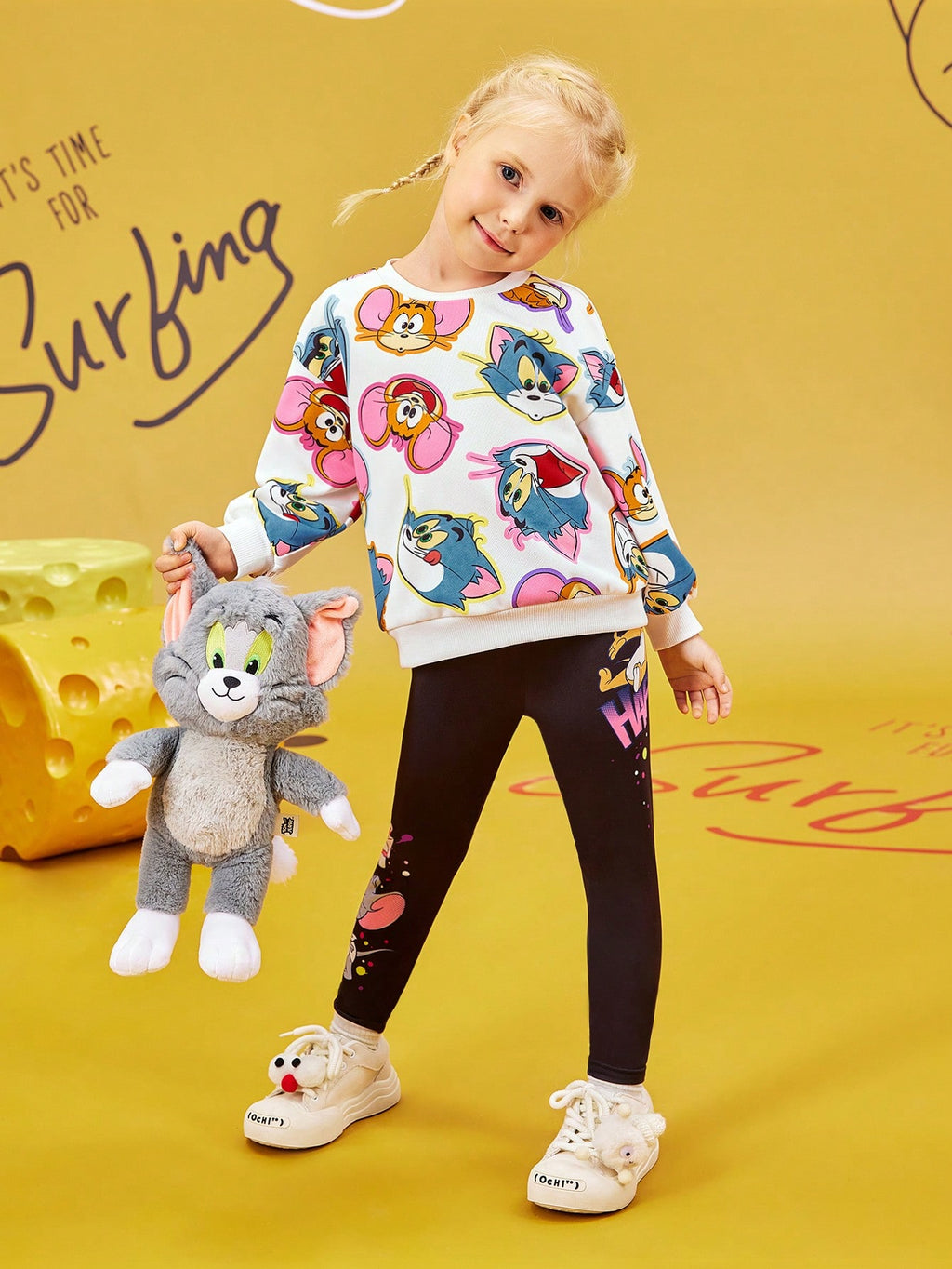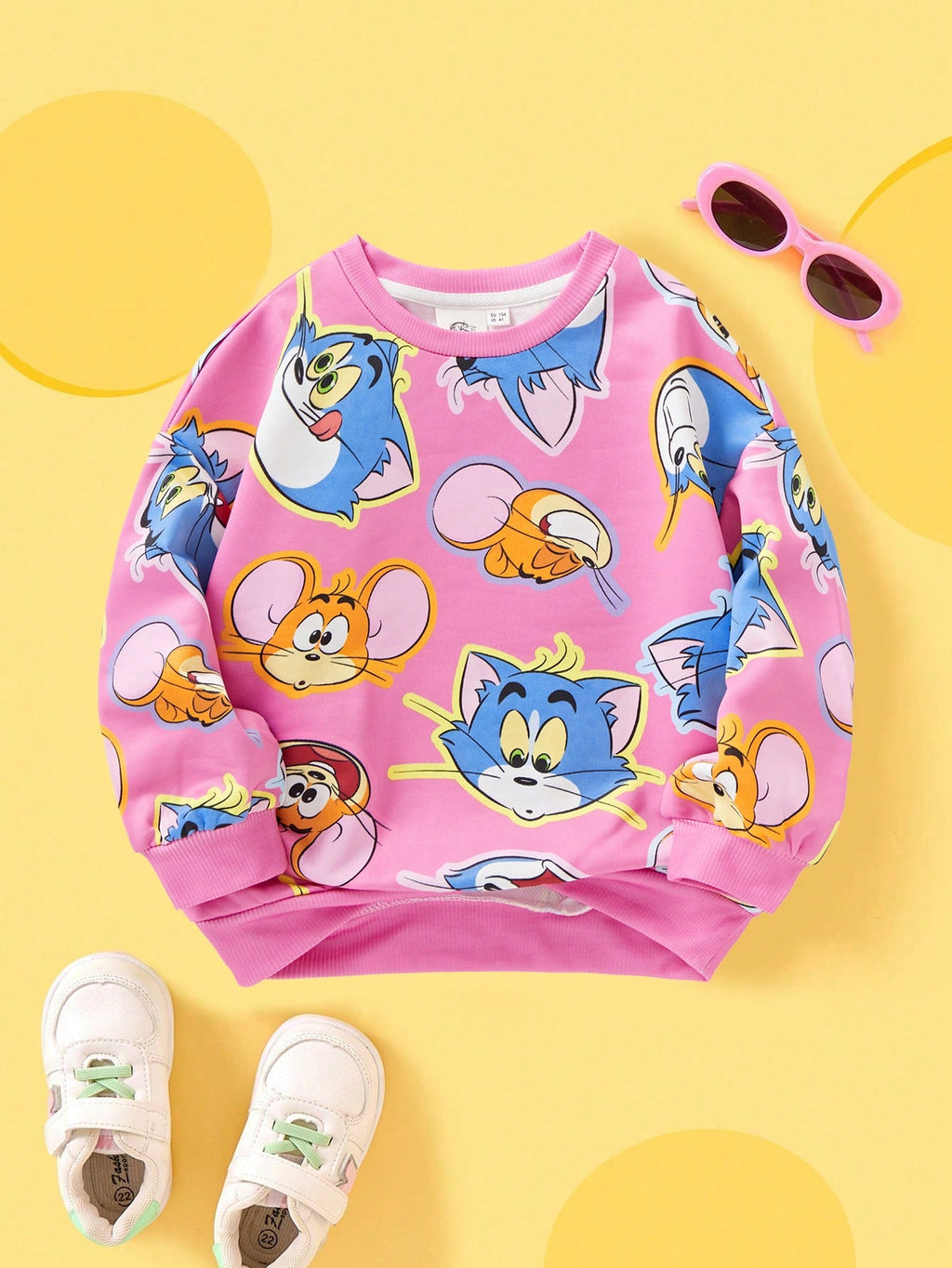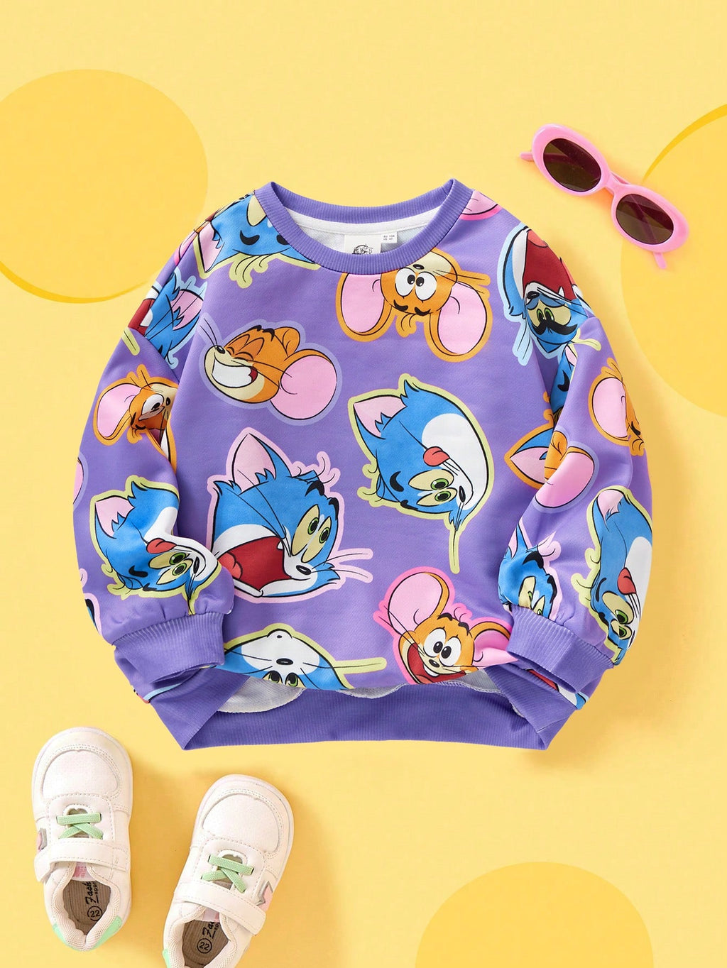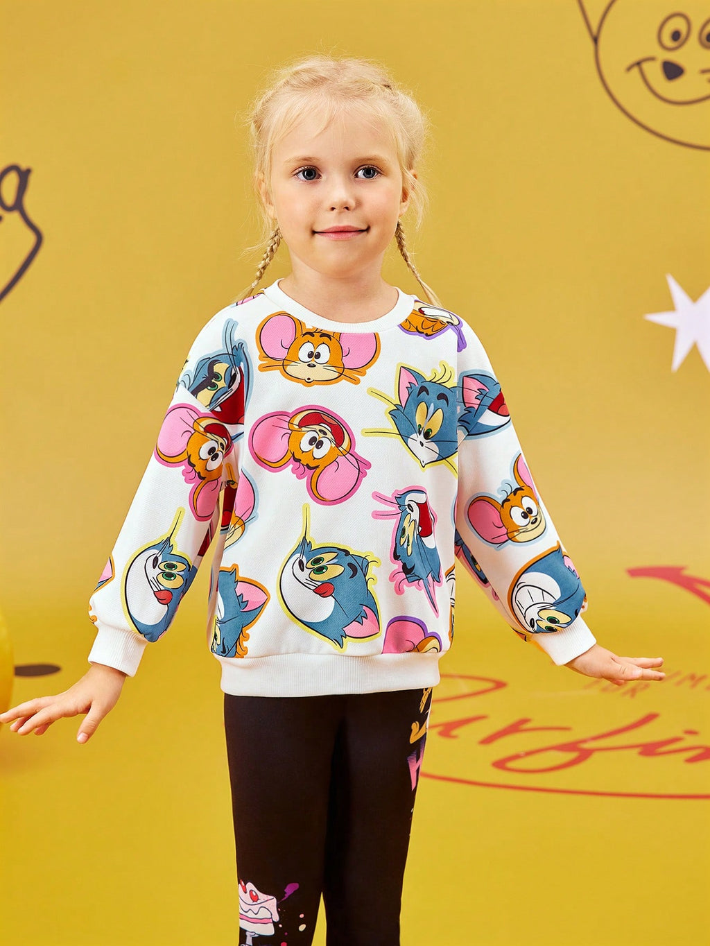 BELLAVOG Young Girl Cartoon Print Casual Cute Round Neck White Sweatshirt