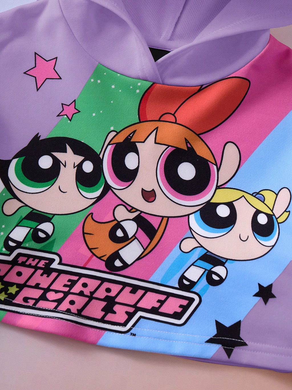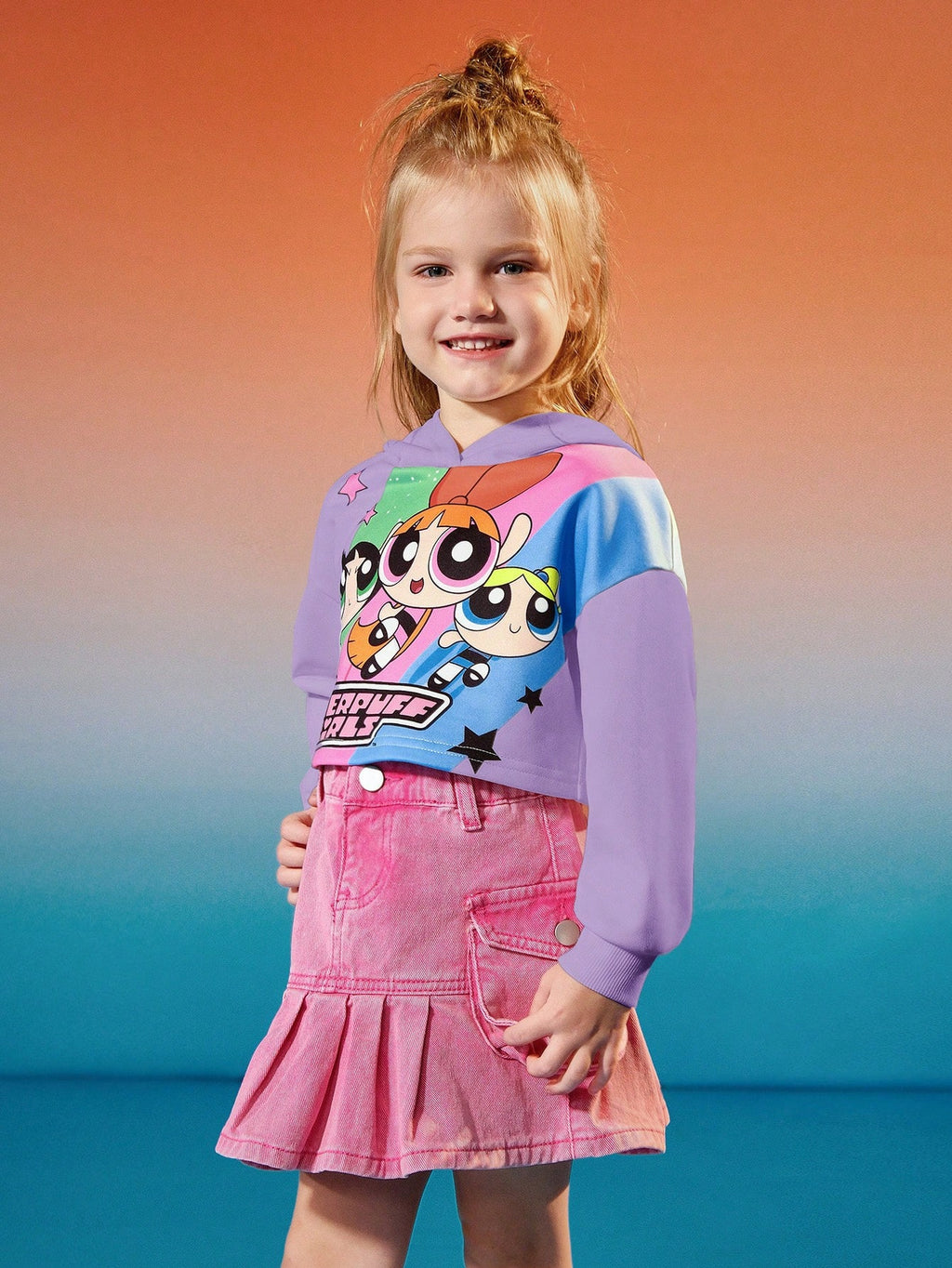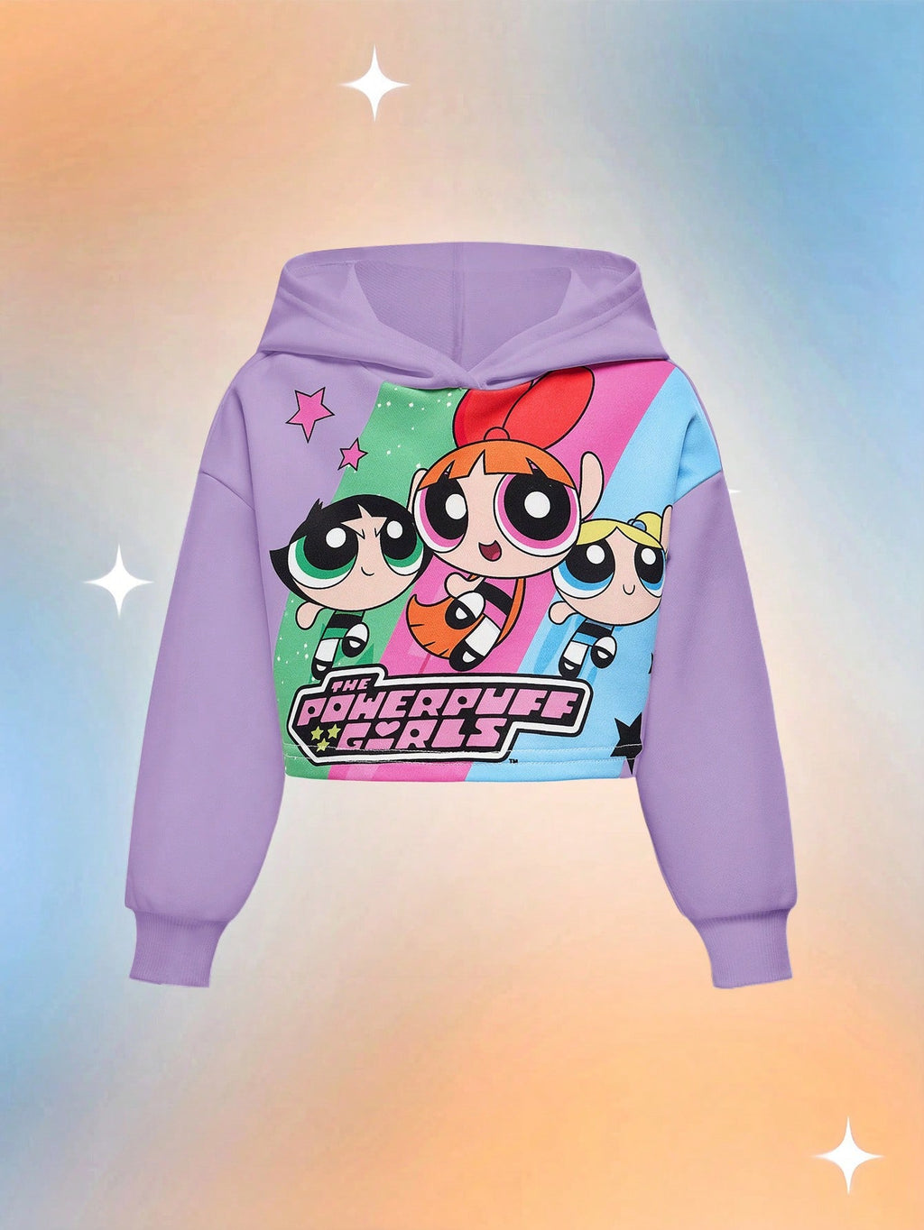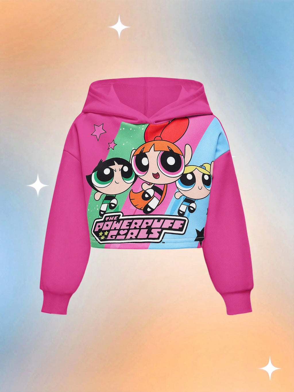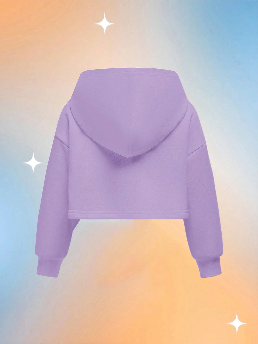 BELLAVOG Young Girl Cartoon Print Casual Loose Dropped Shoulder Crop Hoodie,For Fall And Winter