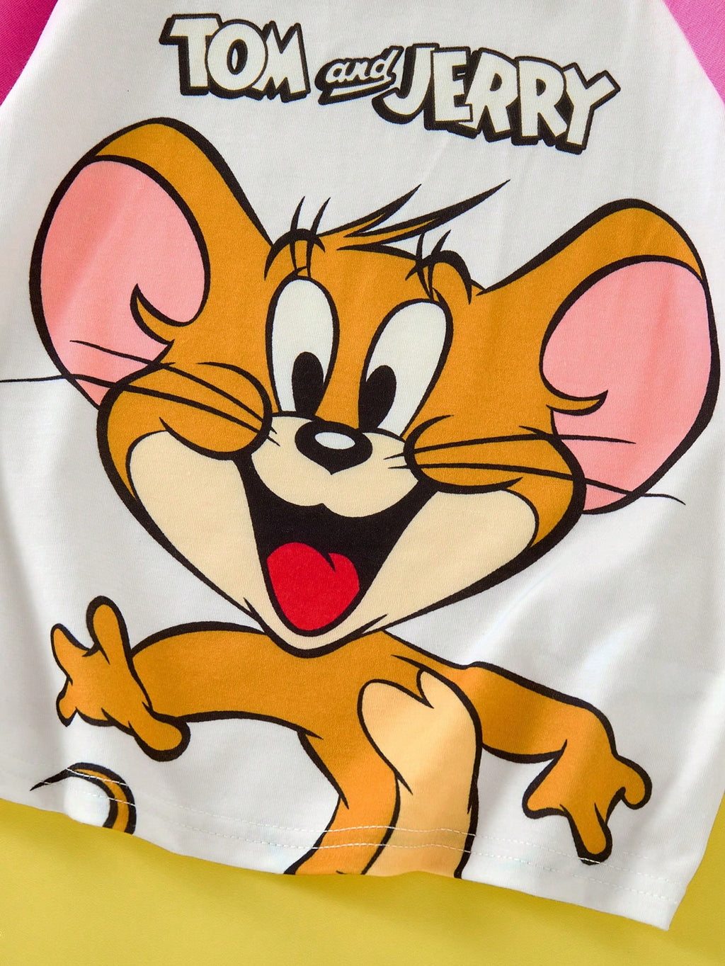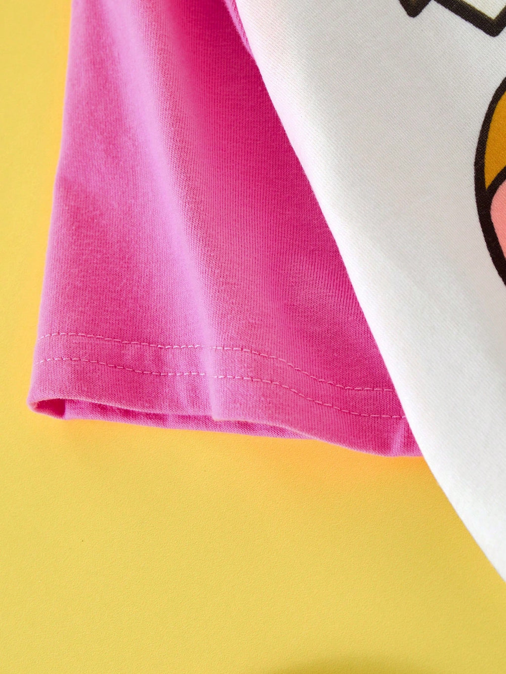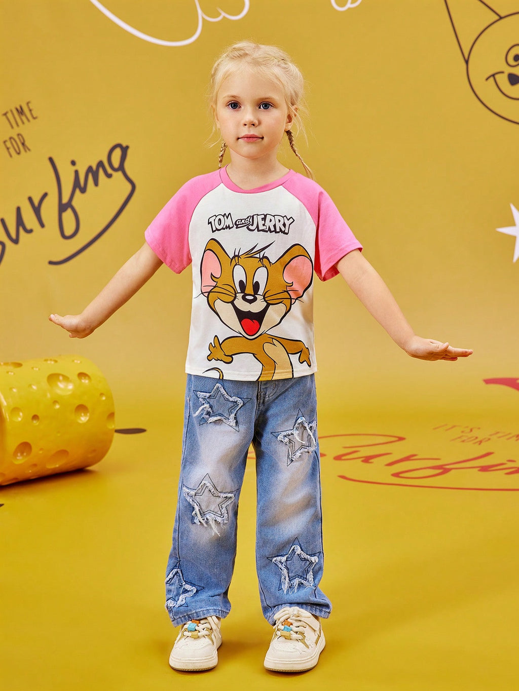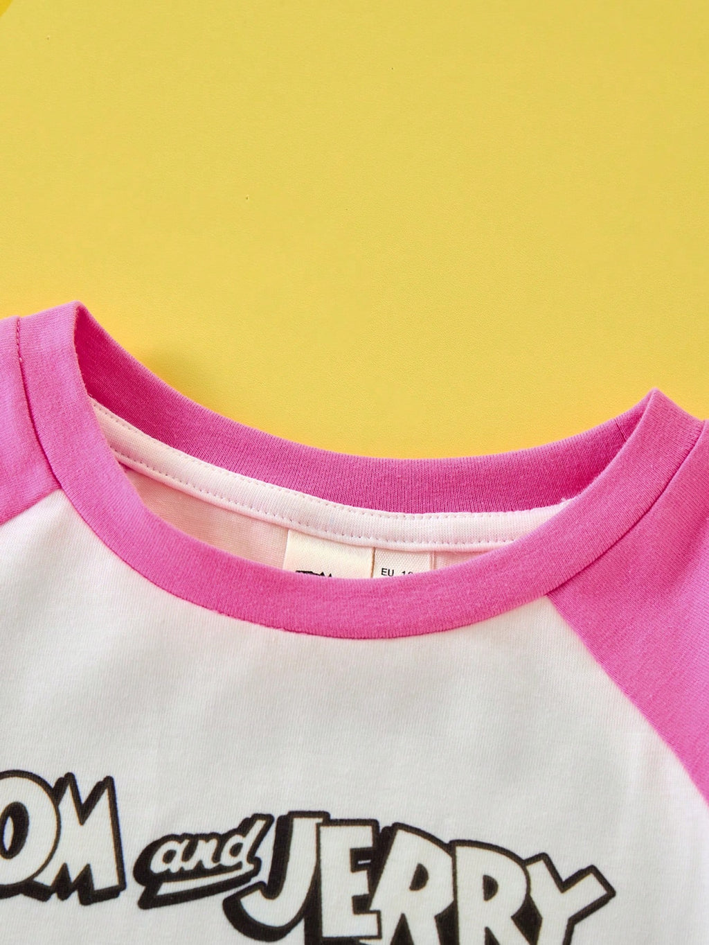 BELLAVOG Young Girl Cartoon Print Contrast Raglan Sleeve Casual T-Shirt, Summer Graphic Tee