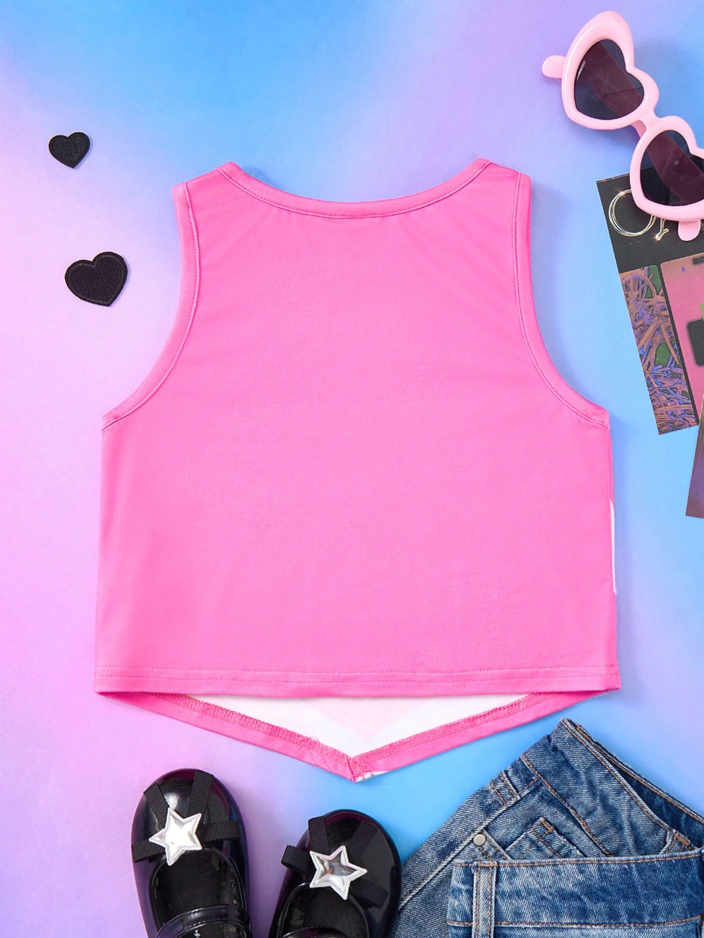 BELLAVOG Young Girls Y2K Cartoon Sweet Casual Pink Love Heart Print Camisole Tops Suitable For Spring And Summer
