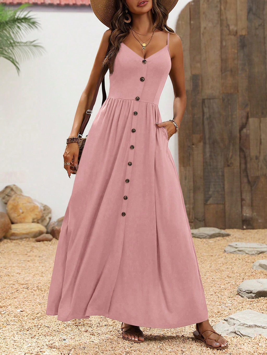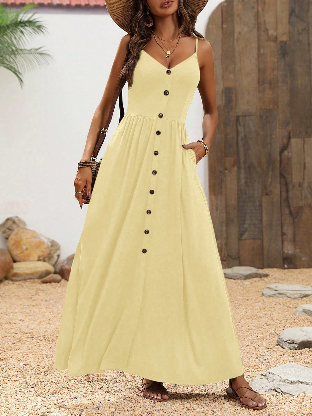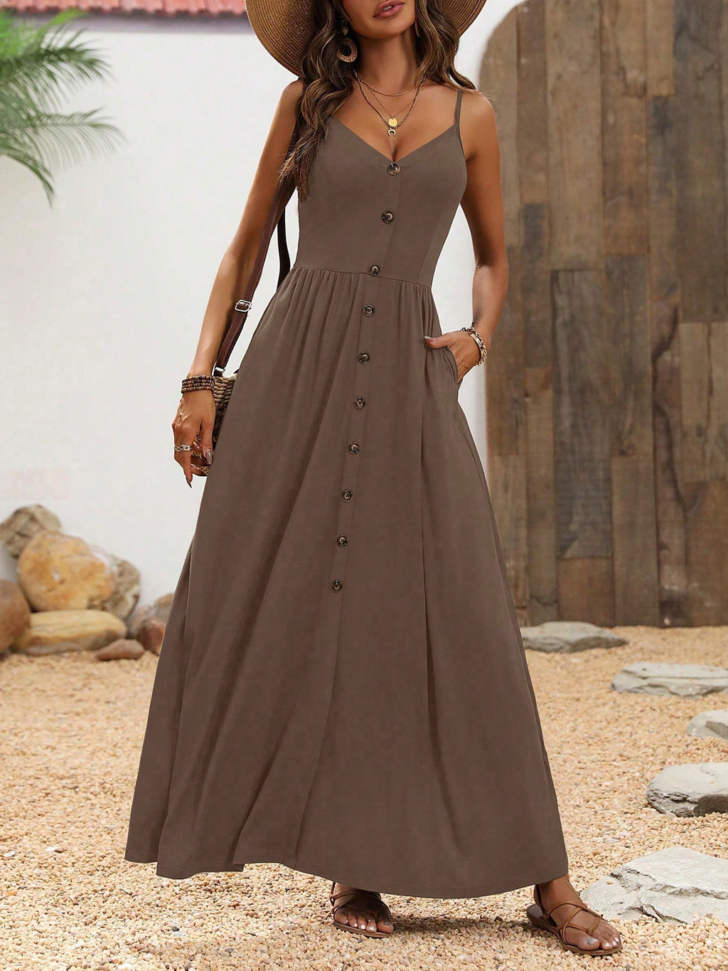 BELLAVOG Cami V-Neck Casual Dress With Oversized A-Line Beach Style Maxi Vacation Beach Outfits Women