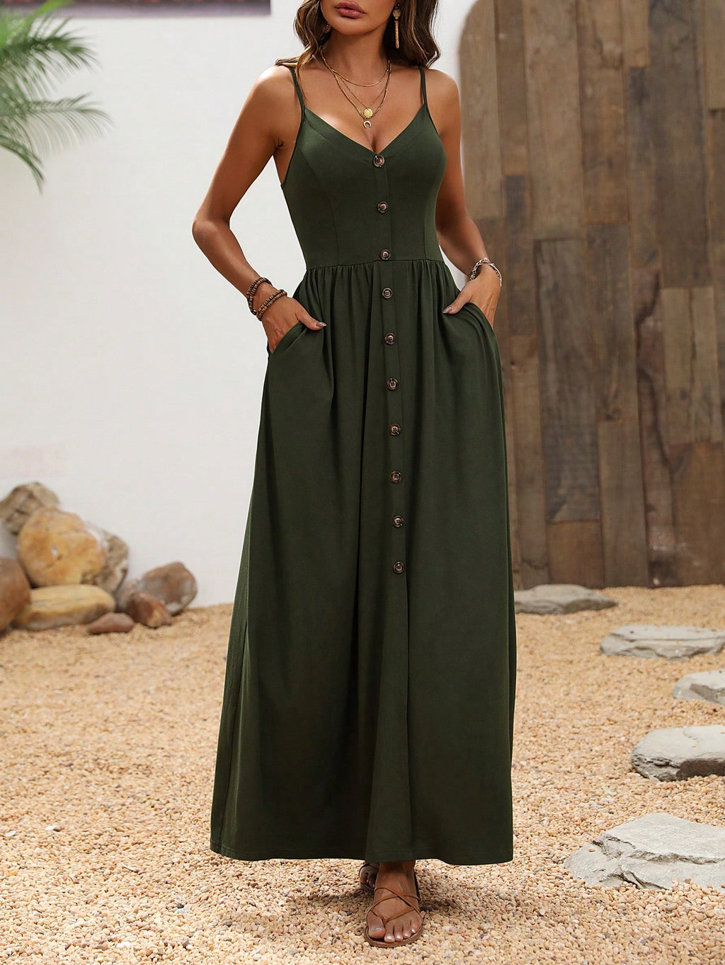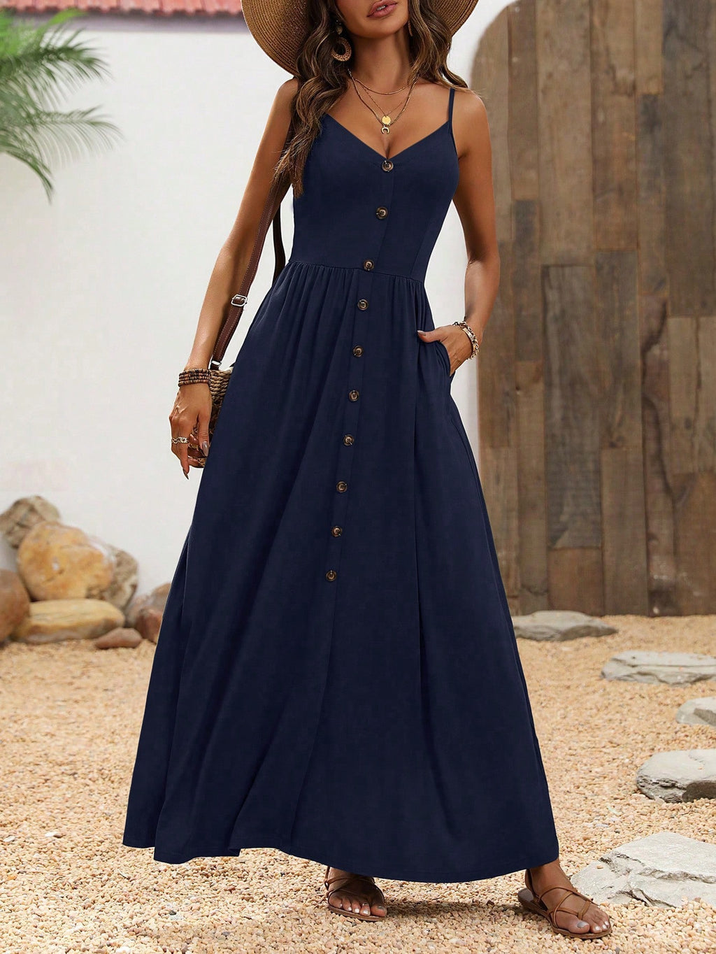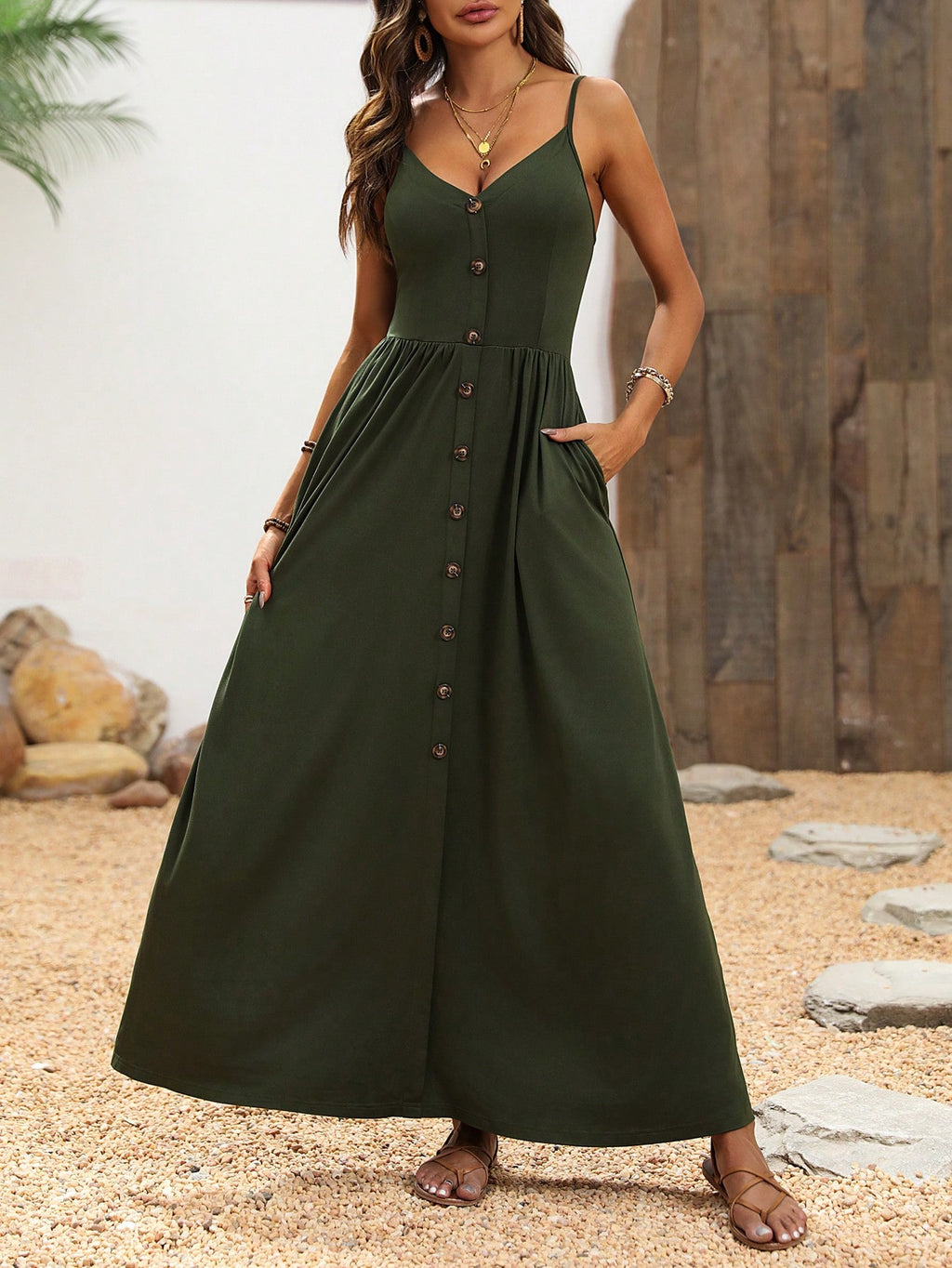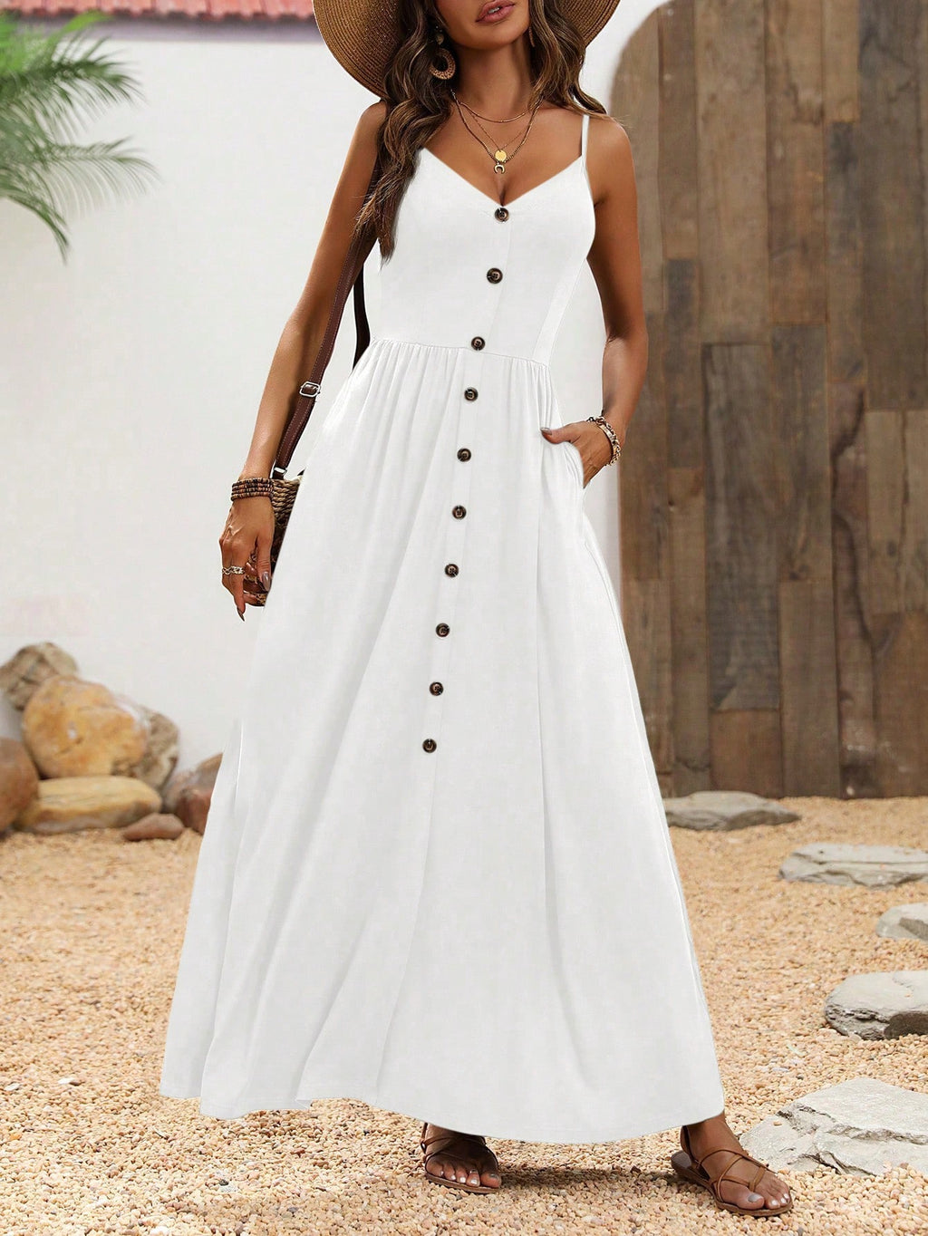 BELLAVOG Cami V-Neck Casual Dress With Oversized A-Line Beach Style Maxi Vacation Beach Outfits Women