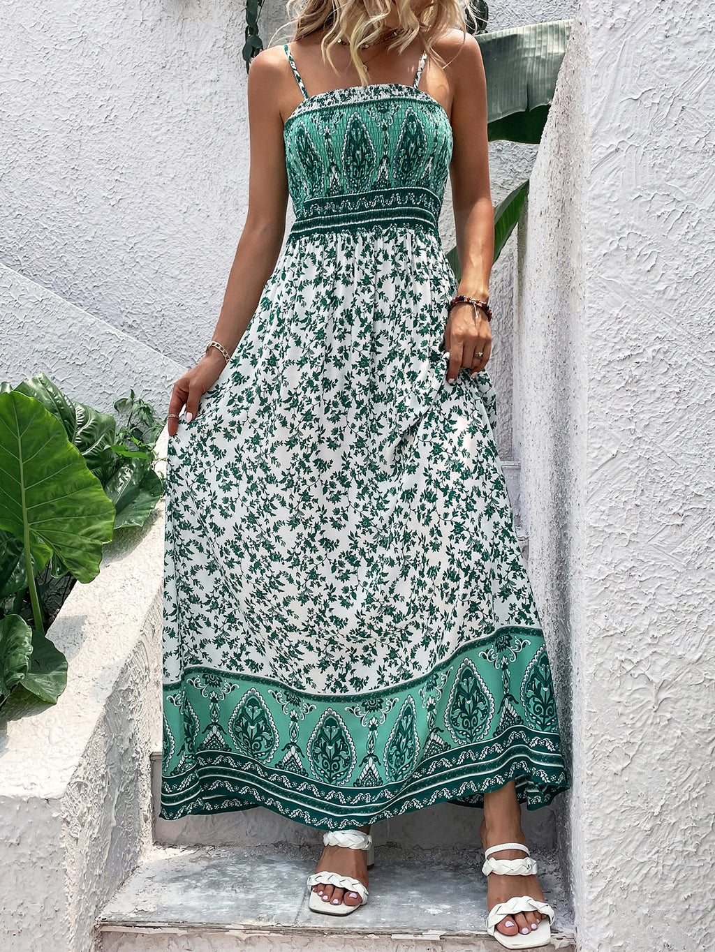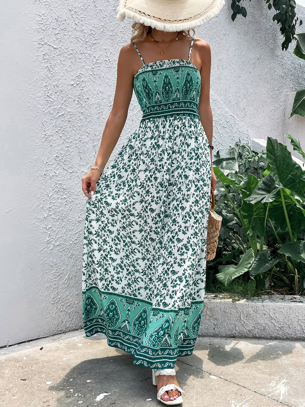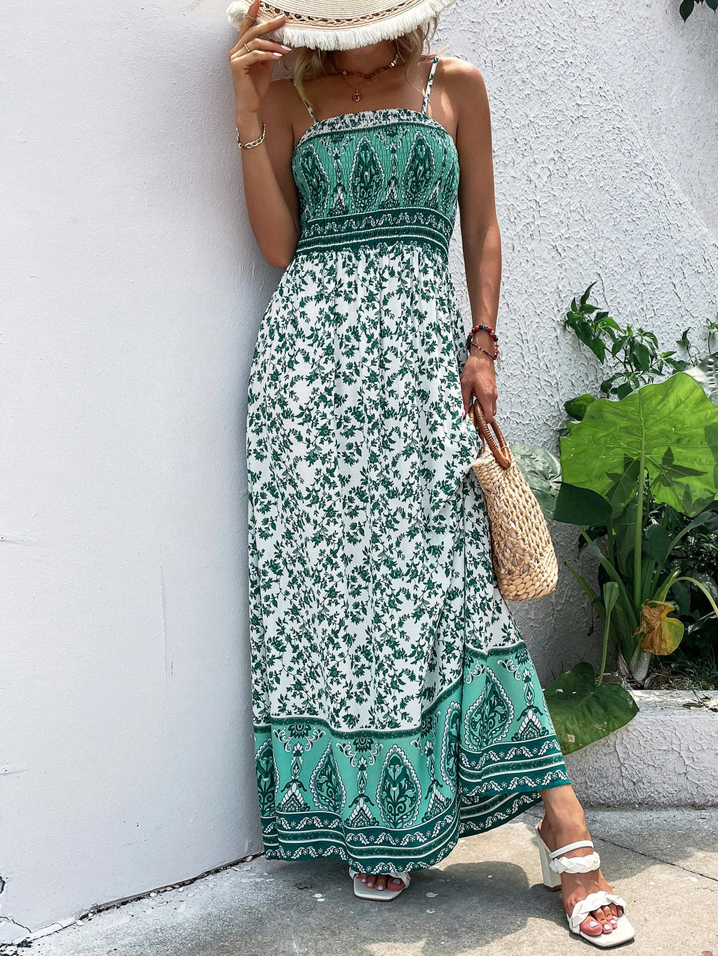 BELLAVOG Floral Print Shirred Maxi Cami Dress Vacation Beach Outfits Women