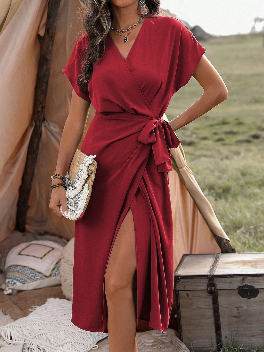 MIU AZRA Elegantna mini suknja s perlama u crvenom tweedu za žene