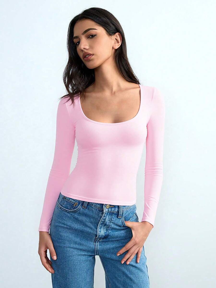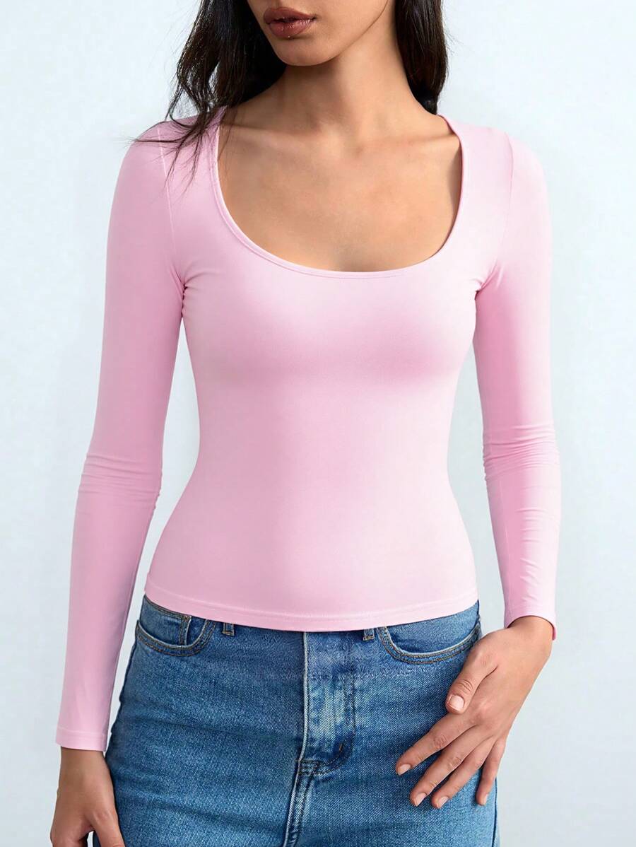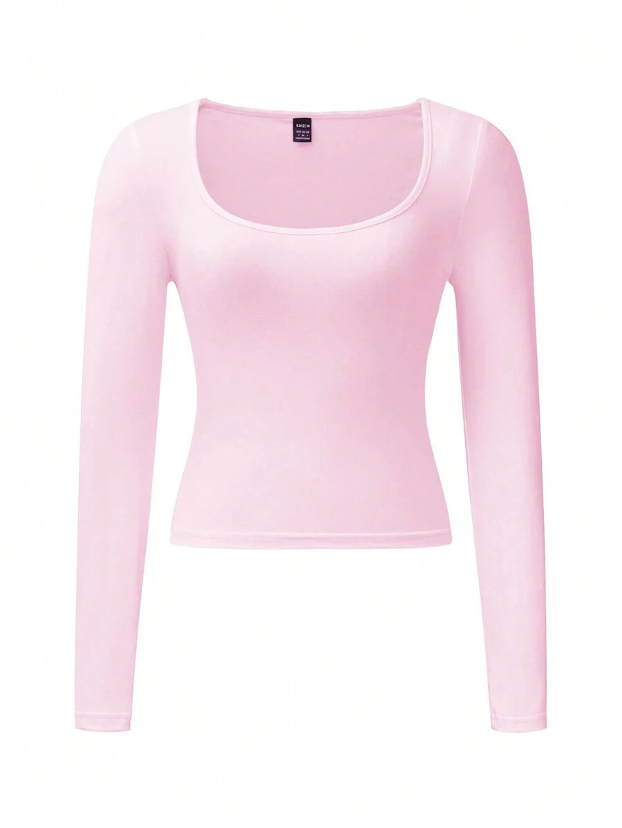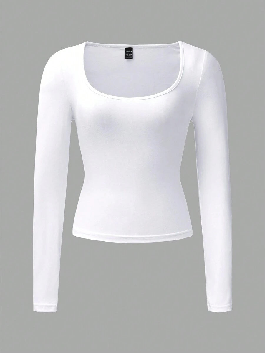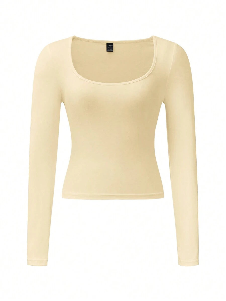 Chiquease Autumn/Winter Casual Knit U-Neck Long Sleeve Slim Fit T-Shirt Fall Cloth For Women