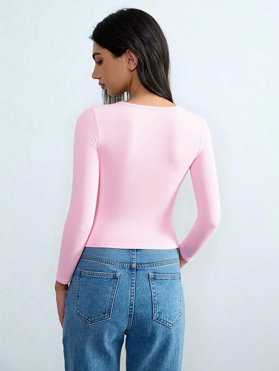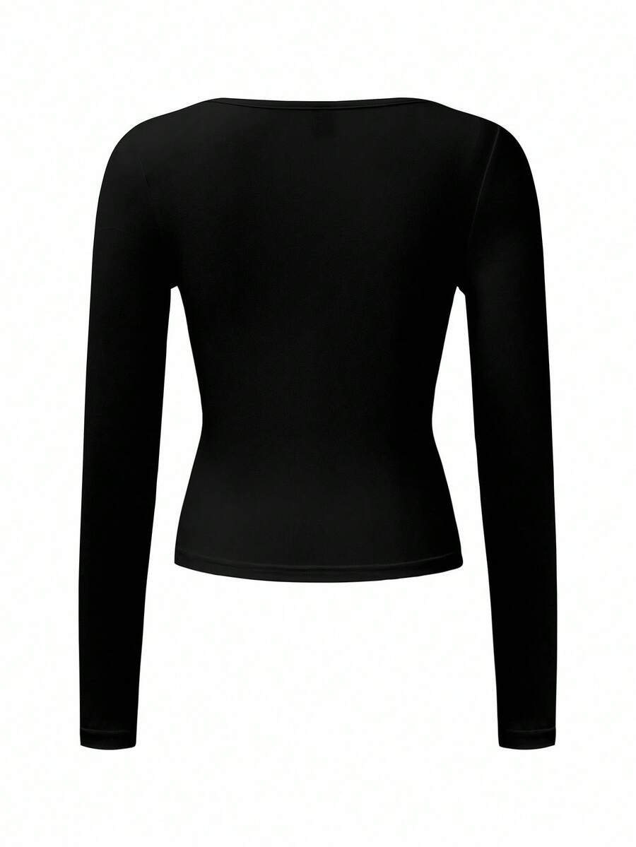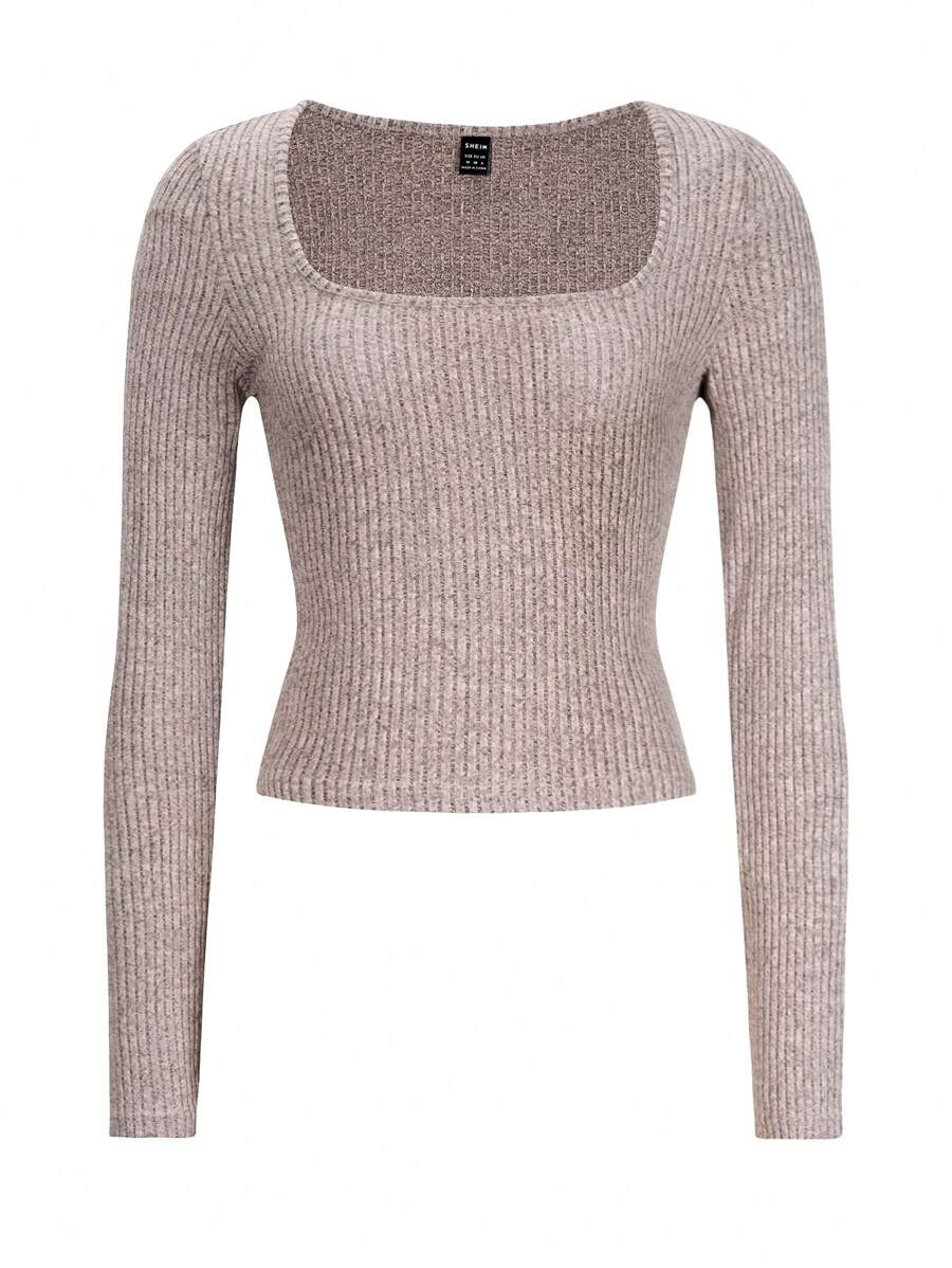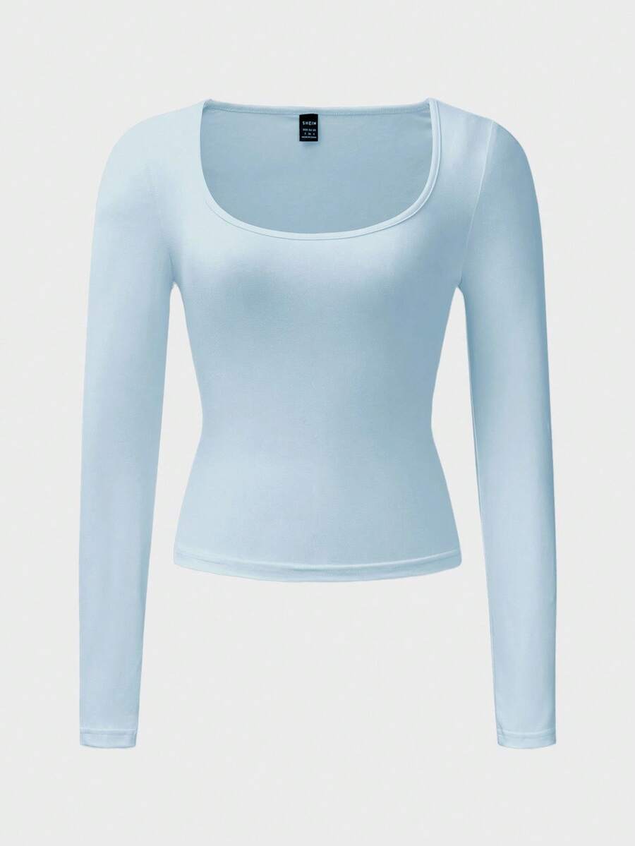Chiquease Autumn/Winter Casual Knit U-Neck Long Sleeve Slim Fit T-Shirt Fall Cloth For Women