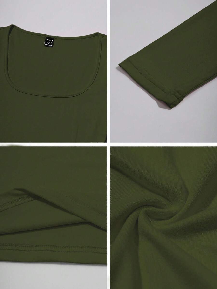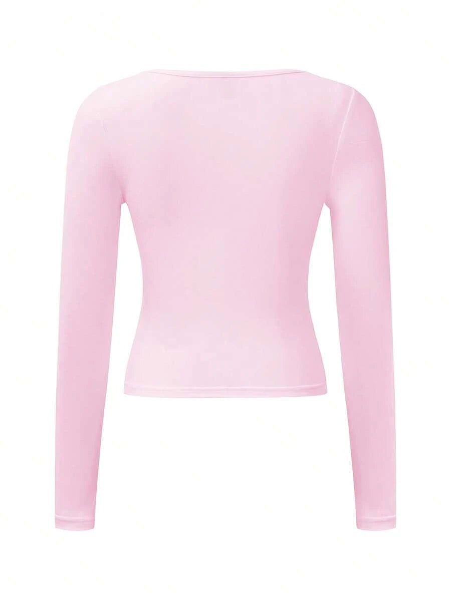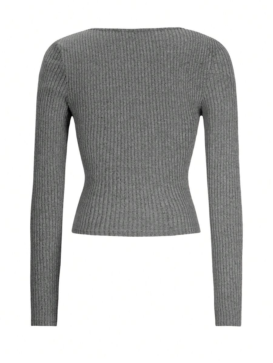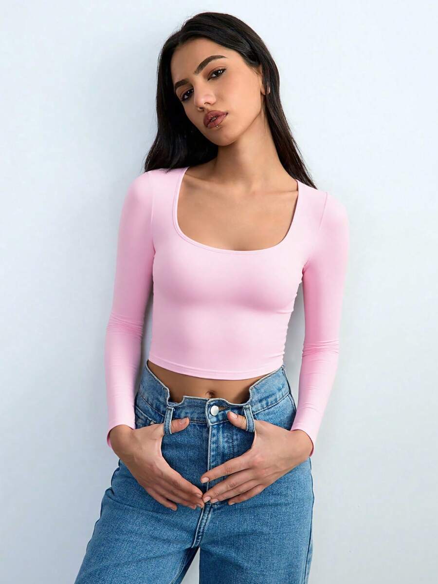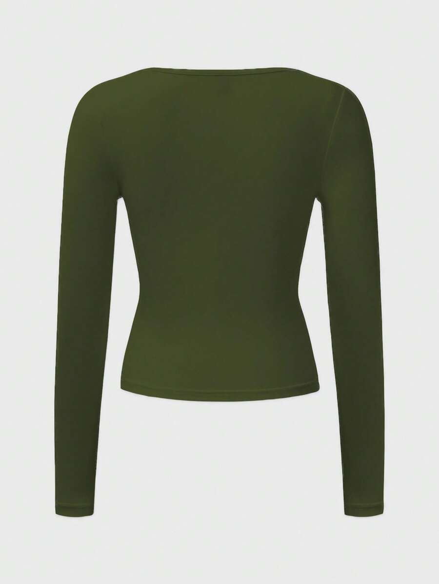 Chiquease Autumn/Winter Casual Knit U-Neck Long Sleeve Slim Fit T-Shirt Fall Cloth For Women