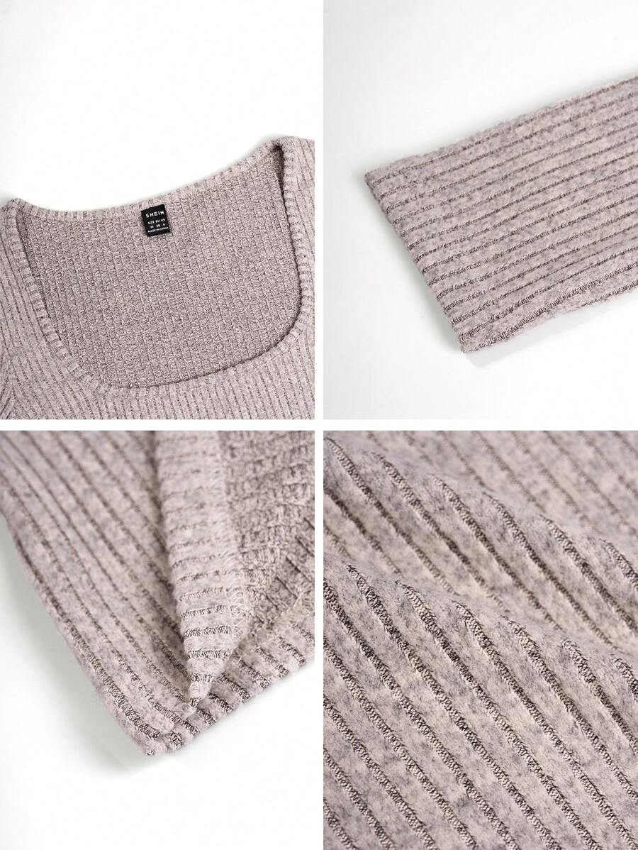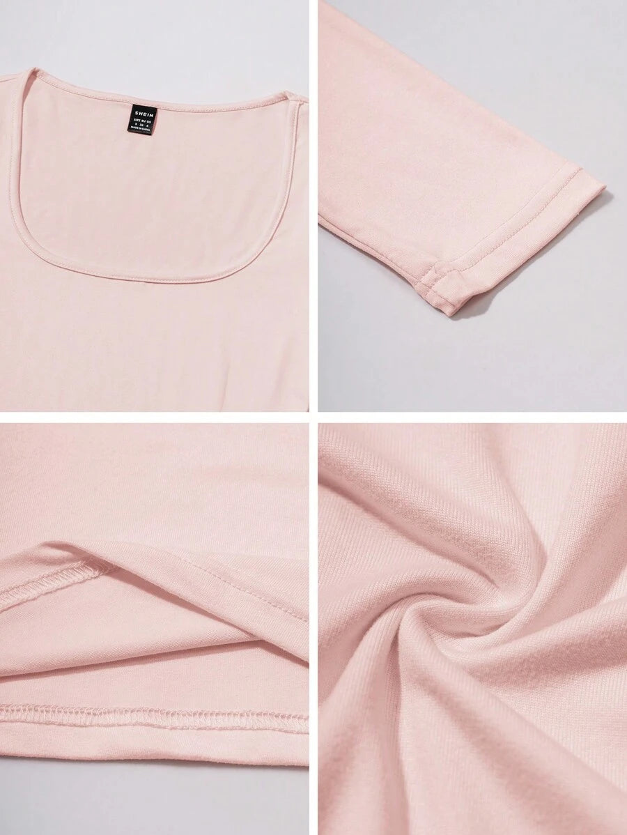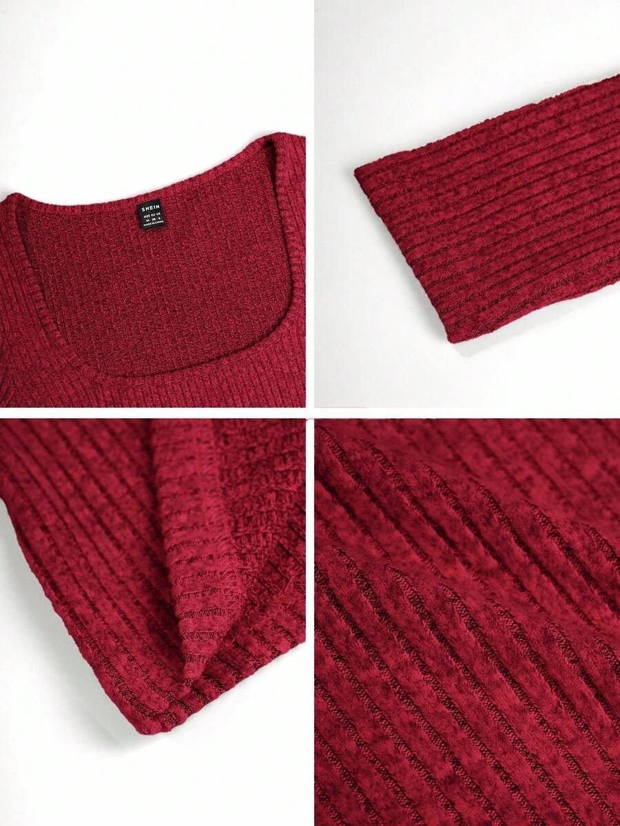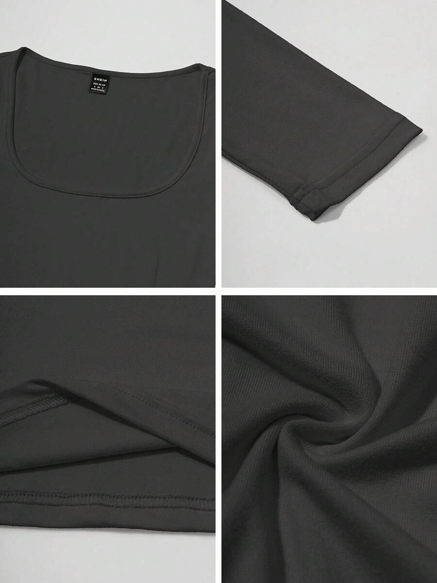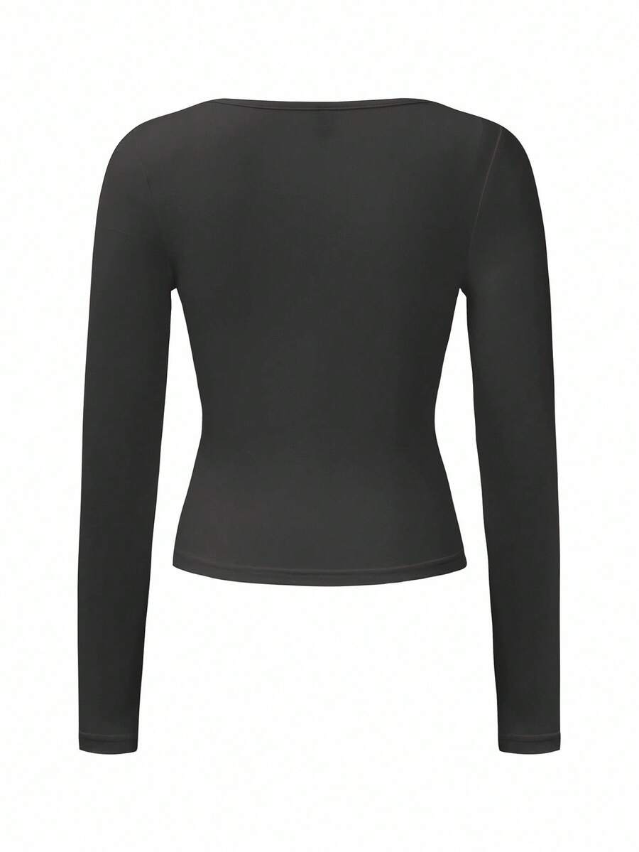 Chiquease Autumn/Winter Casual Knit U-Neck Long Sleeve Slim Fit T-Shirt Fall Cloth For Women